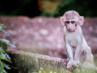 Tot seguit pugem al fort. Hi ha uns 15 minuts de forta pujada per un camí empedrat. Quan arribem a dalt sabem per què hi ha un home a baix que lloga pals per espantar als monos (l’Angel n’ha agafat un): n’hi ha a cabassos. Ens passem una bona estona mirant-los (i fent-lis fotos). La Lucía ha estat força malalta els últims dies (problemes estomacals, però tant bèsties que ha estat 3 dies sense menjar res), i entre la calor i l’esforç de la pujada, decideixen tirar cap avall. Nosaltres ens quedem una estona més i trobem una porta que abans havíem passat per alt, custiodada per dos homes, un dels quals ens comença a fer de guia improvitzat. Costa un ou entendre’l, però la visita ens agrada molt: hi ha un jardí molt ben cuidat, que dóna a un pati interior decorat amb frescos perfectament restaurats, que expliquen la vida dels maharajas i de diferents déus (ela indis tenen 300 milions de déus, i evidentment és un galimaties de noms)!