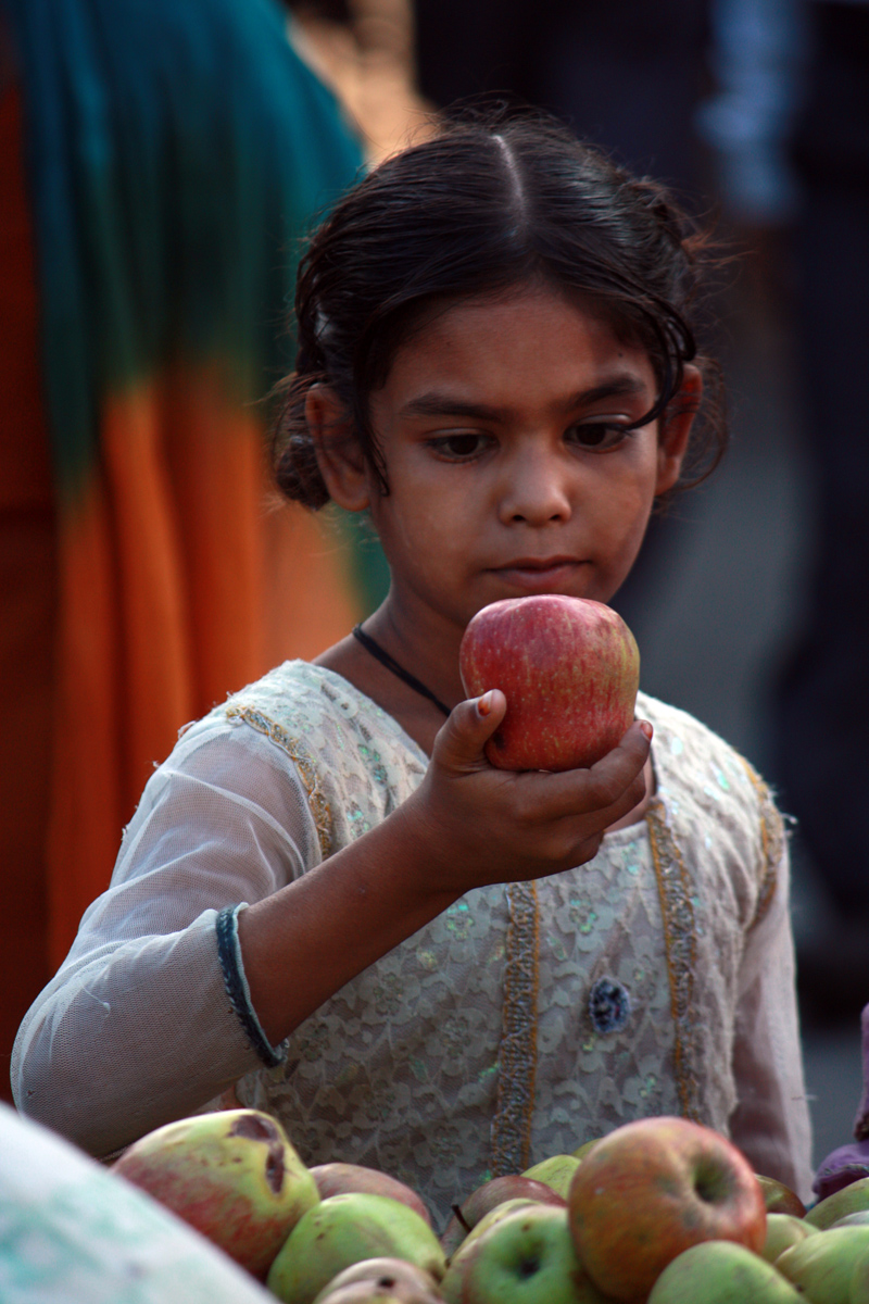 No és la Blancaneus, i esperem que la poma no estigui enverinada… Instants al mercat de Fatehpur Sikri