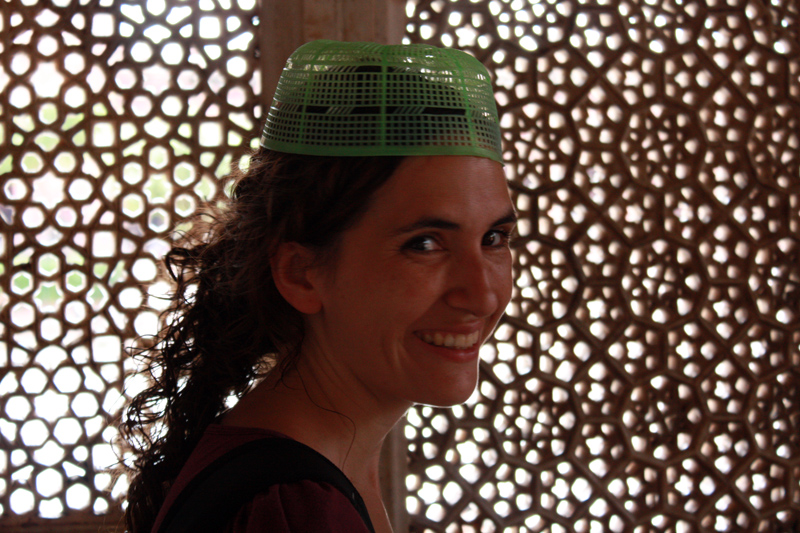 La Beth amb el curiós”gorro” que ens han fet ficar per entrar a la mesquita