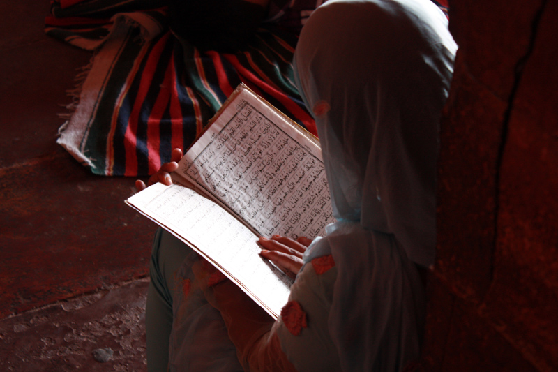 Una dona llegint el Corà