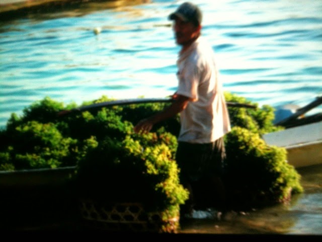 Segons la Lonely, aquí hi havia molt pocs turistes, i la gent viu bàsicament del cultiu d’algues marines, que s’exporten a la Xina o el Japó. El que hem vist és que això ha canviat, hi ha bastants turistes (sense ser agobiant, però en veus constantment), i està tot ple de warungs, botigues, guesthouses, etc., així que està clar que ara el turisme és la principal font d’ingressos dels 5000 habitants de l’illa. Malgrat tot, hi ha molta gent que segueix amb les seves activitats tradicionals, i hem vist gent recollint algues del mar, carregant-les en cistells, etc.