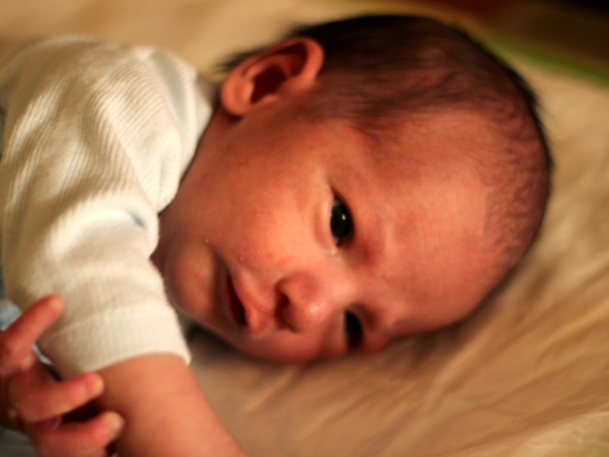 I ja comença a aguantar el cap! Si la mama es belluga i li parla des de l’esquerra ell gira el cap per mirar-la i si es belluga cap a la dreta i li parla des de la dreta, gira el cap immediatament per tornar-la a mirar 🙂