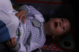 Quan s’ha cansat de menjar, la Beth l’ha posat al bressol… amb els ulls oberts com a taronges. Teníem el llum apagat, i ell s’anava mirant les manetes i anava xerrant, com si digués “hola, casa”, ” hola, bressol, he tornat”, “ala, quin mòbil més xulo tinc a sobre del llit, no m’enrecordava”, … 😀