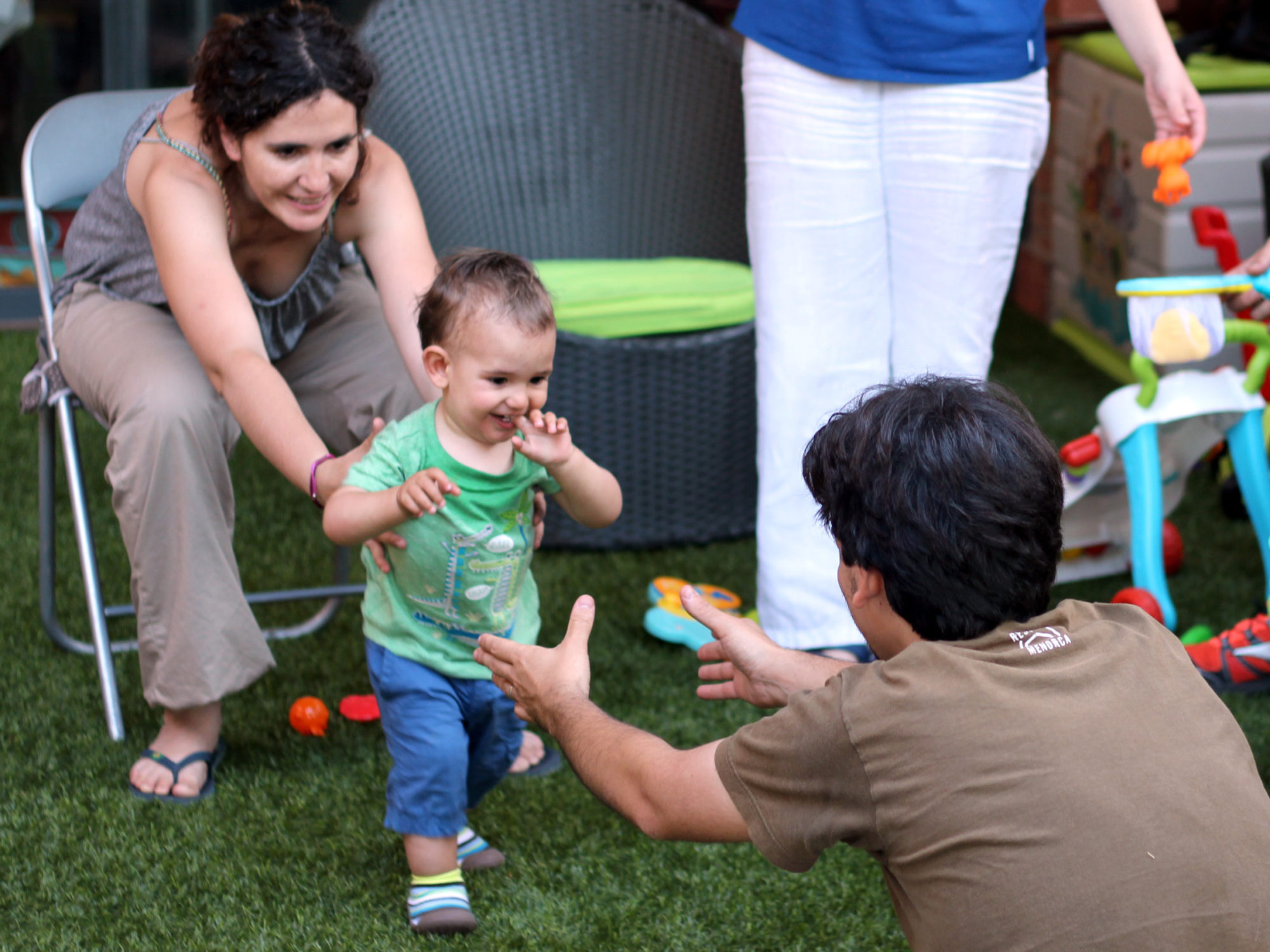 Estàvem a la gespa i dels braços del papa el vaig cridar i per sorpresa nostra va començar a venir cap a mi, fent 8 o 9 passes i al arribar a mi ràpidament el va cridar son pare i cap allà q va anar emocionat. Alucinant el vaig cridar jo i així ja no va parar, d’un a l’altre al final ja casi fent la volta sense aturar-se!! Va començar a caminar i en comptes de 4 passes en va fer 300! Va estar més de 10 minuts seguits caminant, eufòric de la seva alegria, de la nostra i dels amics q l’aplaudien! 🙂