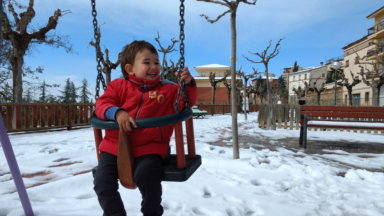 De fet a l’arribar a Isona estava ple de ninots de neu i cada cop que en veiem un el Gerard deia “piu, piu”. Penso que entre la forma i que tenien una pastanaga per nas que podia semblar un bec, ell ho tenia molt clar ⛄? Realment els nens t’ho fan mirar tot amb uns altres ulls ? era el seu primer contacte amb la neu i estava encantat. Va baixar tot content del cotxe a trepitjar la neu. Tot era molt bonic fins que hi va caure amb les mans al damunt i va cridar, sense deixar de mirar-se les mans: