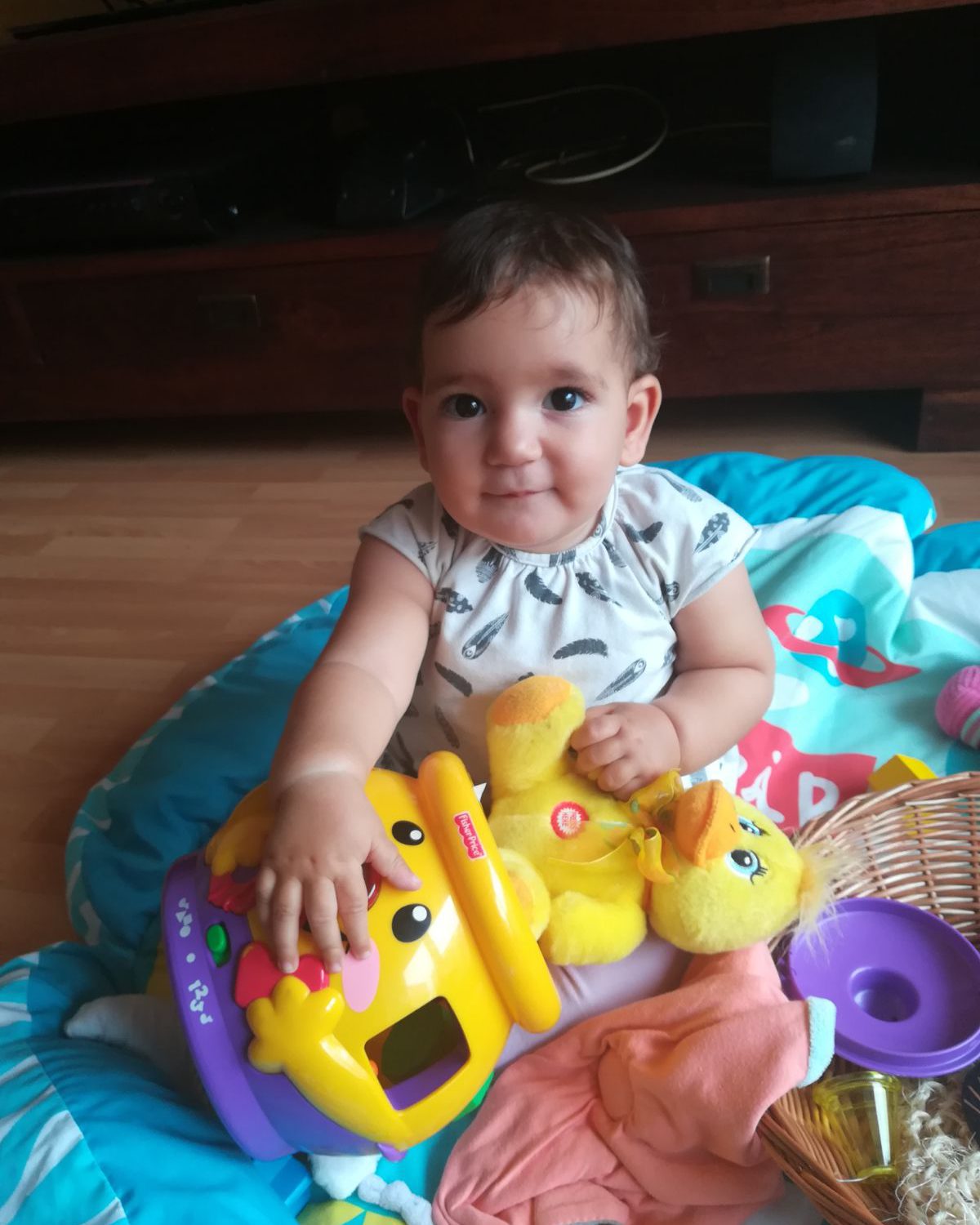 Li encanta veure el soroll que fan les coses quan cauen a terra i que li agafis i li tornis a donar, però ara una ja té més experiència i les joguines del cotxet les porta lligades així, com a mínim aquestes estan controlades ?