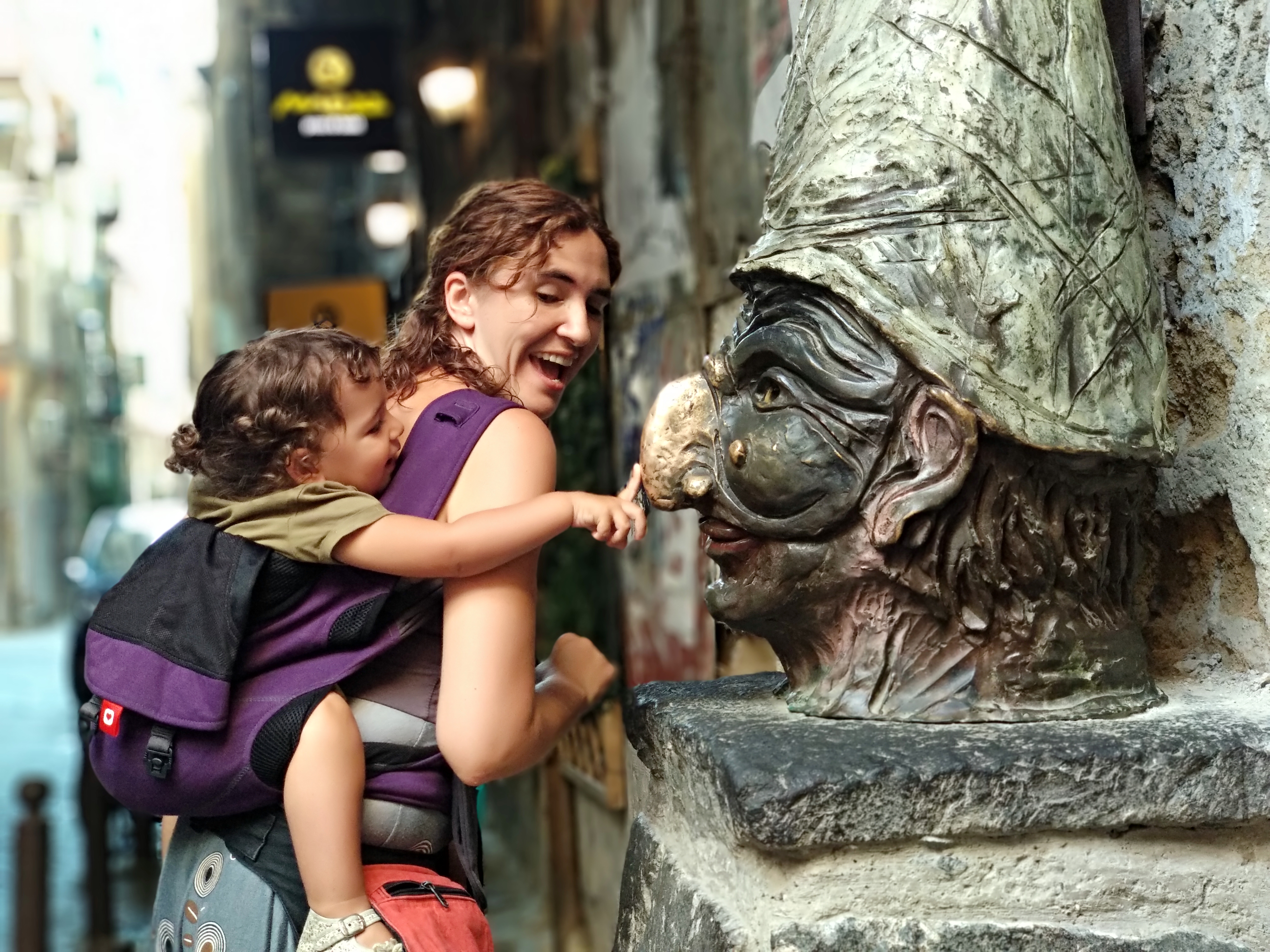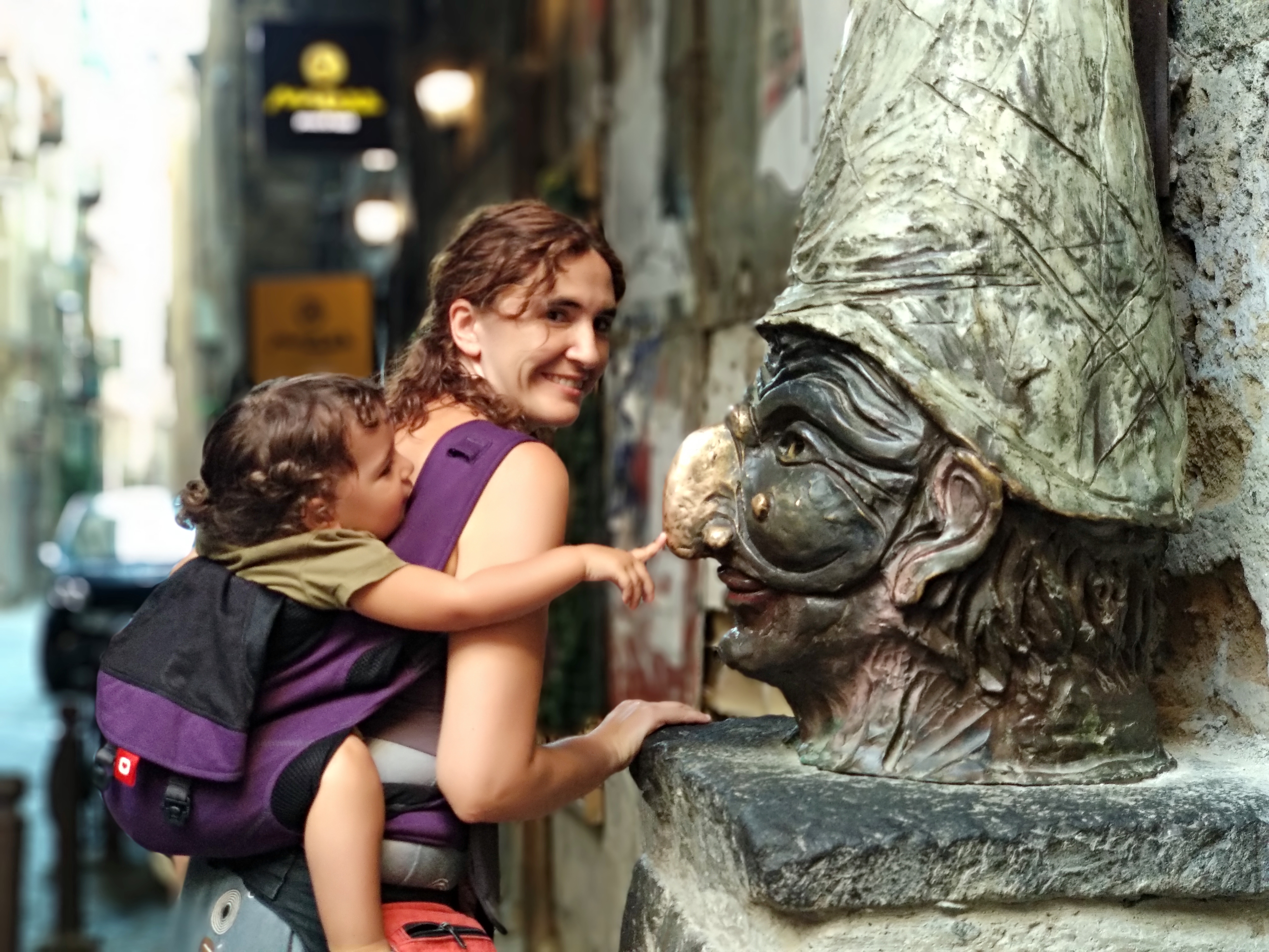 En canvi, el Nàpols “de dalt” és una ciutat que s’agrada mirar-se al melic, amb senyors amb camisa i dones vestides amb roba de marca, amb Carrefours amb una zona per aparcar el gos (amb un parell de pots per posar-hi pinso i aigua i “que no le falte de ná”), on el mateix súper tenia grans seccions de menjar bio, sushi i pasta premium, on els carrers amb molta pujada tenen escales mecàniques,… Ben bé és com si enlloc del funicular haguéssim agafat una màquina de transport instantani i haguéssim viatjat des de Ho Chi Min City a Brusel.les en qüestió de 10 minuts. Potser és una mica exagerada la comparació, però de veritat que hem estat molta estona comentant-ho. Probablement en èpoques passades (anys 70 o 80) a Barcelona passava exactament el mateix (si passejaves pel barri gòtic o el Raval i pujaves després a Sant Gervasi devies tenir la mateixa sensació), però avui dia se’ns fa estrany i ens ha sorprès molt.