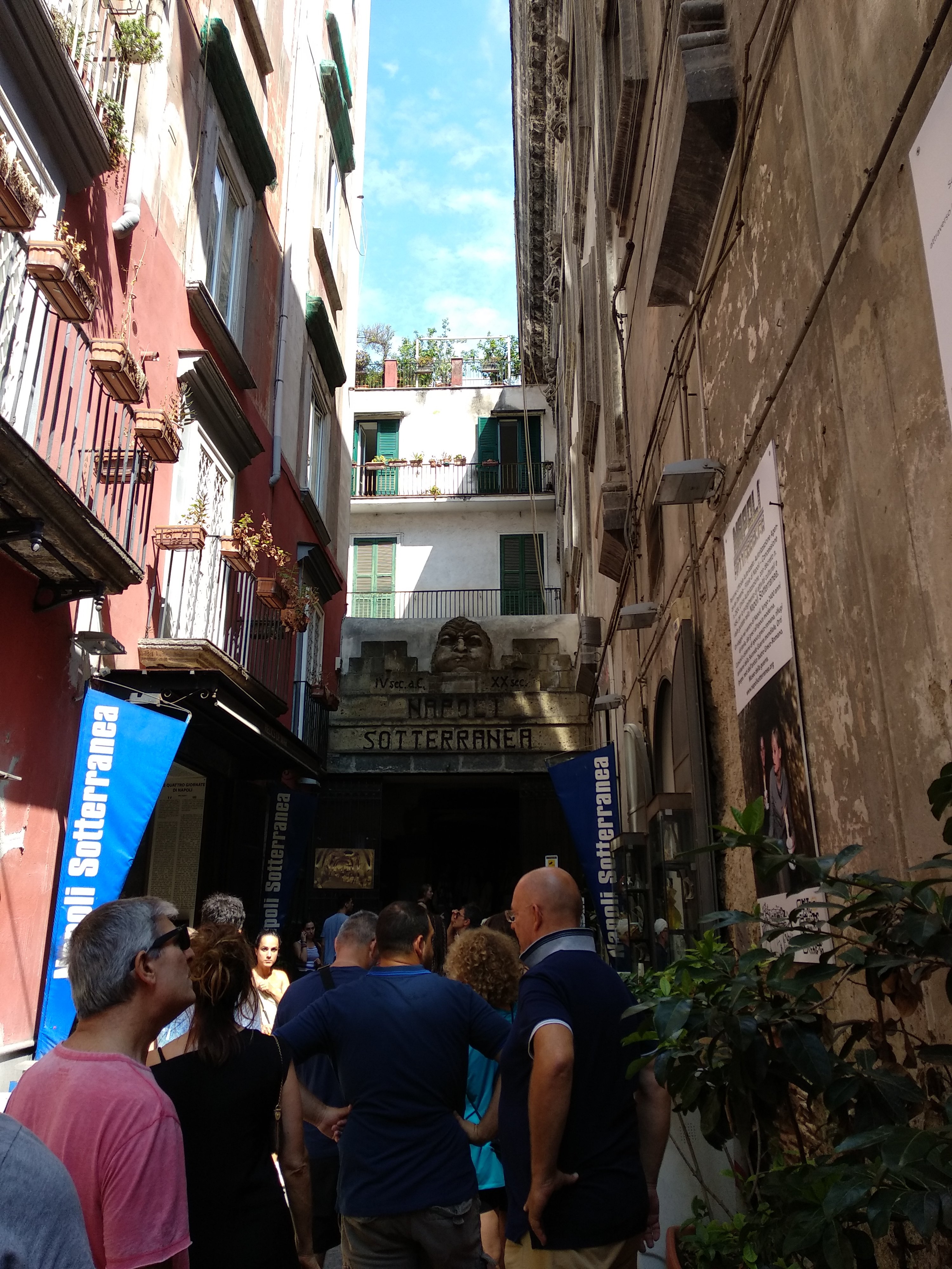 En molts aspectes ens ha recordat les visites que fan a Berlin Unterwelten, però aquí ha estat encara millor. Una vegada acabada la visita subterrània hem visitat el teatre romà, que està literalment engullit per un munt d’edificis (els napolitans van construir les seves cases a sobre de les construccions romanes). La història de la vella que va ensenyar als arqueòlegs les parets de la seva bodegueta (a la qual s’accedeix apartant un llit amb rodes que s’amaga dins d’una paret), i que va resultar ser l’entrada gairebé intacta al teatre que havia estat perdut durant segles, no té desperdici.