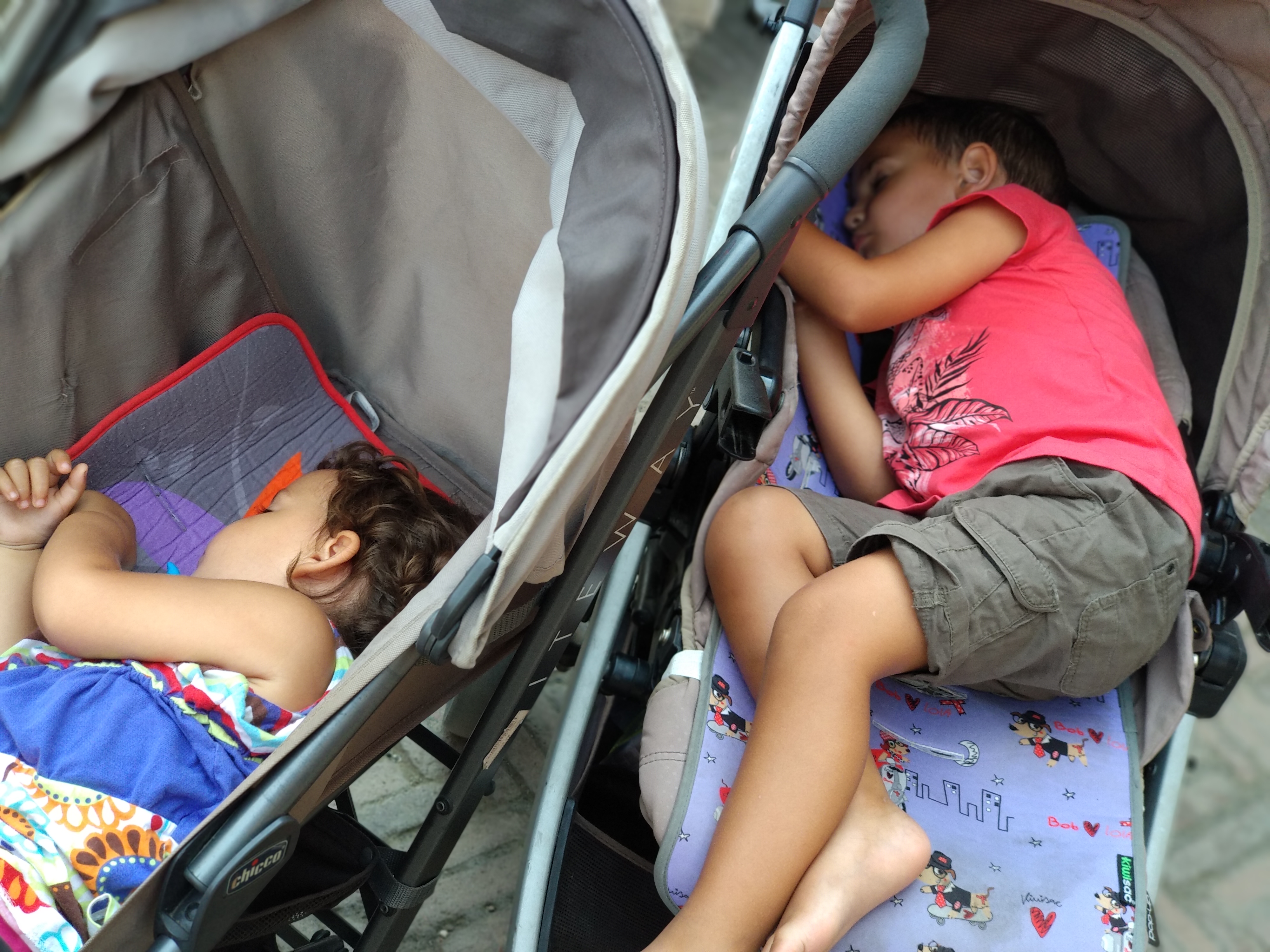 Després, amb els dos petits ja carregant les bateries als cotxets…