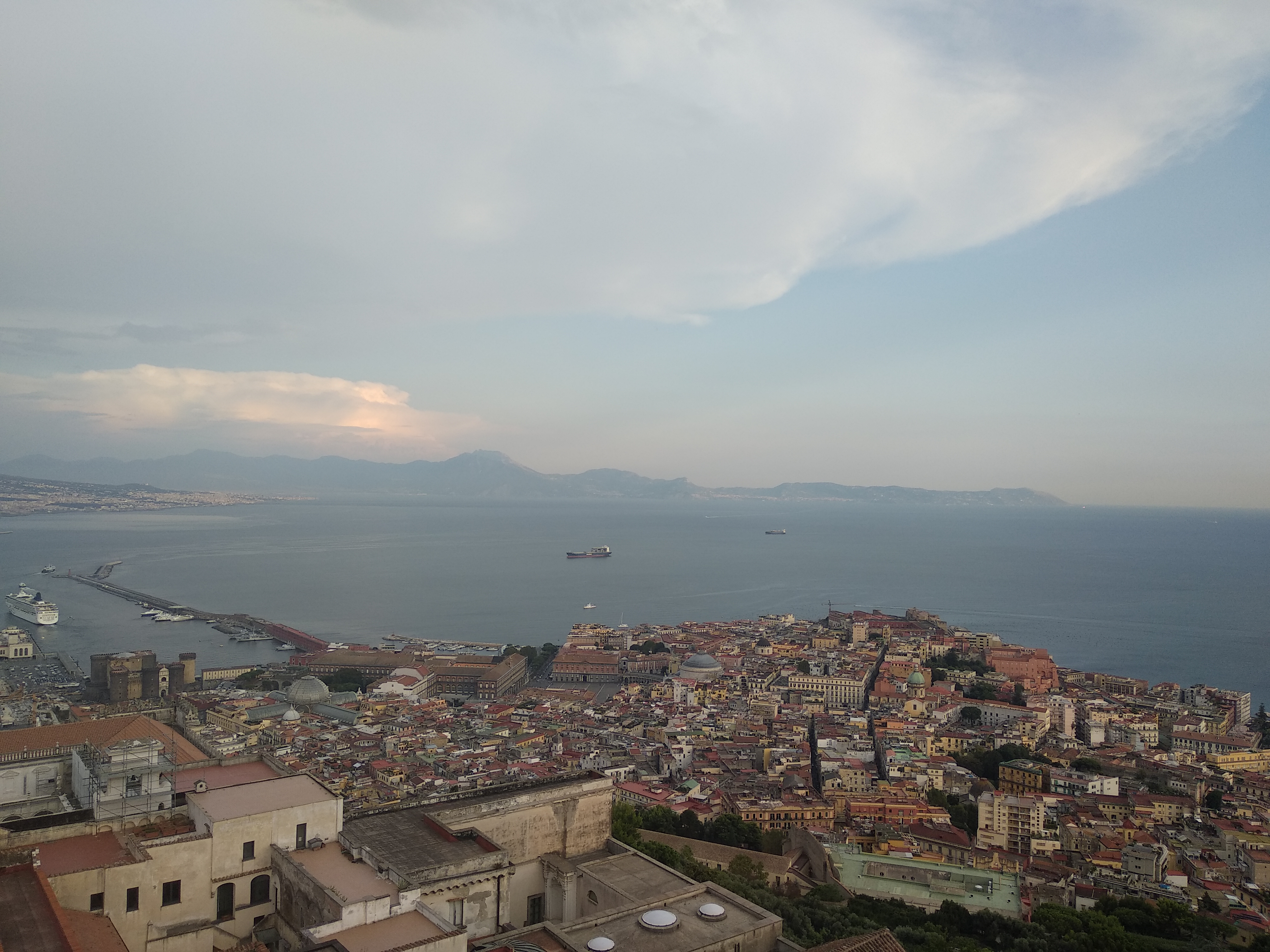 La Beth havia anat remug… fent comentaris constructius durant tot el camí perquè preveia que un castell que data de l’època dels romans probablement no tindria ascensors i hauríem fet tot el camí per no res. Doncs “toooma Moreno” resulta que aquests romans sí que eren llestos i hi havia ascensor per pujar! La gràcia d’aquest castell és que des de dalt tens unes vistes 360 graus de Nàpols, el Vesubi, Capri, la badia de Sorrento… És espectacular, una passada. Fins i tot veus els avions que passen pel costat, atenció, més avall que tu! L’aeroport de Nàpols està enganxat a la ciutat, i la ruta d’aterratge passa a prop del turó sobre el que s’alça el castell, així que tens una visió també d’allò més curiós.