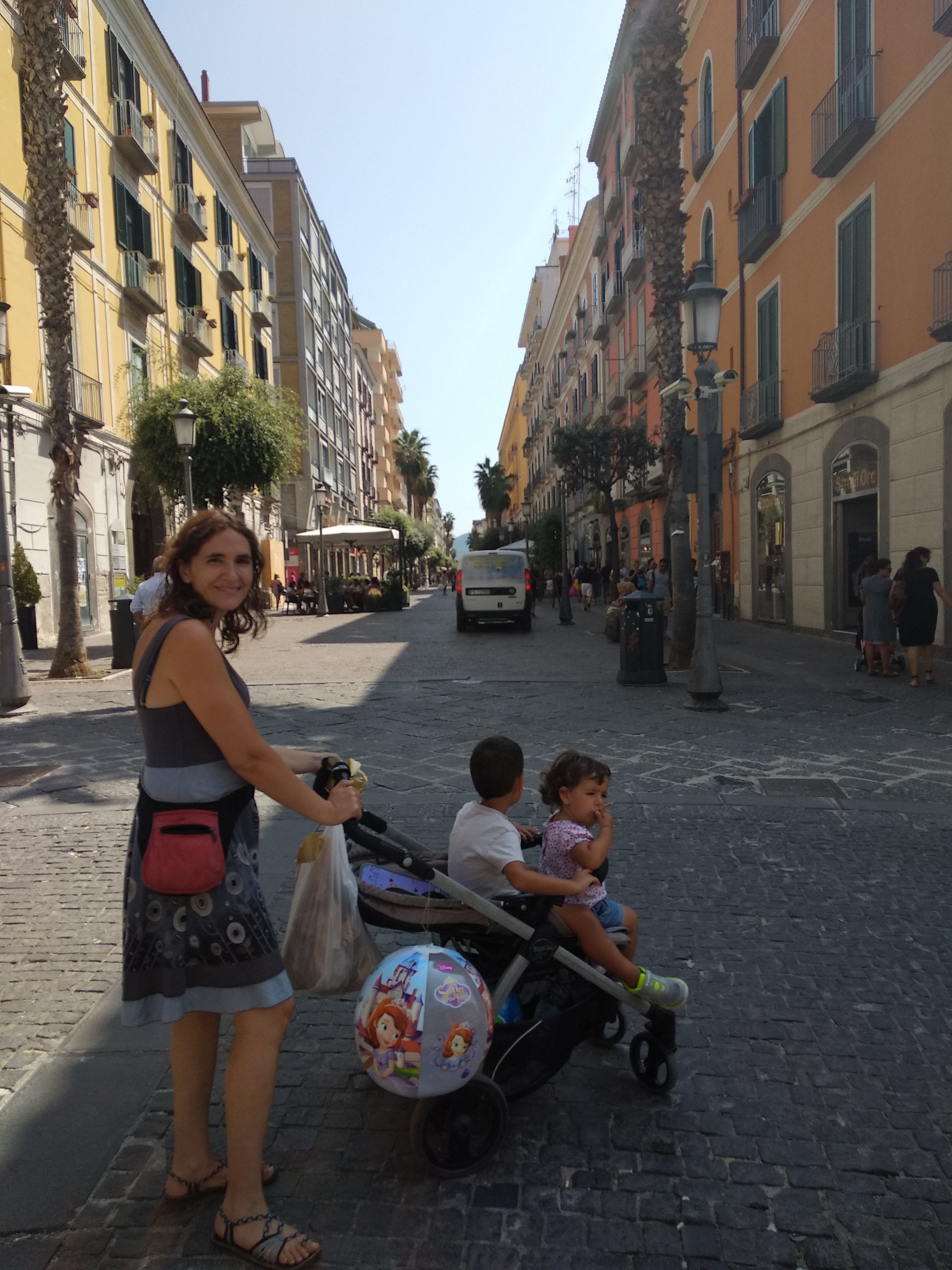 Demà farem una tornada per terra, mar i aire (literalment!). Agafarem ferry fins a Salerno, tren fins a Nàpols, bus fins a l’aeroport, avió fins a Barcelona i cotxe fins a Pallejà! Només ens faltaria fer una volta en bici per la tarda i ja haurem provat tots els mitjans de transport possibles! (Hi haurà qui dirà que faltaria algun vehicle de tracció animal, però tenint en compte que els nens van en cotxet -espitjat per dos bèsties com nosaltres- crec que podem acceptar pop com a animal de companyia).