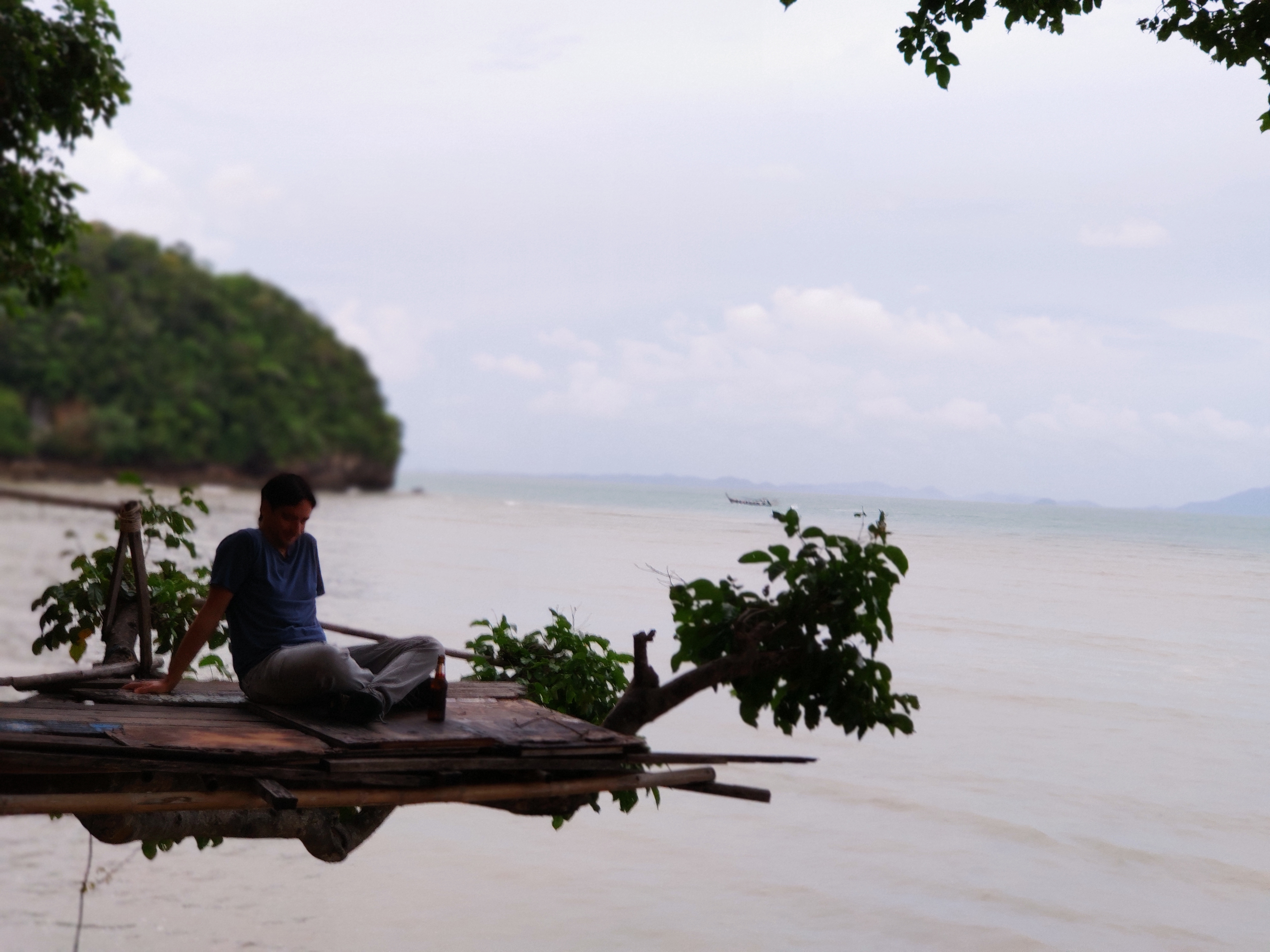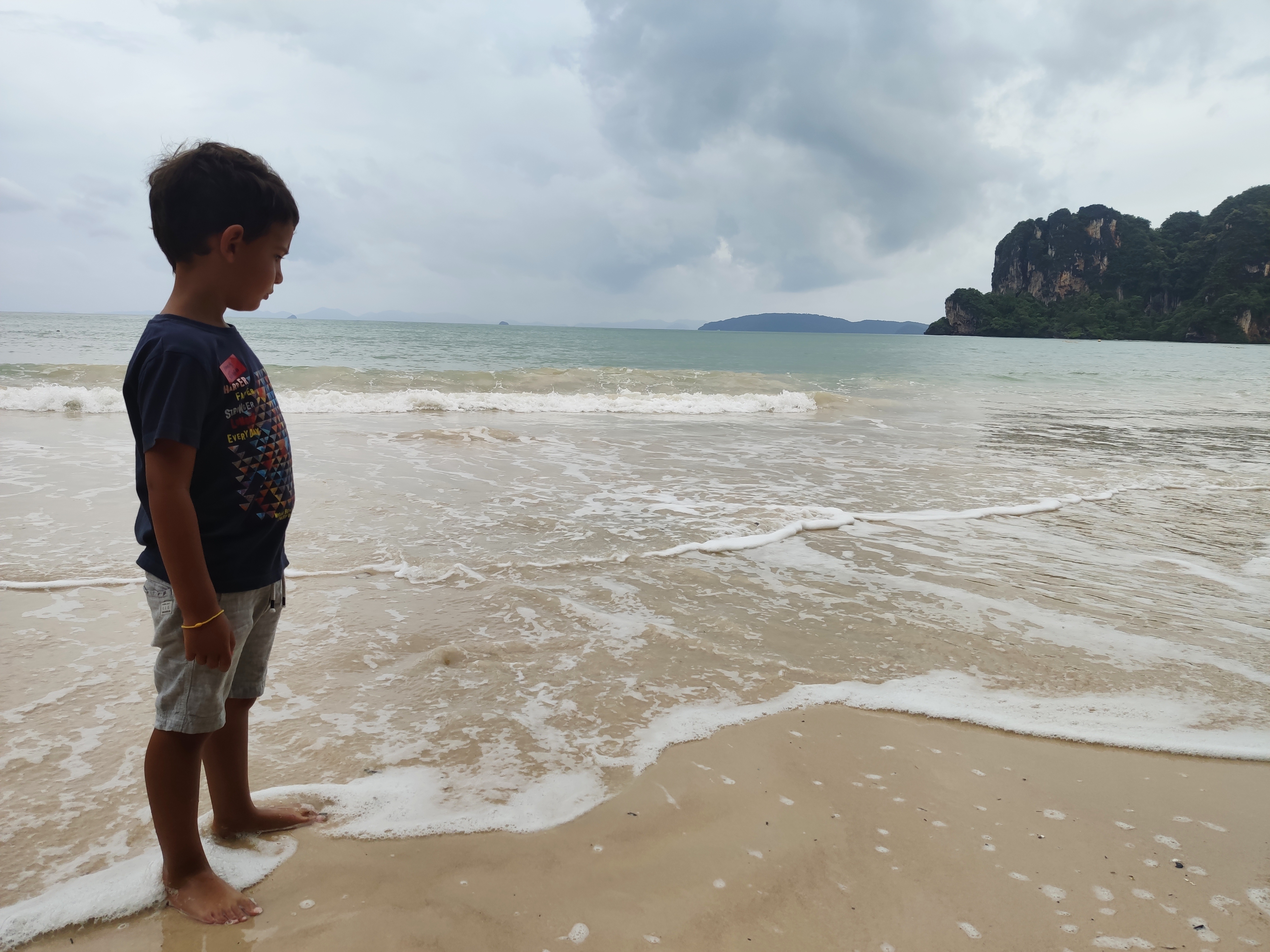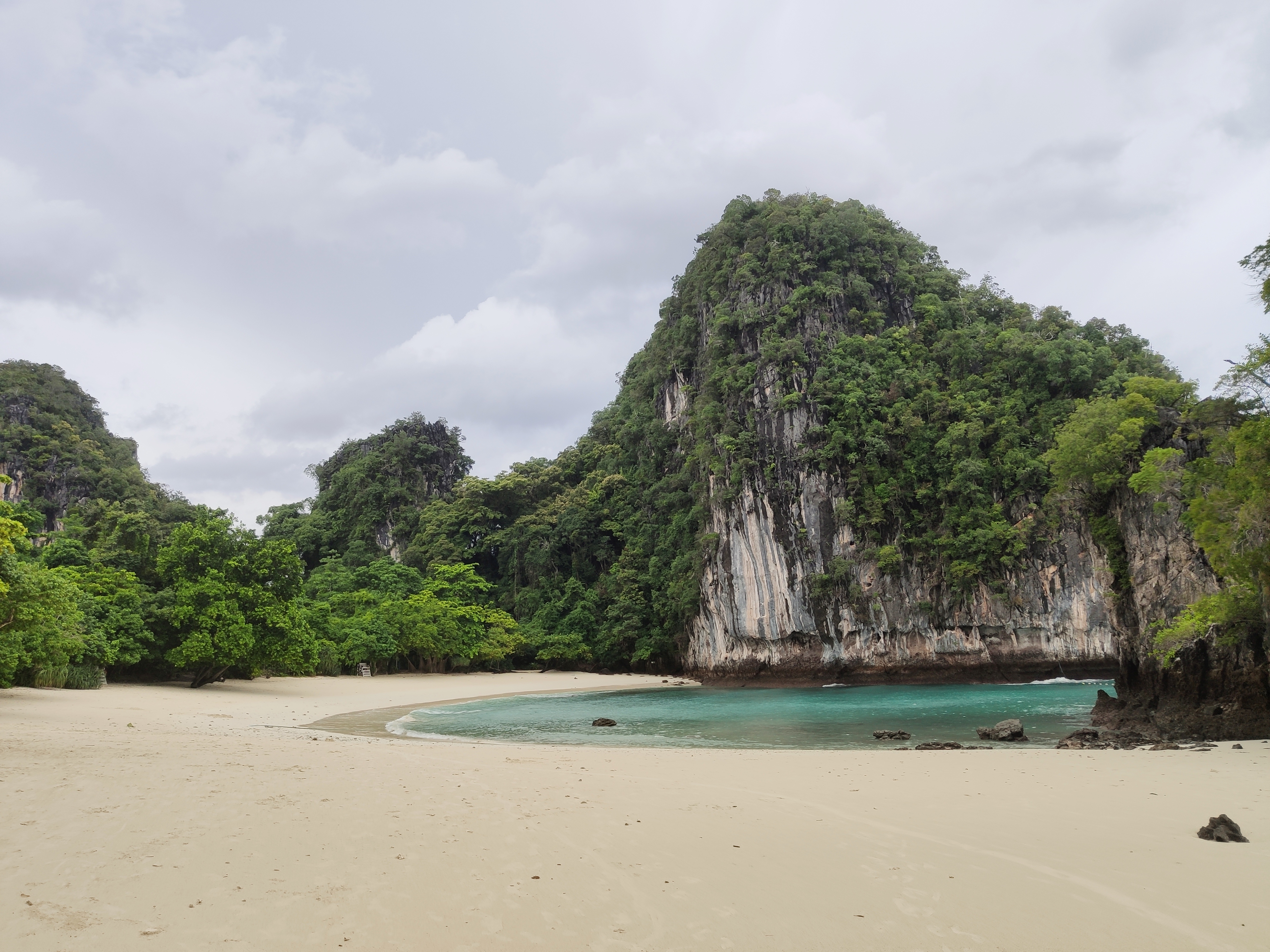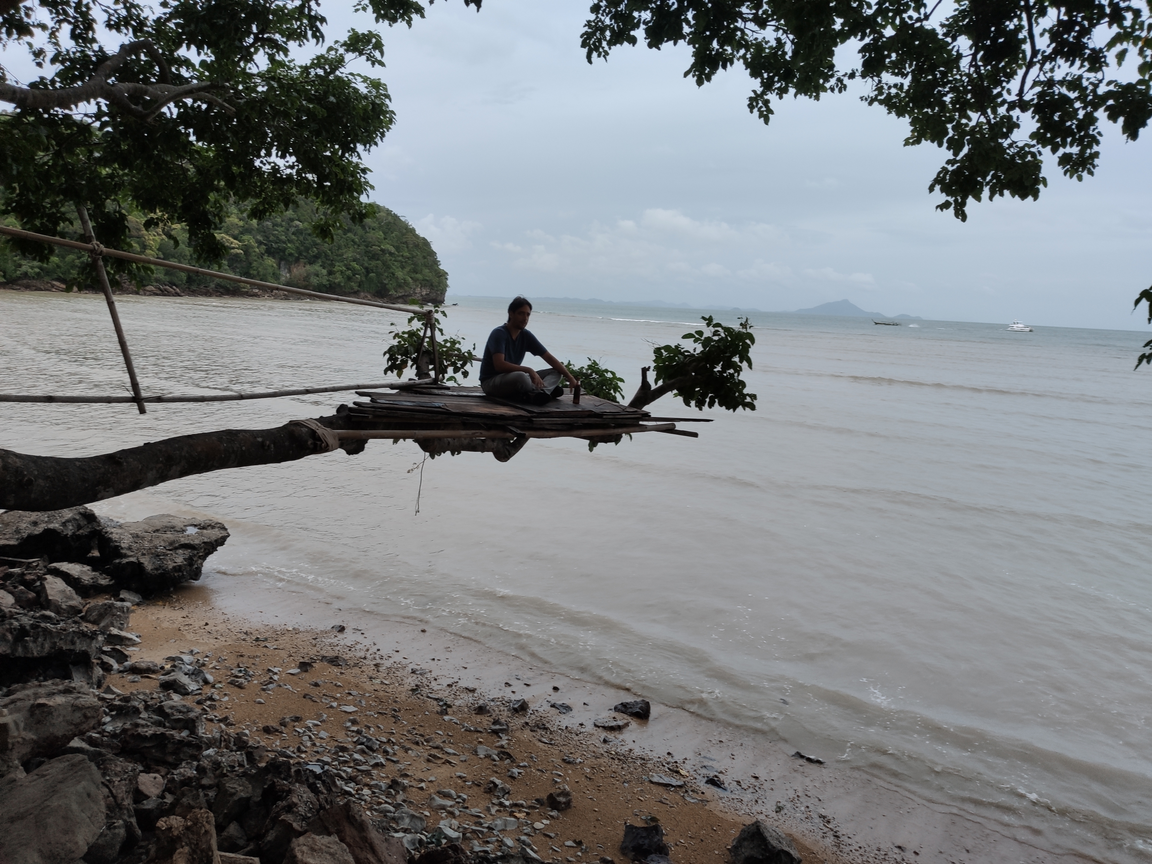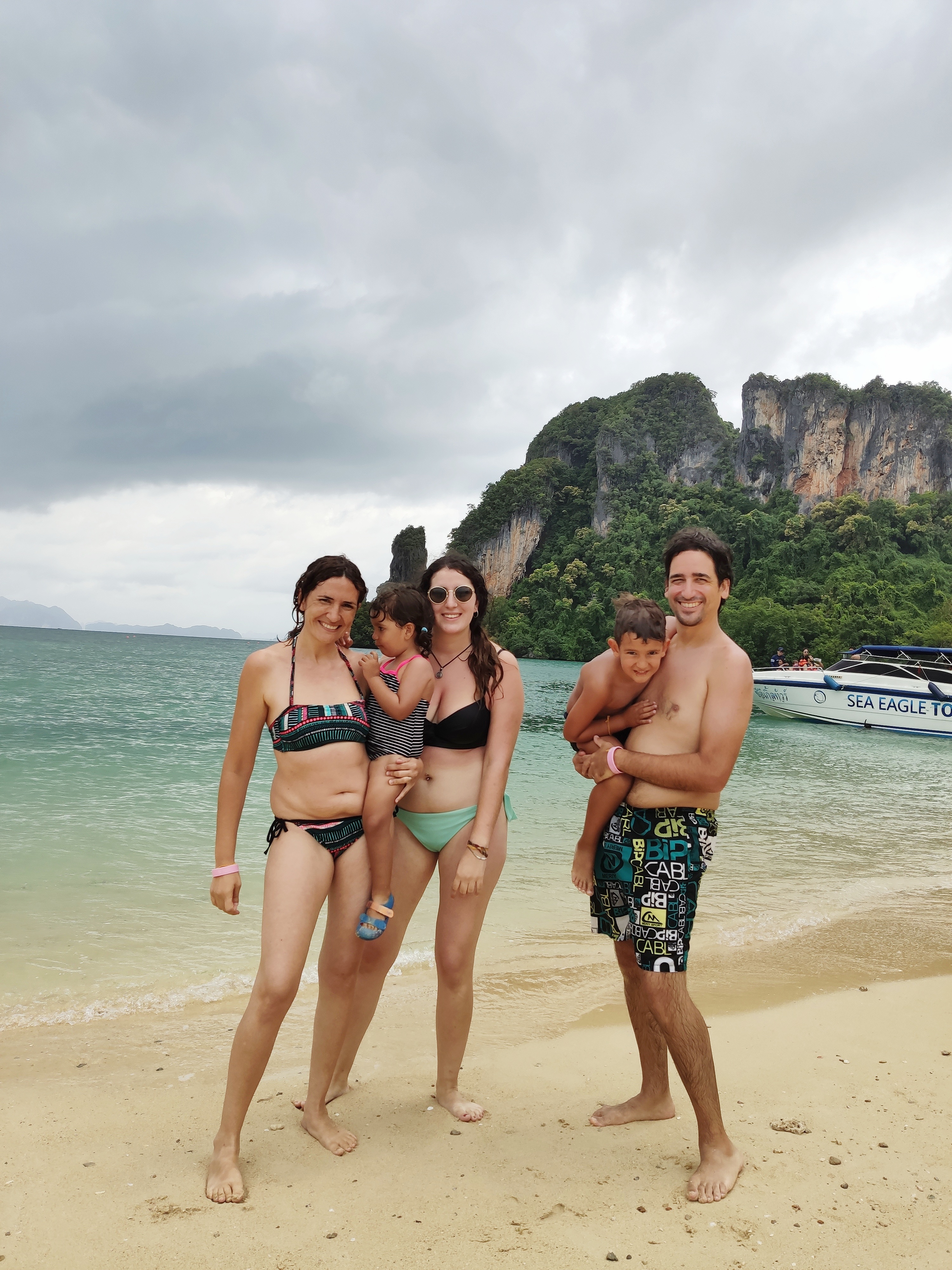 Hem esmorzat i hem tirat cap a Railay West, l’altra platja de Railay, des d’on sortia el vaixell. Sorprenentment (per ser nosaltres) hi hem arribat amb 20 minuts d’antelació. Allà ens hem enterat que a la gent que havia contractat l’excursió a les 5 illes (al sud) els l’havien cancel·lada. Hem deduït (també gràcies a les imatges dels satèl·lits meteorològics) que la tempesta anava cap al sud i per tant, a nosaltres, que anàvem cap al nord, ens respectaria el temps. O no.