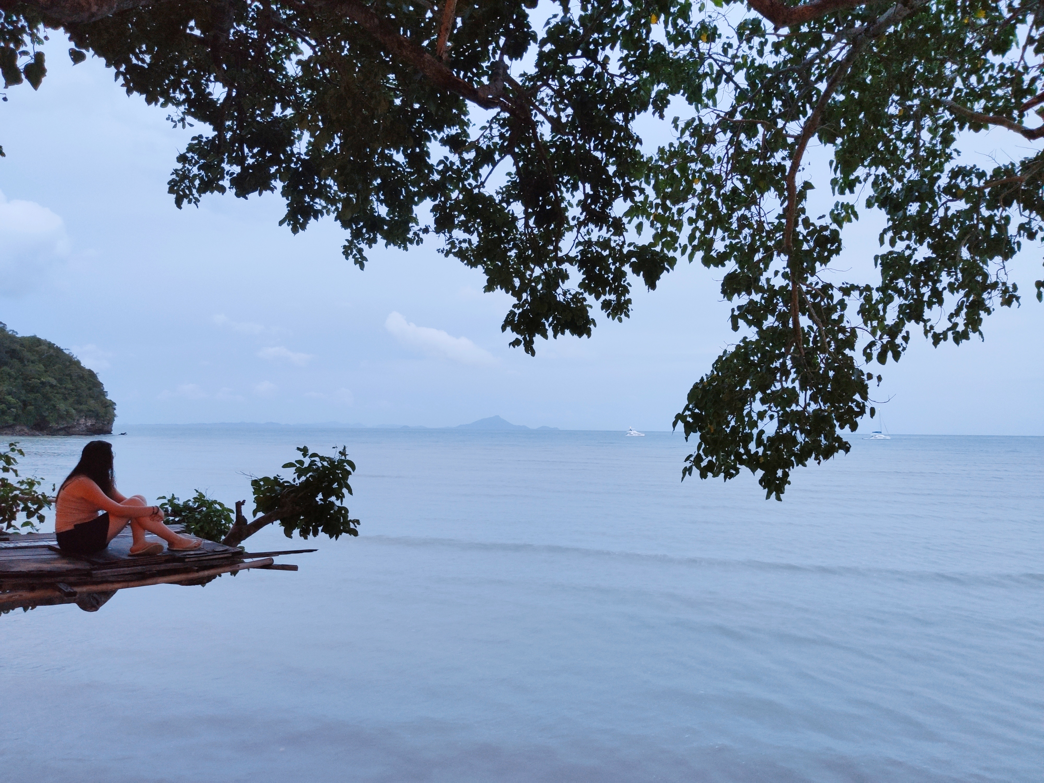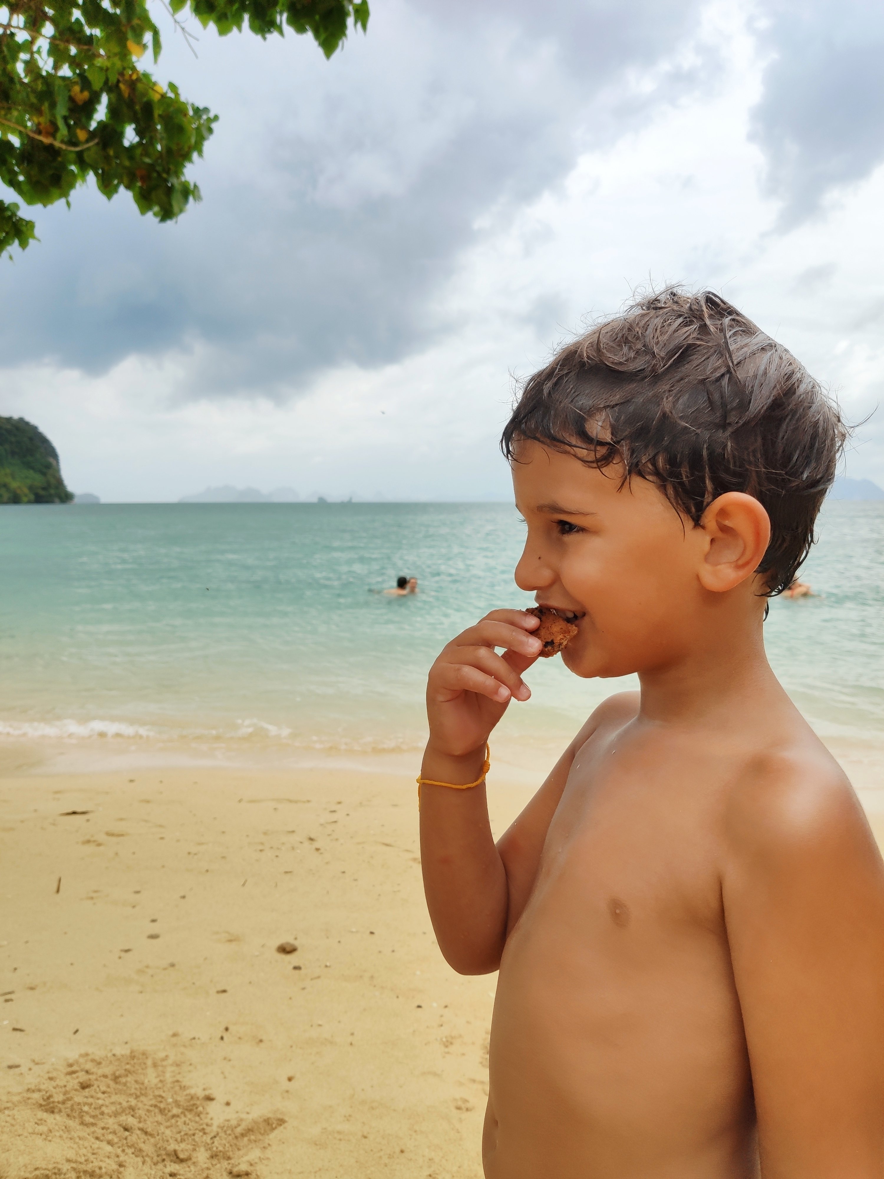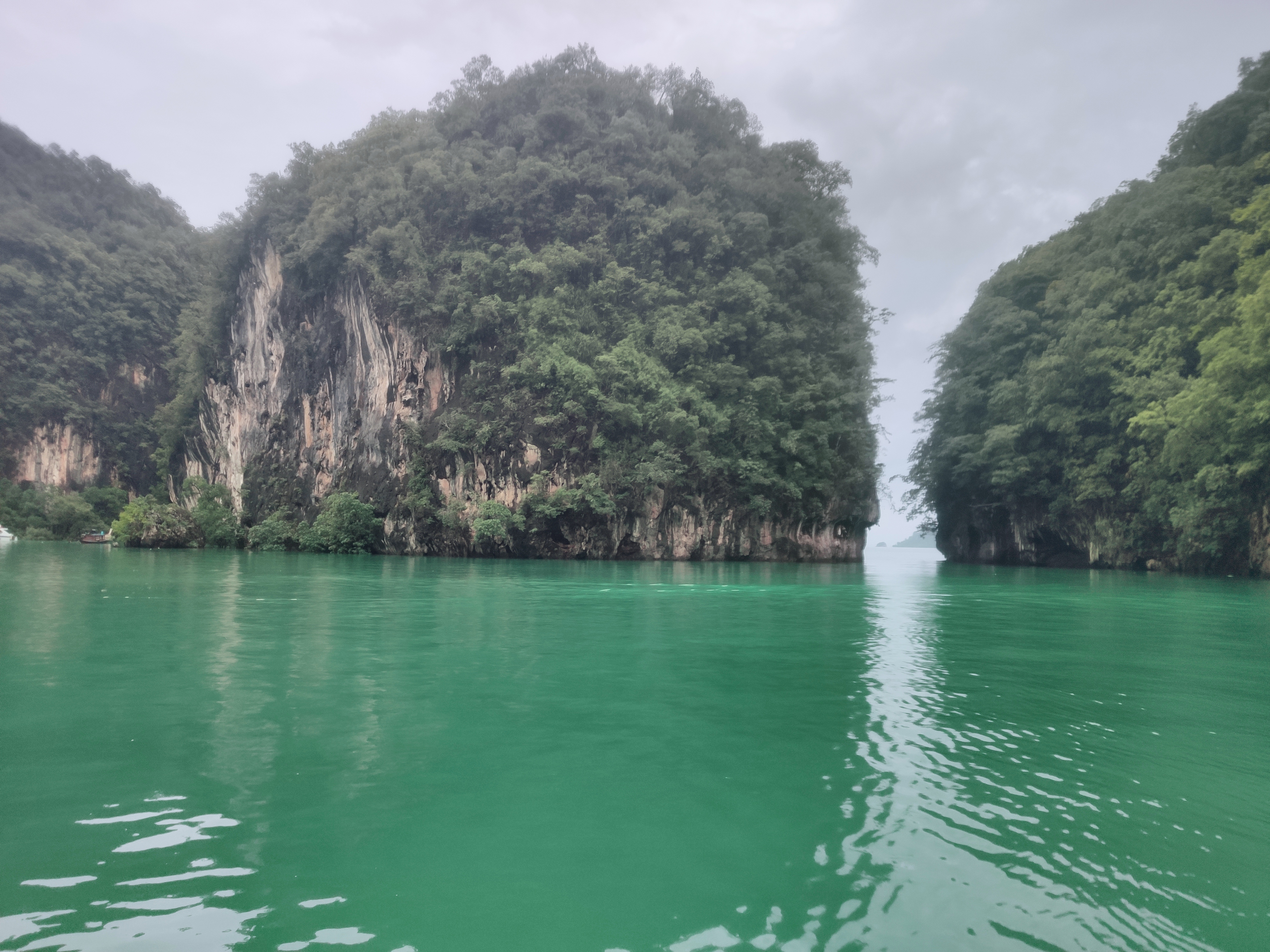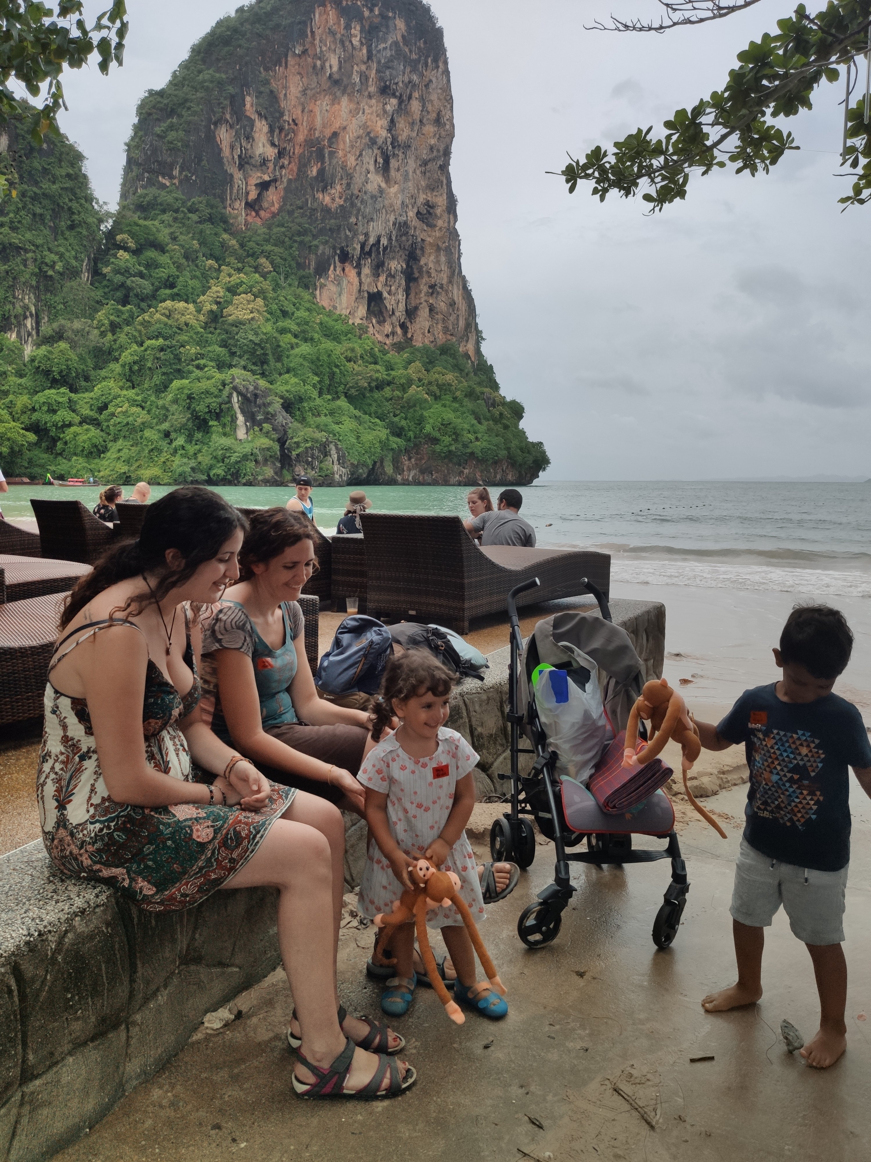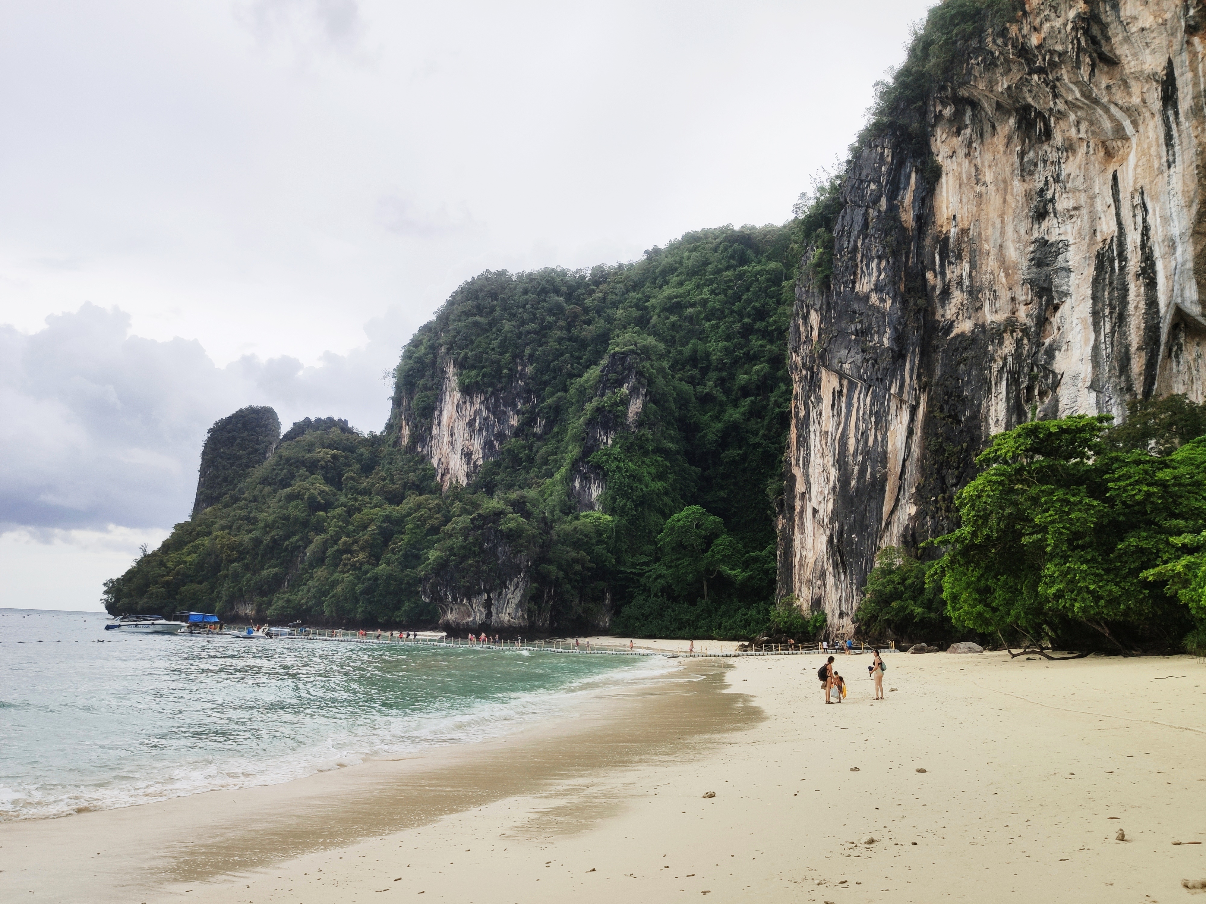 Hem esmorzat i hem tirat cap a Railay West, l’altra platja de Railay, des d’on sortia el vaixell. Sorprenentment (per ser nosaltres) hi hem arribat amb 20 minuts d’antelació. Allà ens hem enterat que a la gent que havia contractat l’excursió a les 5 illes (al sud) els l’havien cancel·lada. Hem deduït (també gràcies a les imatges dels satèl·lits meteorològics) que la tempesta anava cap al sud i per tant, a nosaltres, que anàvem cap al nord, ens respectaria el temps. O no.