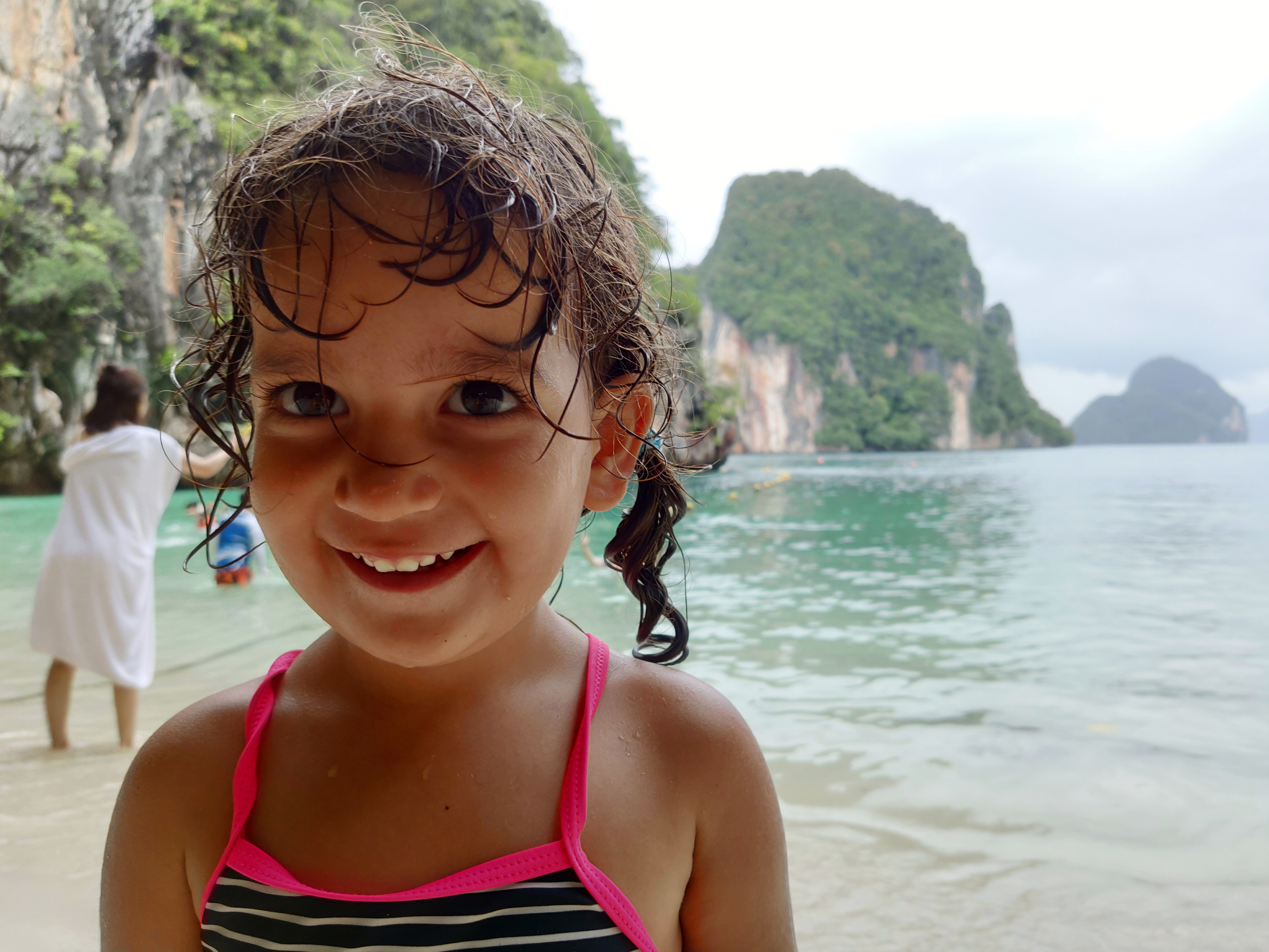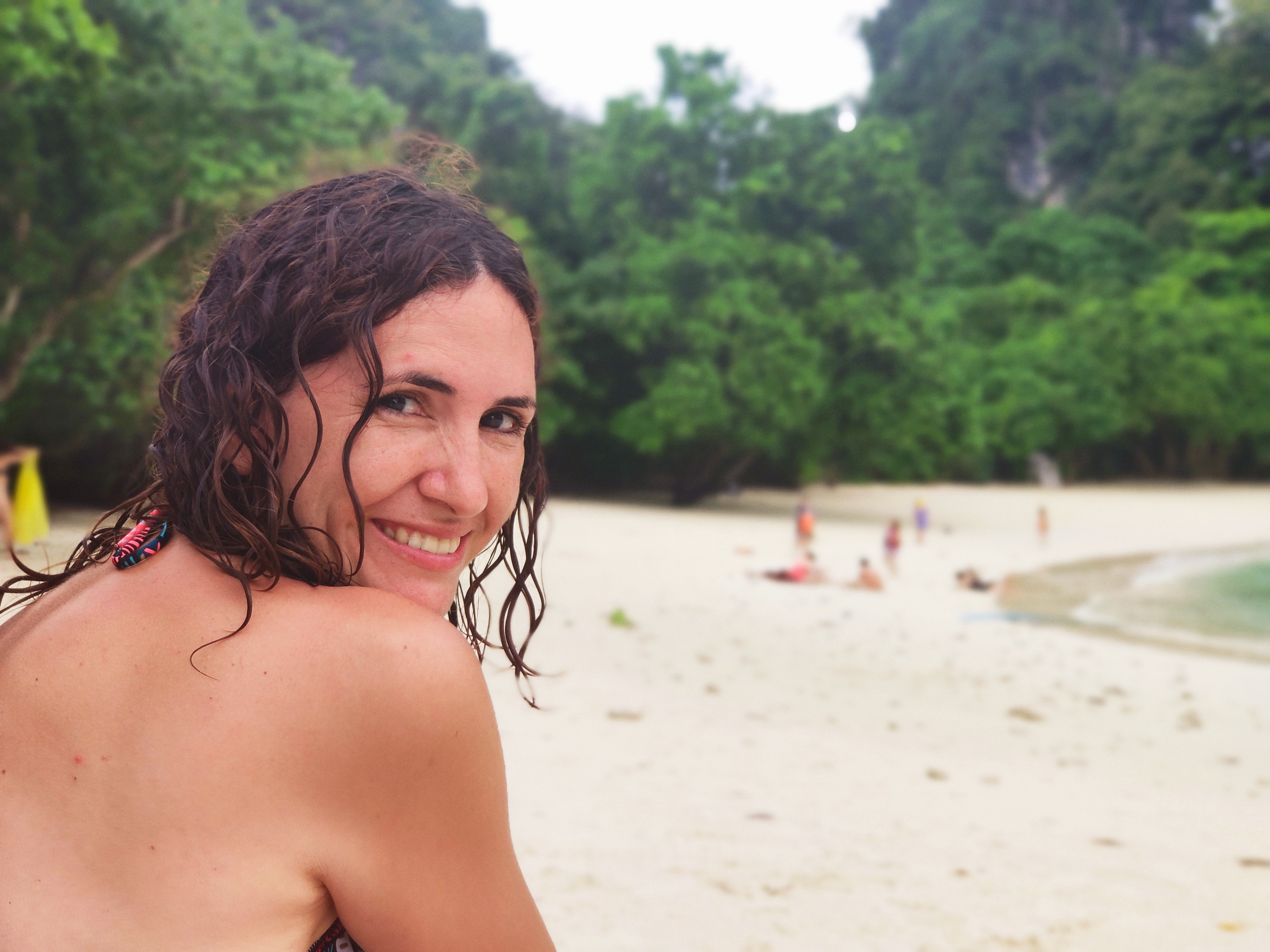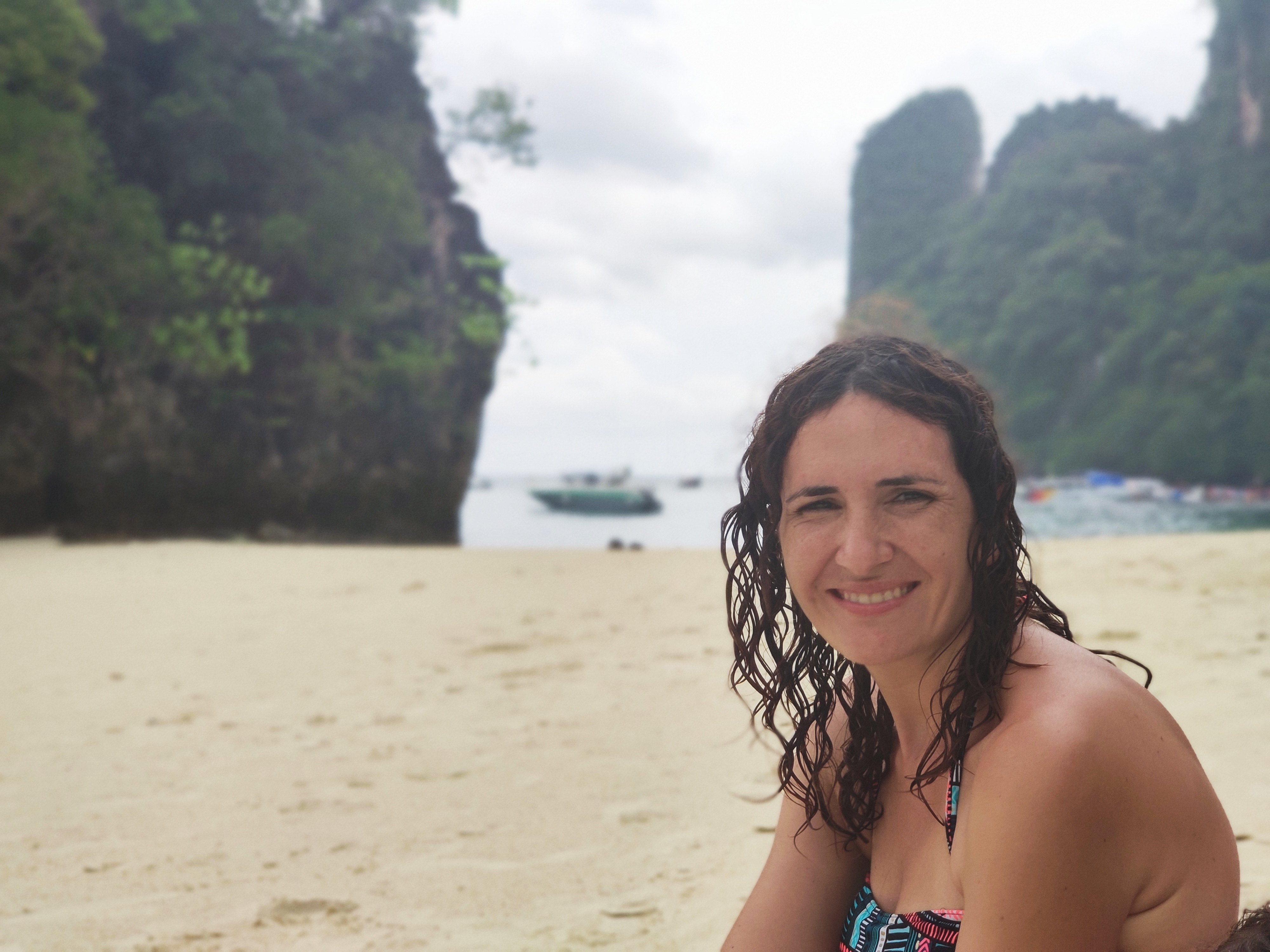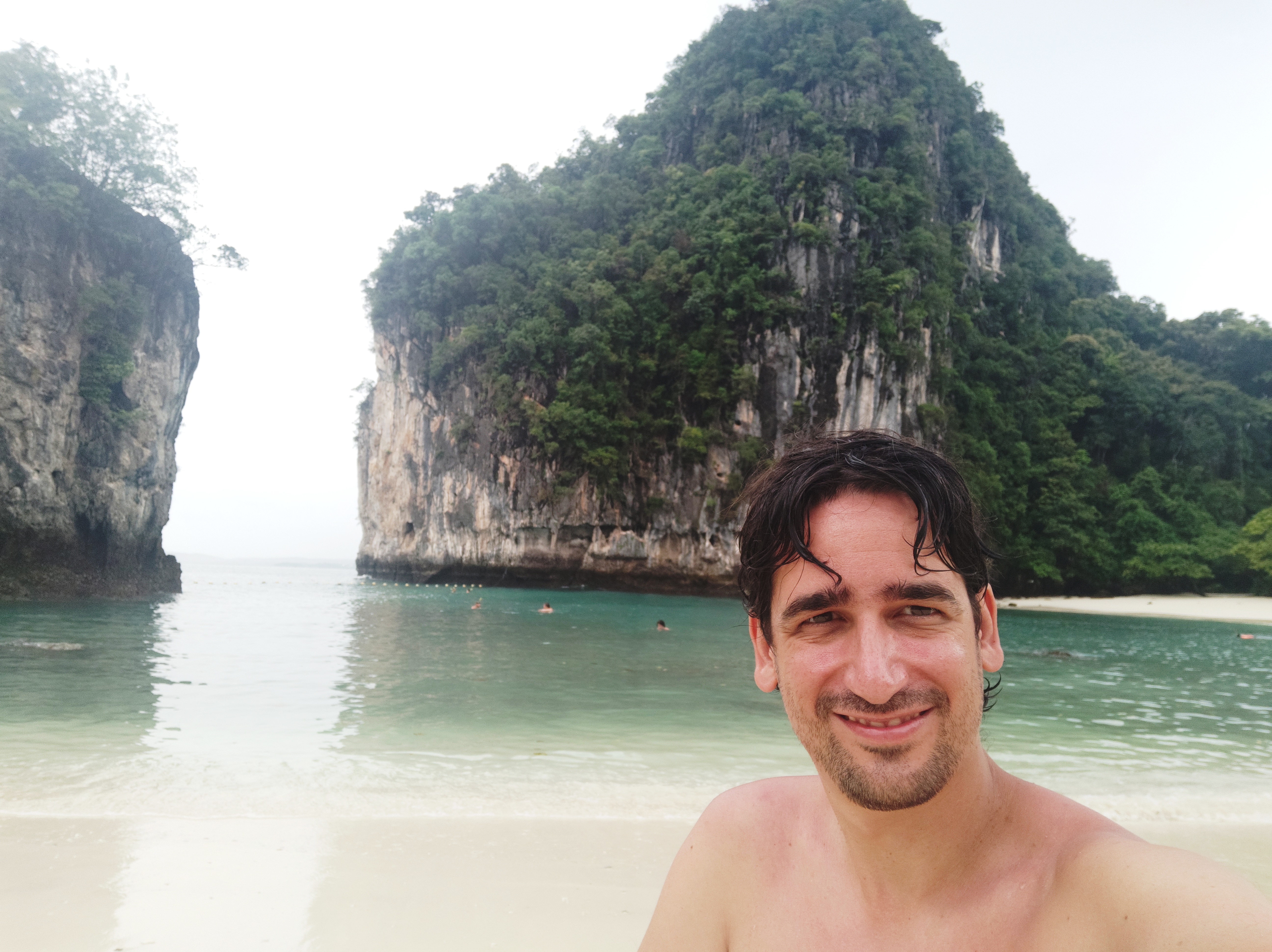 Ja l’últim lloc ha estat l’illa de Hong, on hem baixat a la platja més bonica que hem vist mai. Una doble lluna creixent, de sorra blanca i aigua transparent. Una autèntica meravella.