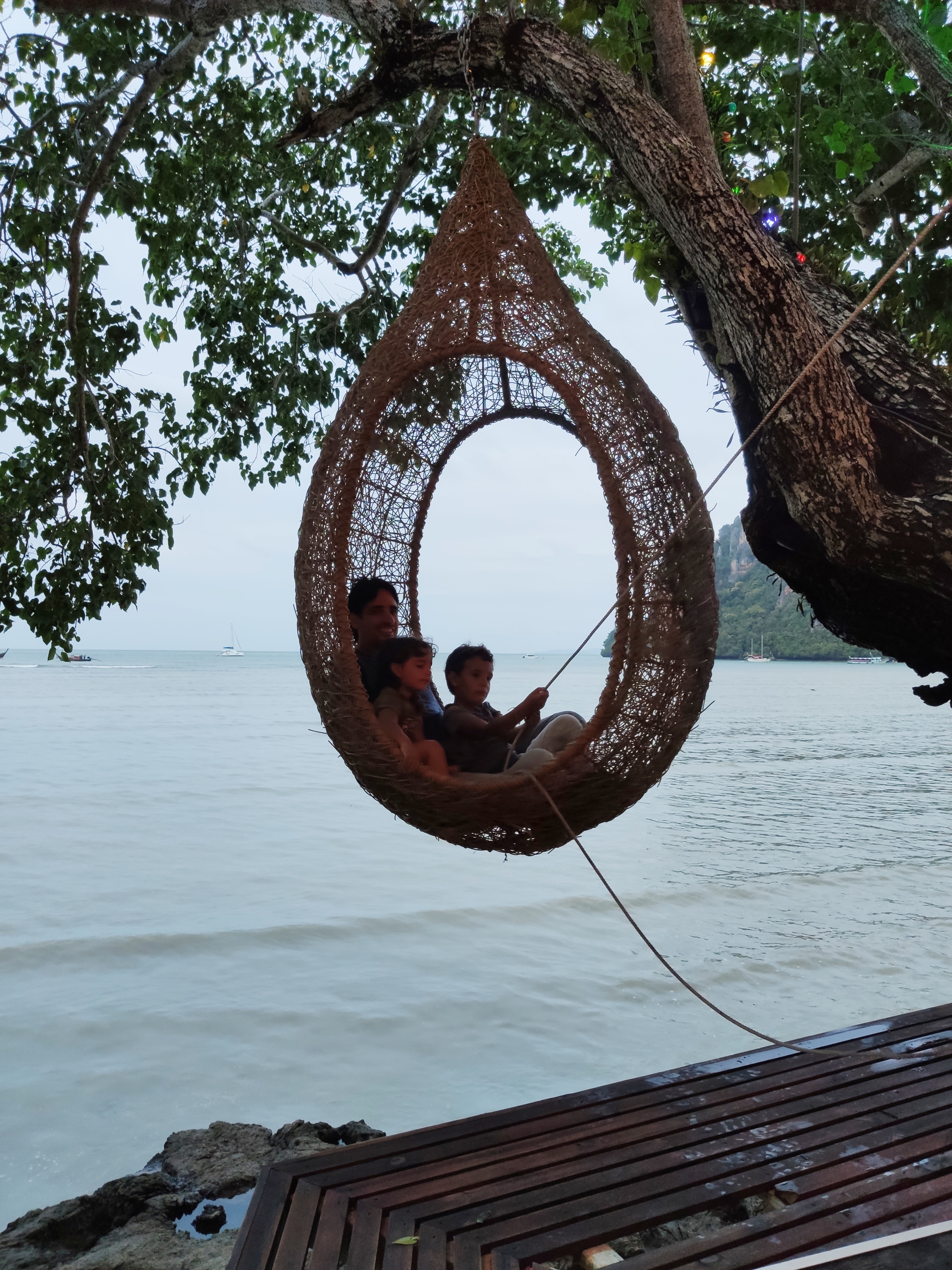 En 25 minuts hem arribat sans i estalvis a Railay. Hem aprofitat la tarda per banyar-nos a la piscina (demà marxem d’aquí cap a les Phi Phi, i allà no tindrem piscina), i per fer una última visita al magnífic bar dels gronxadors a sobre del mar.
