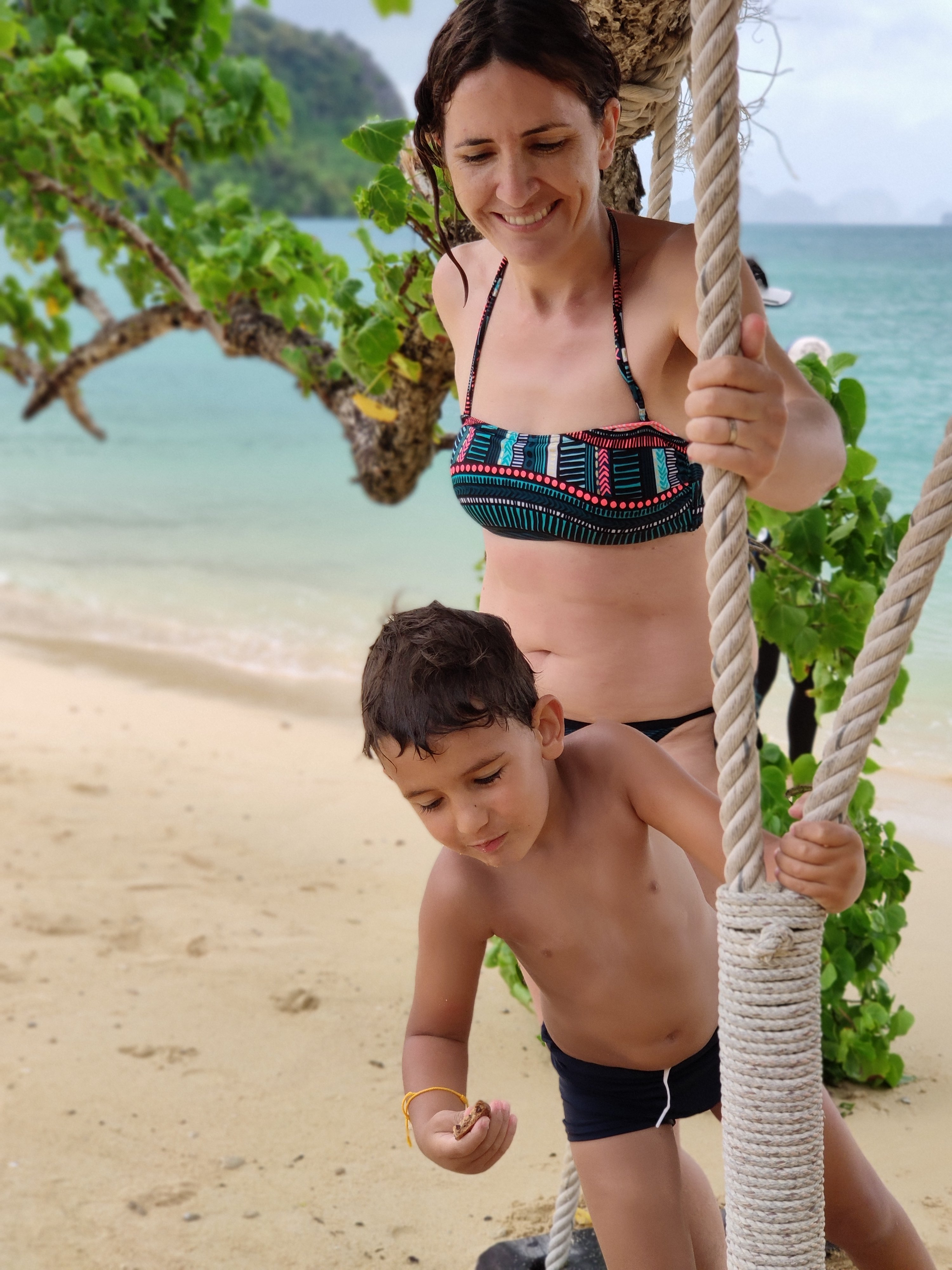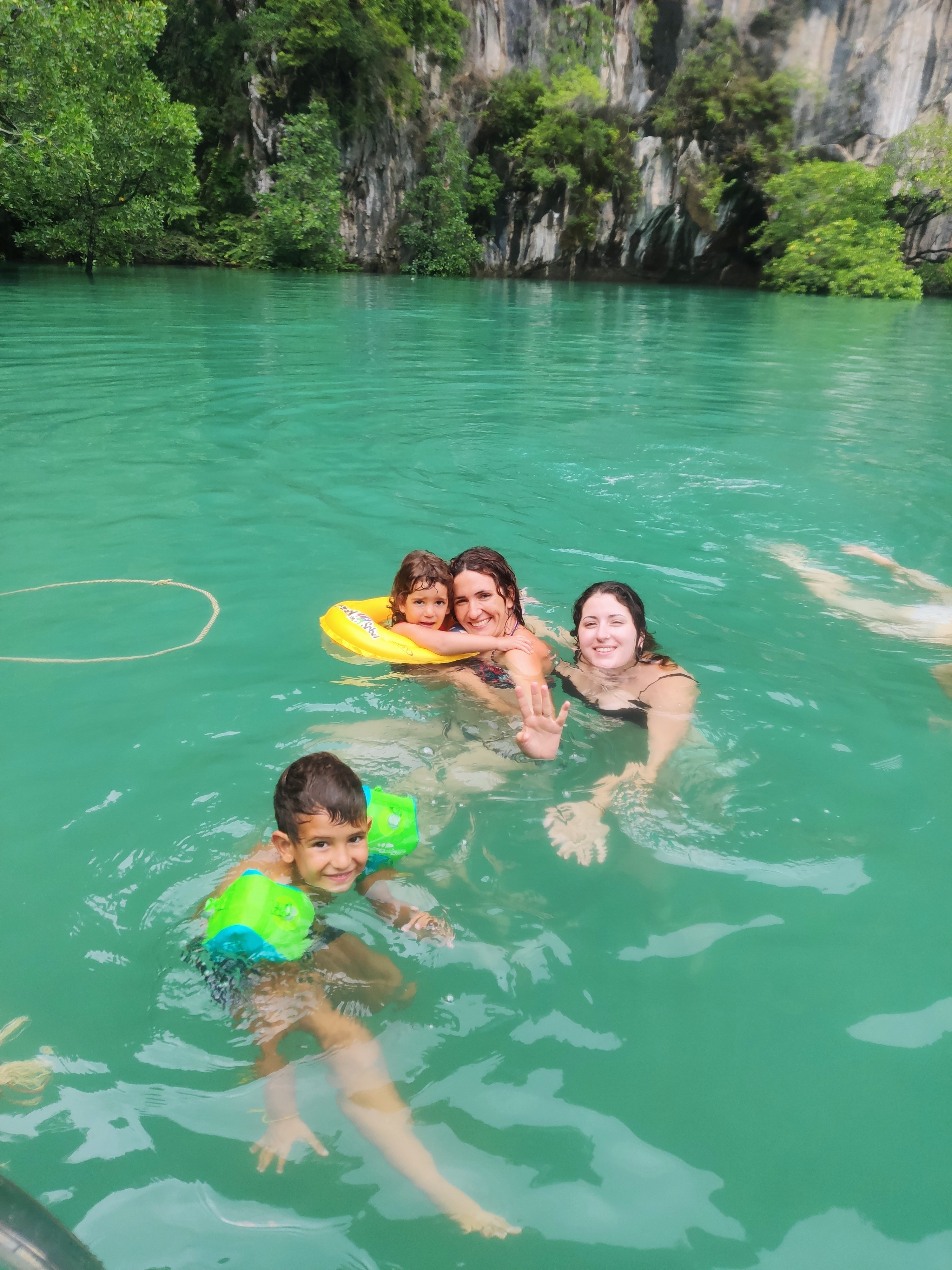 Aquí ens hi hem estat uns 20 minuts. No hi havia peixos, però tampoc altres vaixells (només un petit long tail al final); ha estat una gran experiència. Fins i tot la Jana, que és alèrgica al mar, s’ho ha passat de conya (això sí, enganxada a sa mare com una paparra).