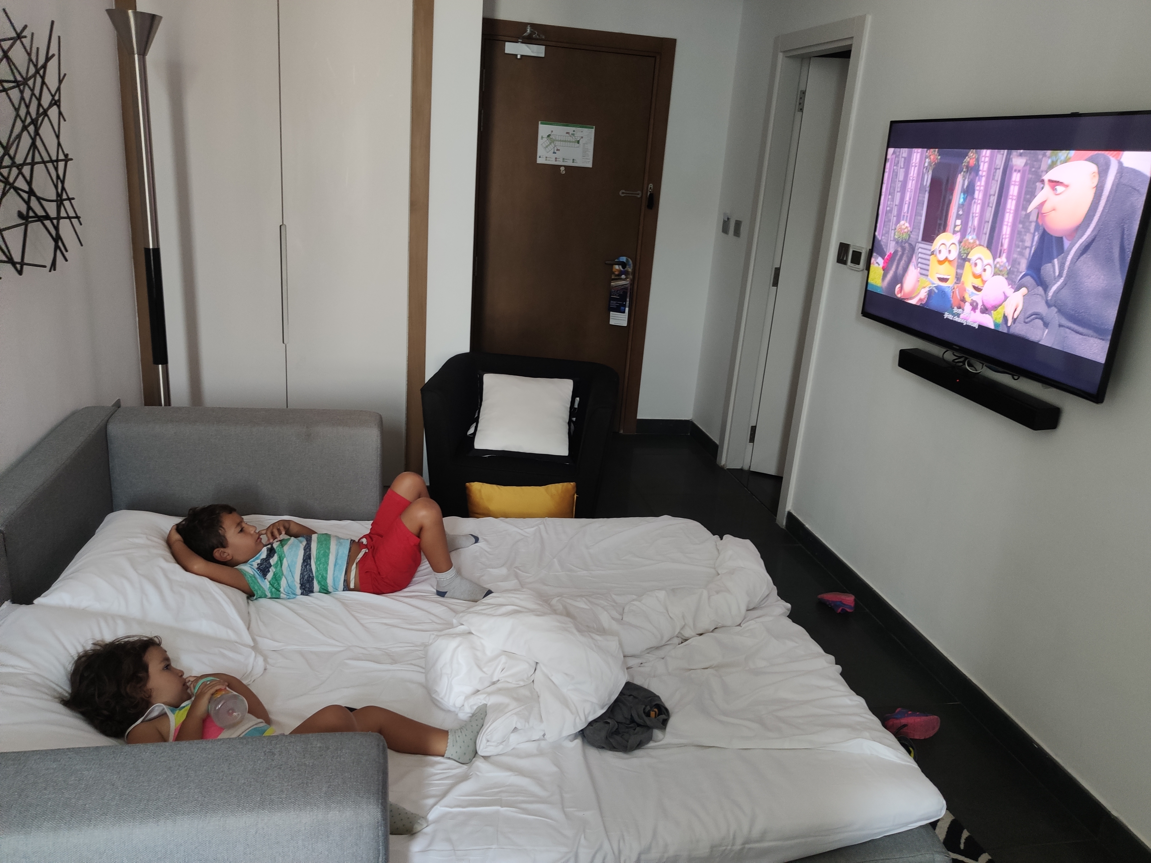 Li teníem una mica de por al vol de Phuket a Dubai. Sortir a les 0:10, arribar 6 hores més tard a Dubai (les 3 de la matinada hora local), passa pels controls de seguretat, maletes, busca un caixer per treure calers, agafa un taxi, fes el check-in a l’hotel, … Tot això amb els dos nens! És una mica per posar-se a tremolar…