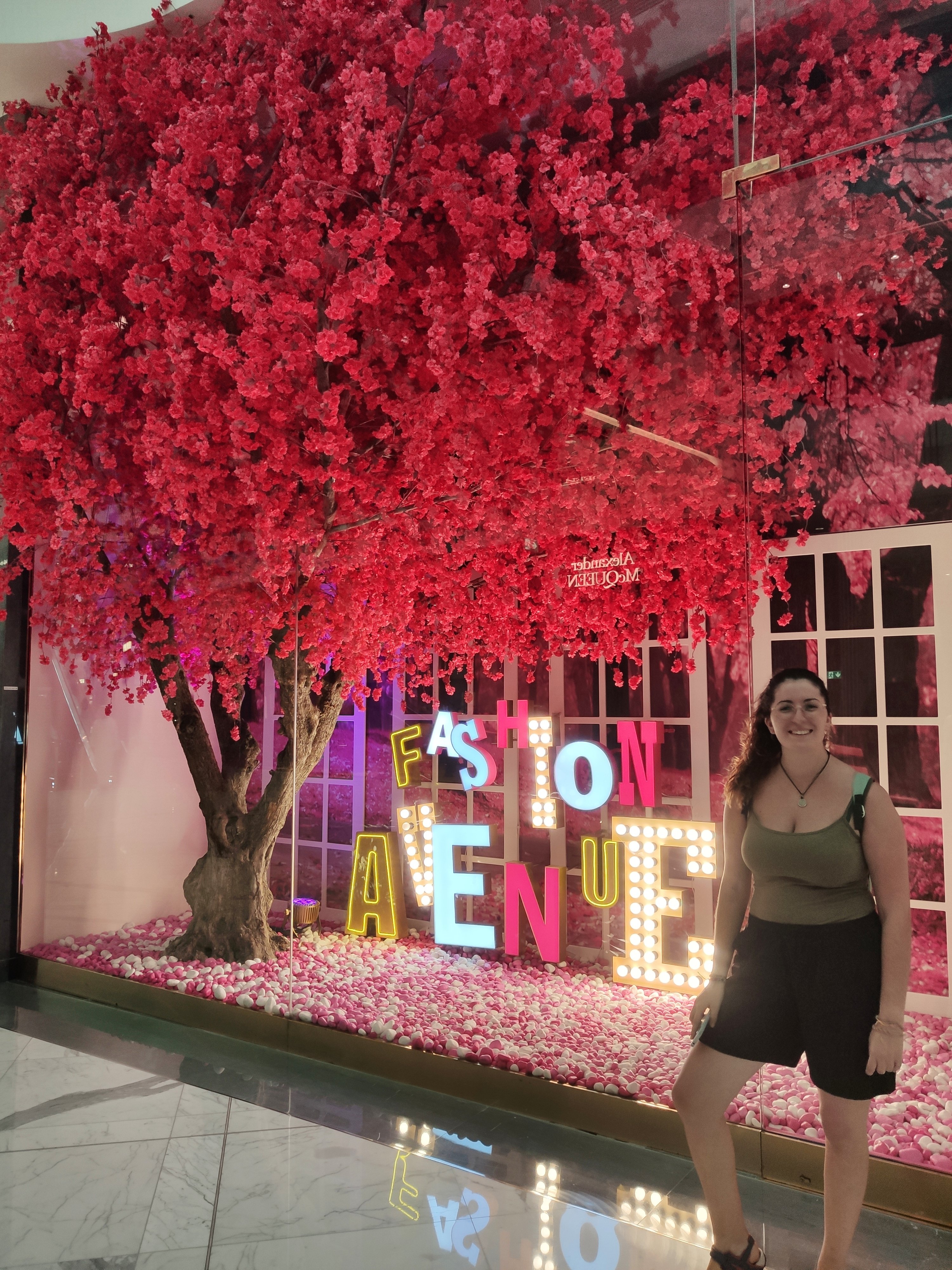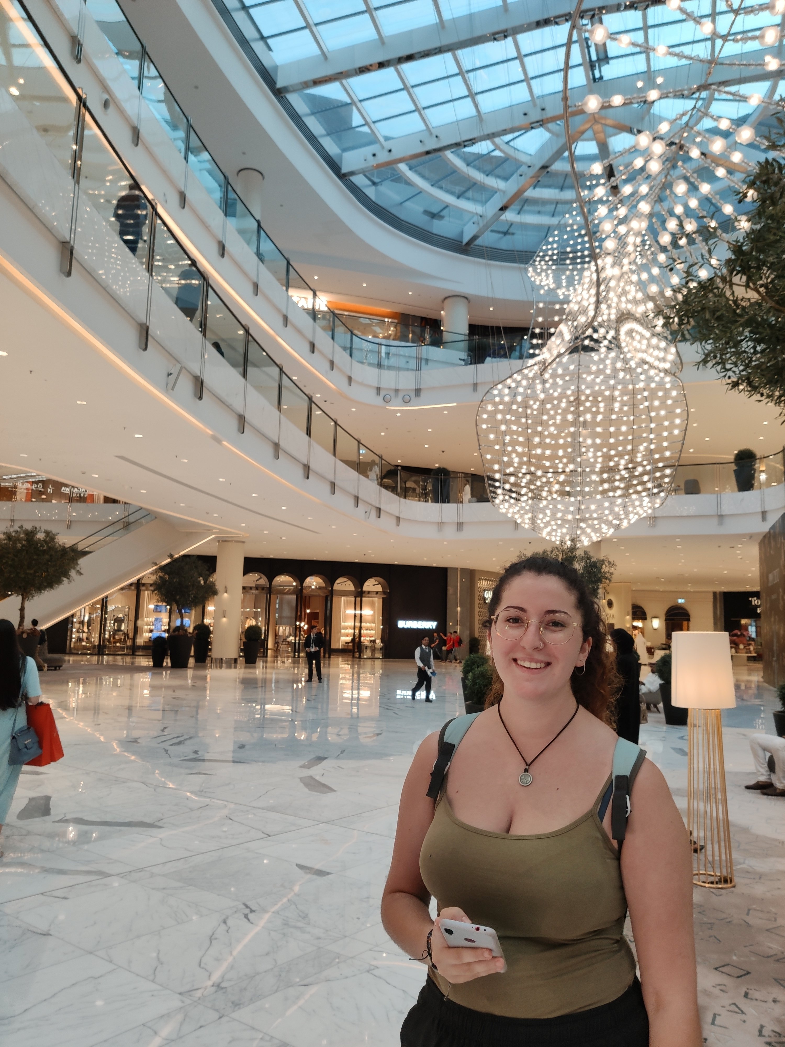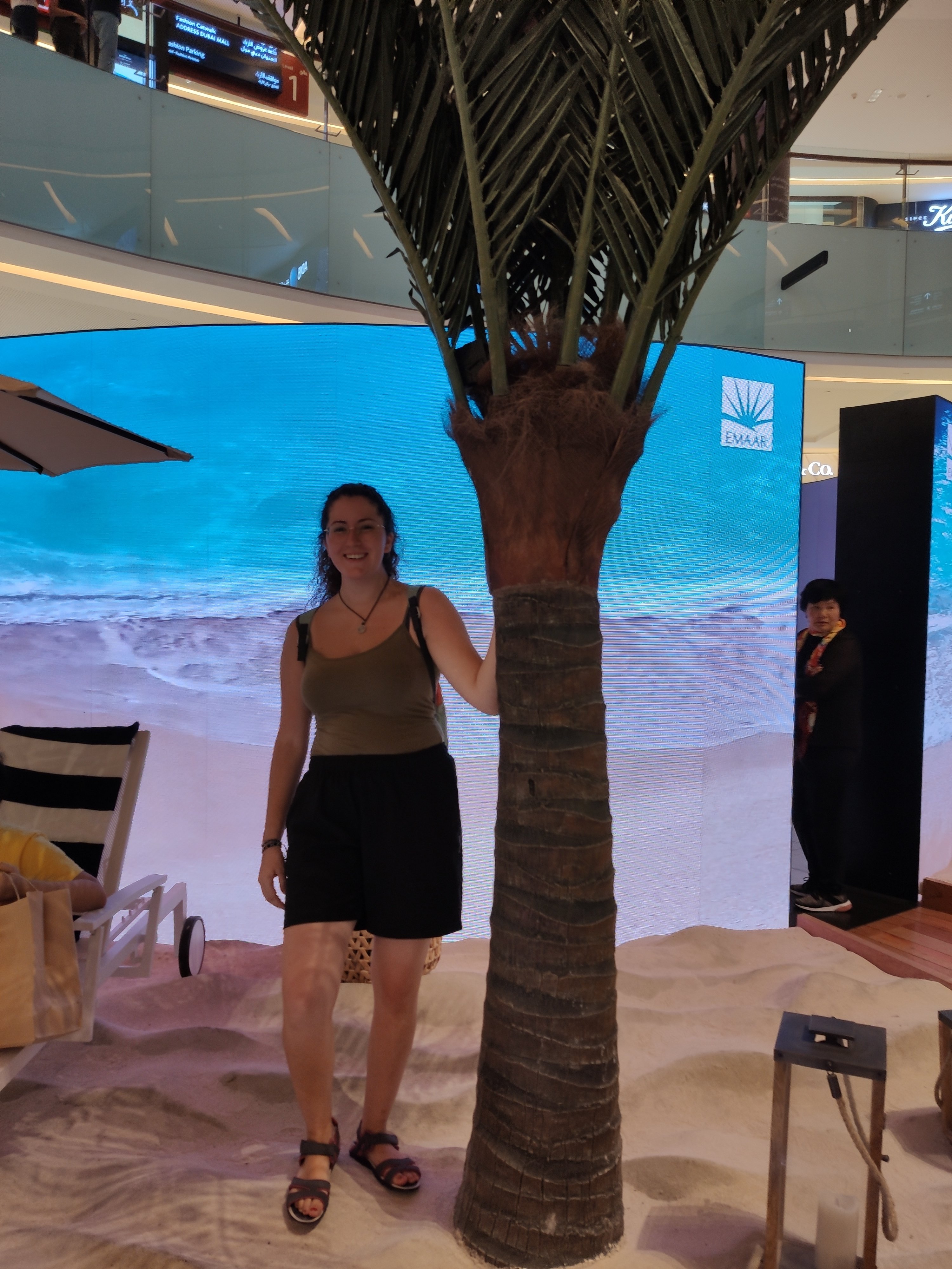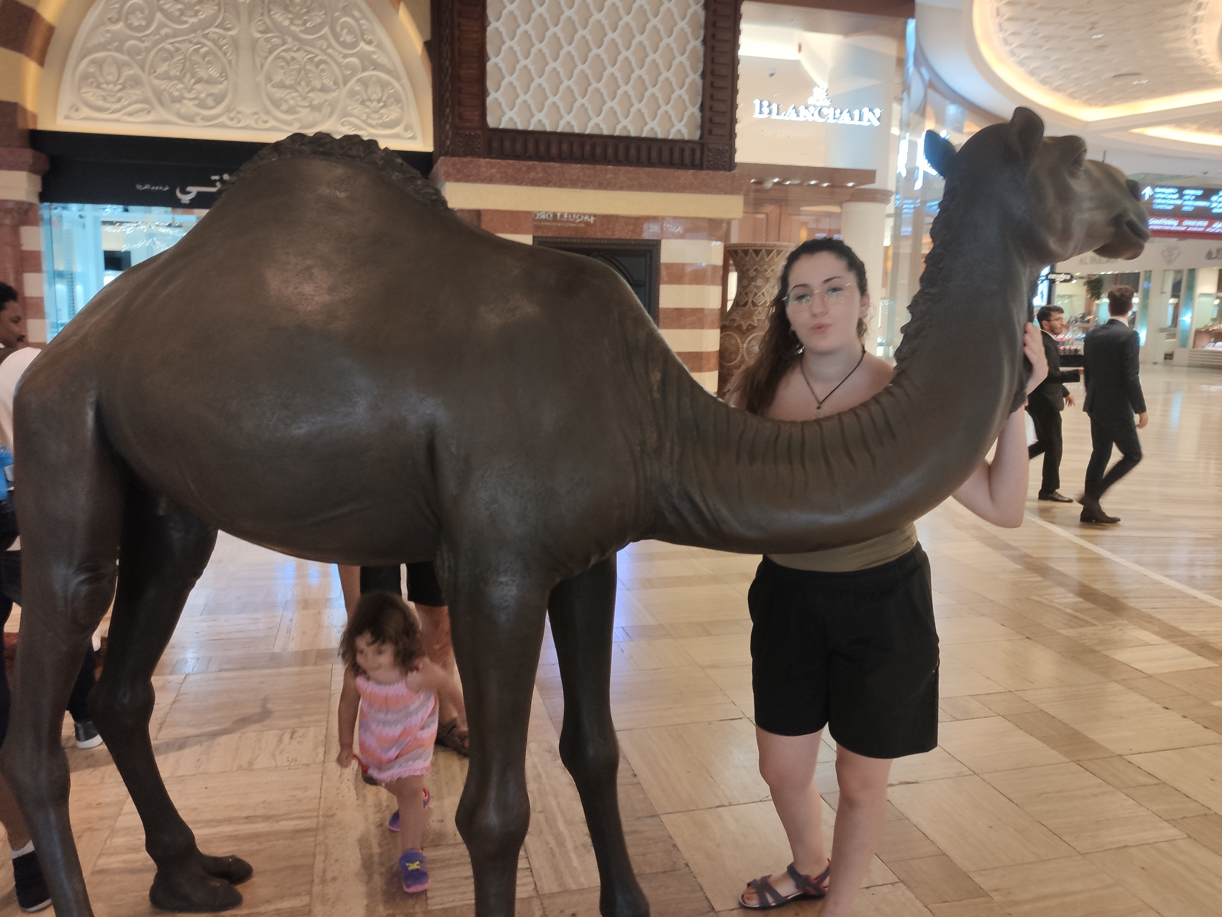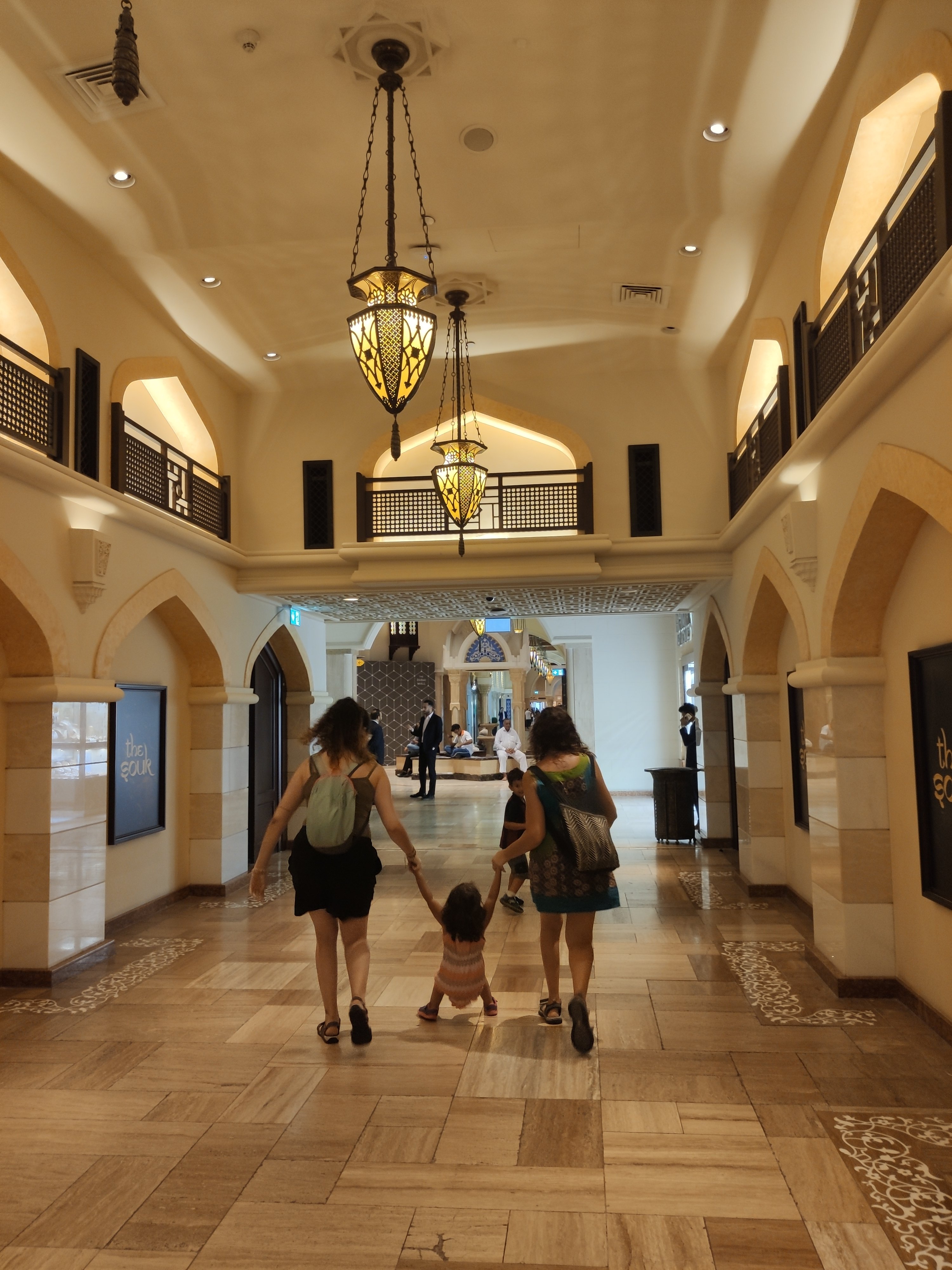 Al cap d’una estona canvia la decoració i estàs caminant pels carrers d’una ciutat àrab, tot molt ben dissenyat. I de sobte et trobes amb una sala enorme amb l’esquelet d’un diplodocus: el més complert del món. I així tota l’estona. Evidentment, botigues per avorrir: des de l’H&M a les més exclusives (la Beth s’ha comprat un bolso de Louis Vuitton pel mòdic preu de 20.000 dirhams, uns 5.000 eurillos al canvi).