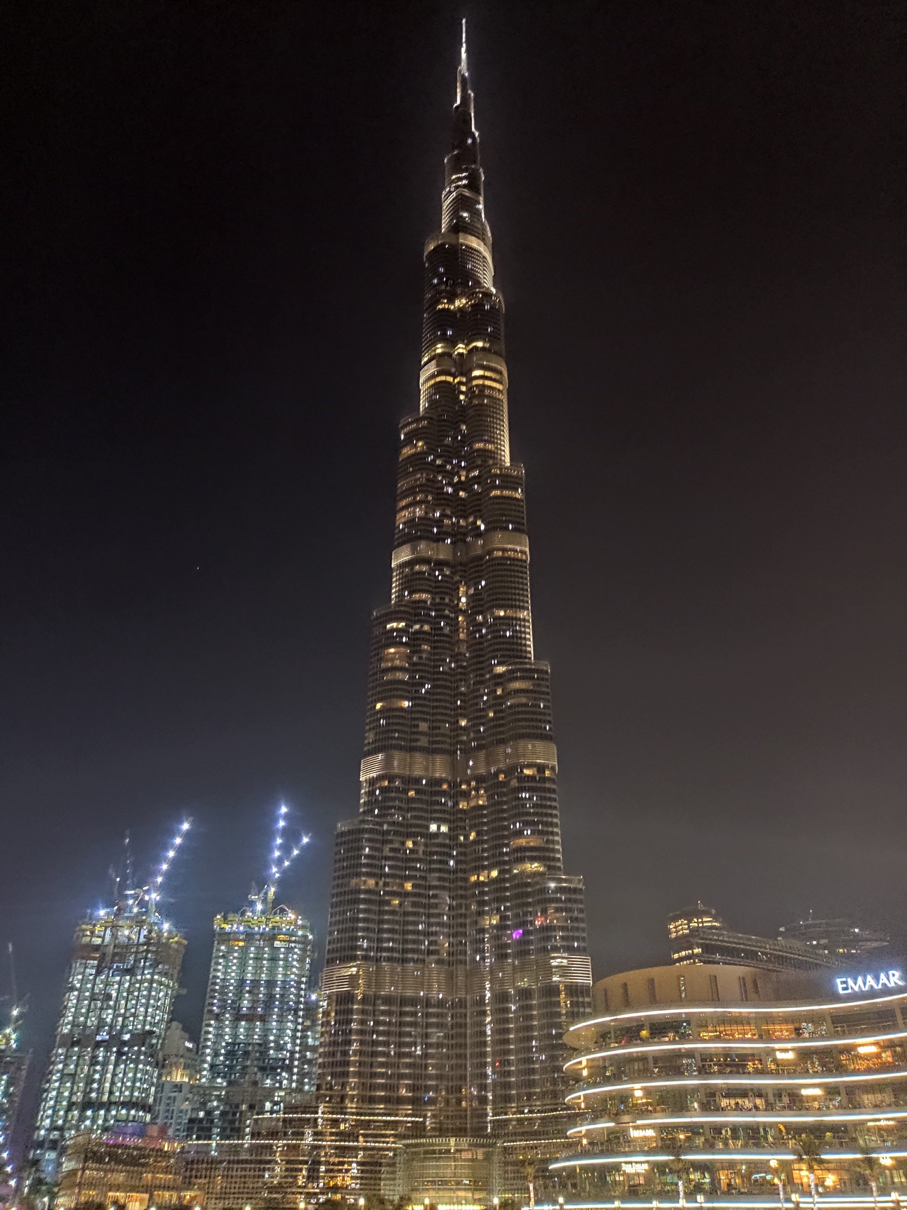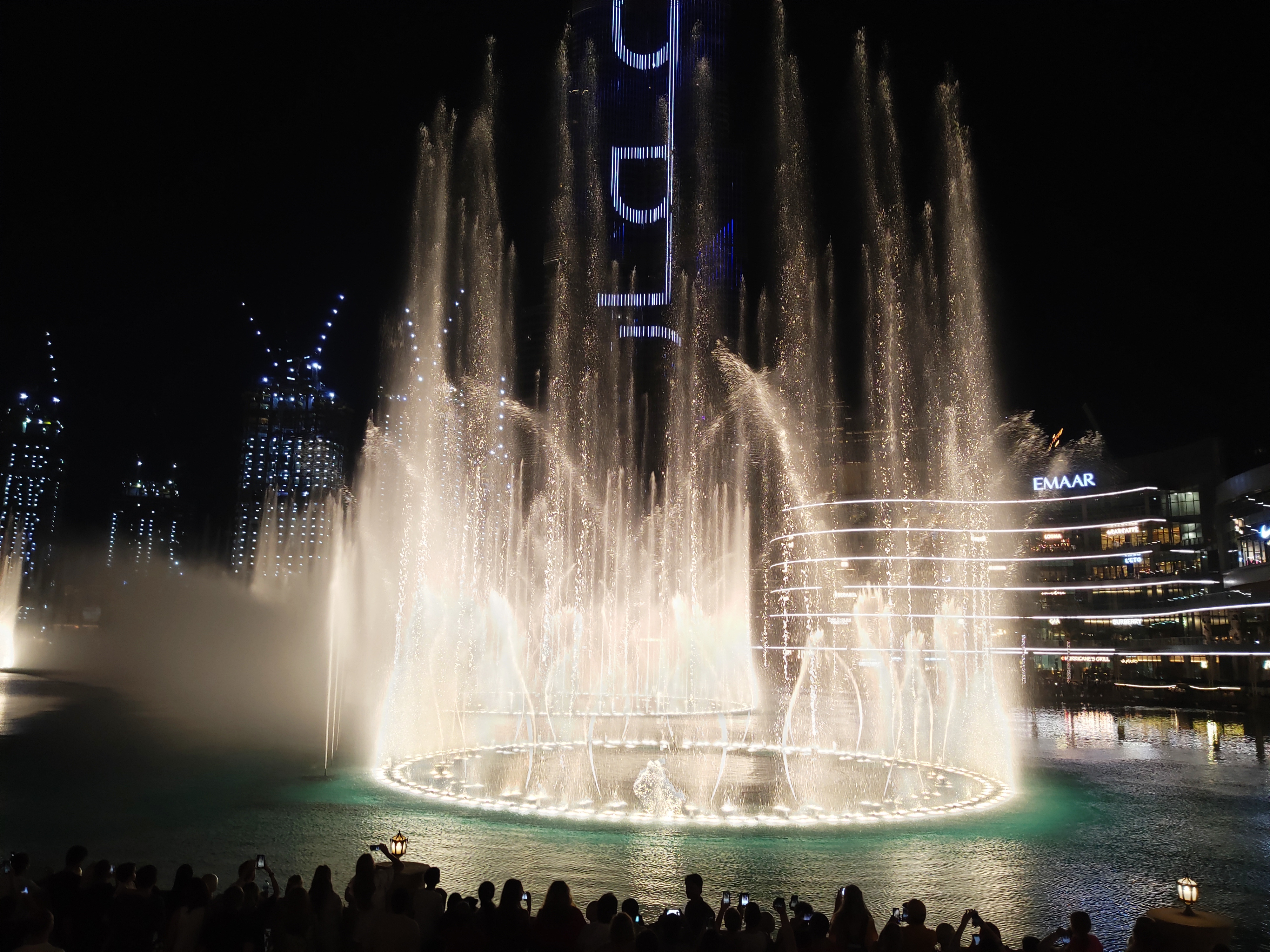 Després de fer voltes i més voltes, hem sortit al carrer per veure un meravellós espectacle amb unes fonts que hi ha entre el centre comercial i el Burj Khalifa (que estan literalment enganxats). És espectacular: l’edifici està recobert de llums LED que projecten imatges (en un moment han fet com el joc Asteroids de l’Amiga, molt xulo). L’espectacle és realment espectacular, amb música, llums i aigua, amb els gratacels (començant pel Burj Khalifa, però n’hi ha més) il-luminats de fons. El fan cada mitja hora i dura 3 o 4 minuts, ens ha agradat tant que ens hem esperat per veure’l una segona vegada (i resulta que la música és completament diferent, el segon ha estat encara millor).