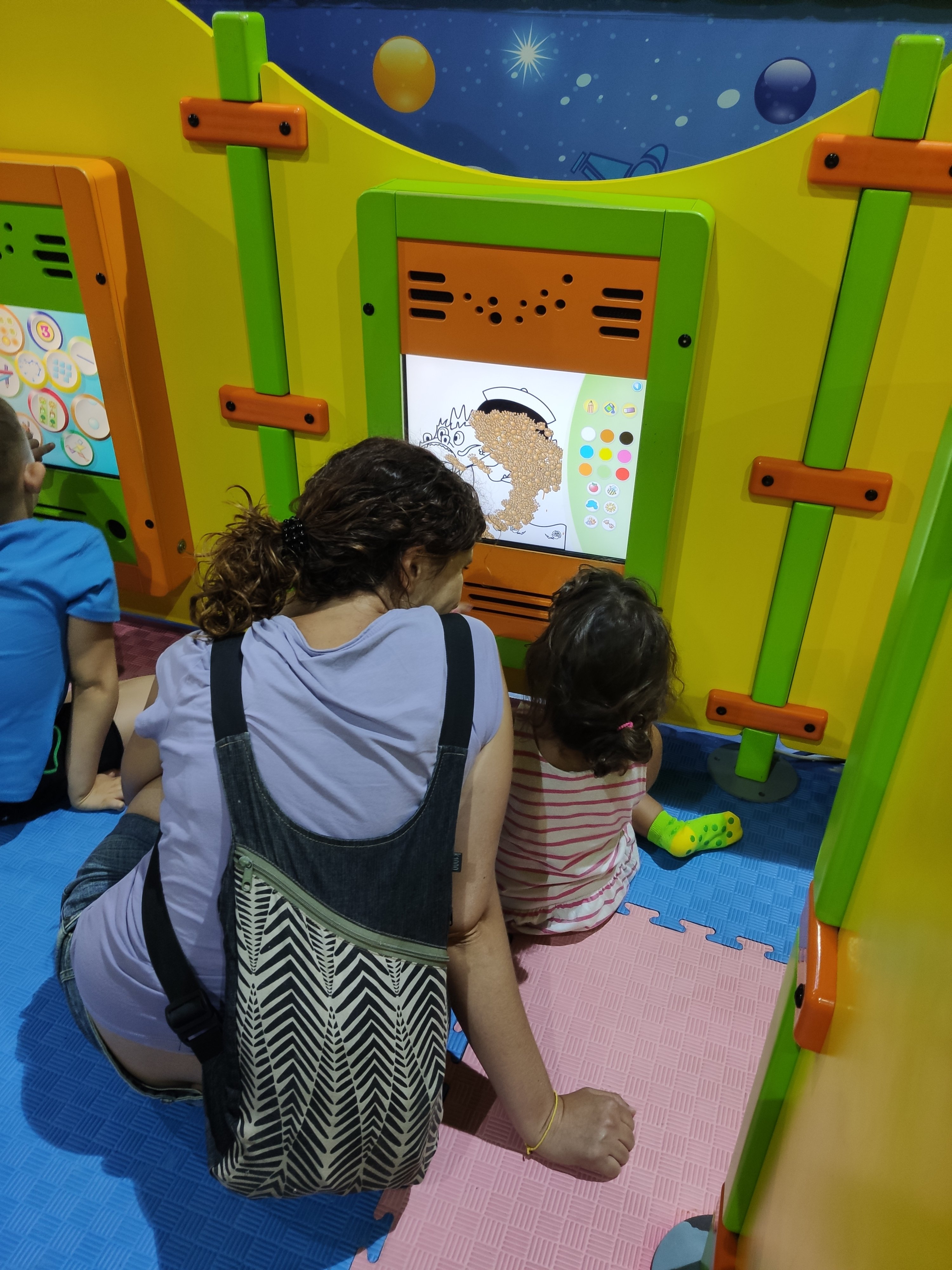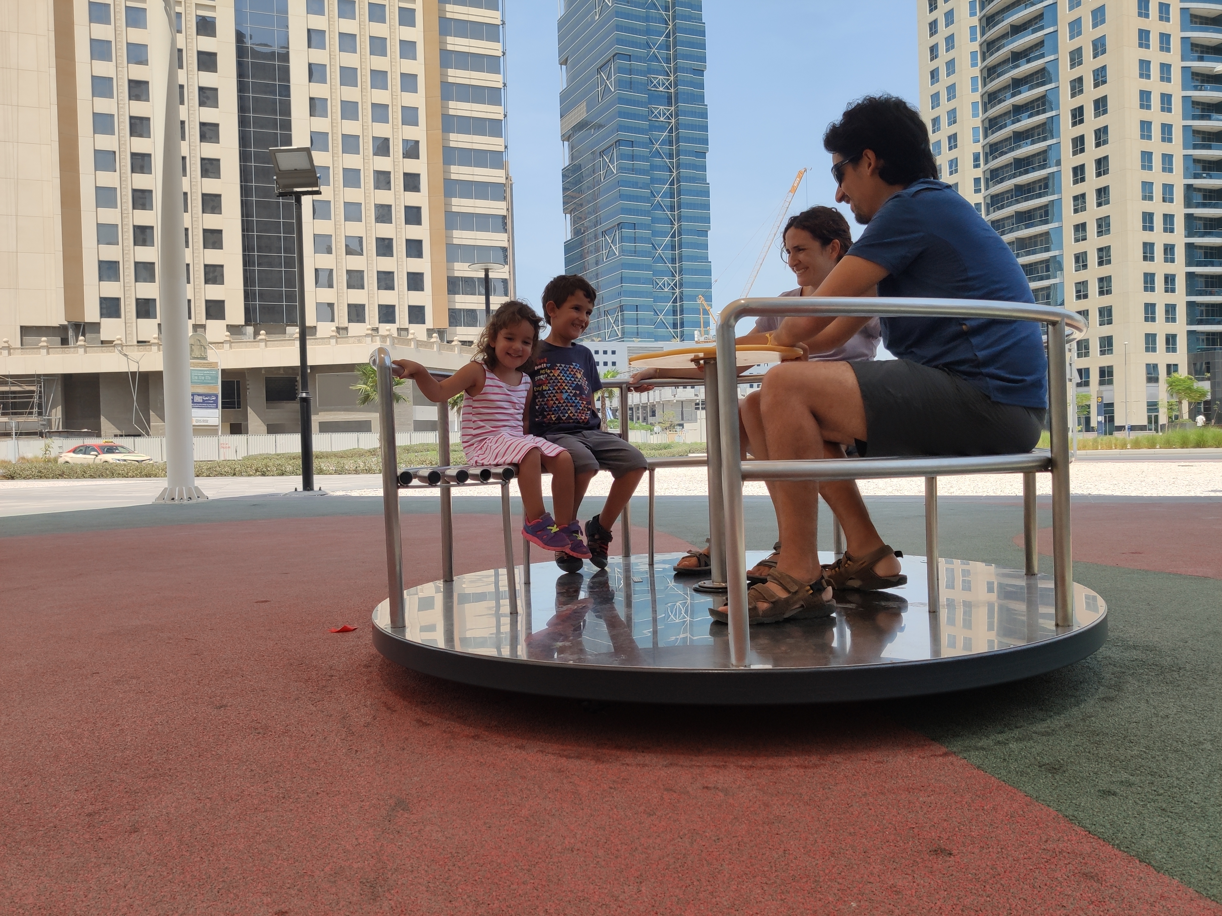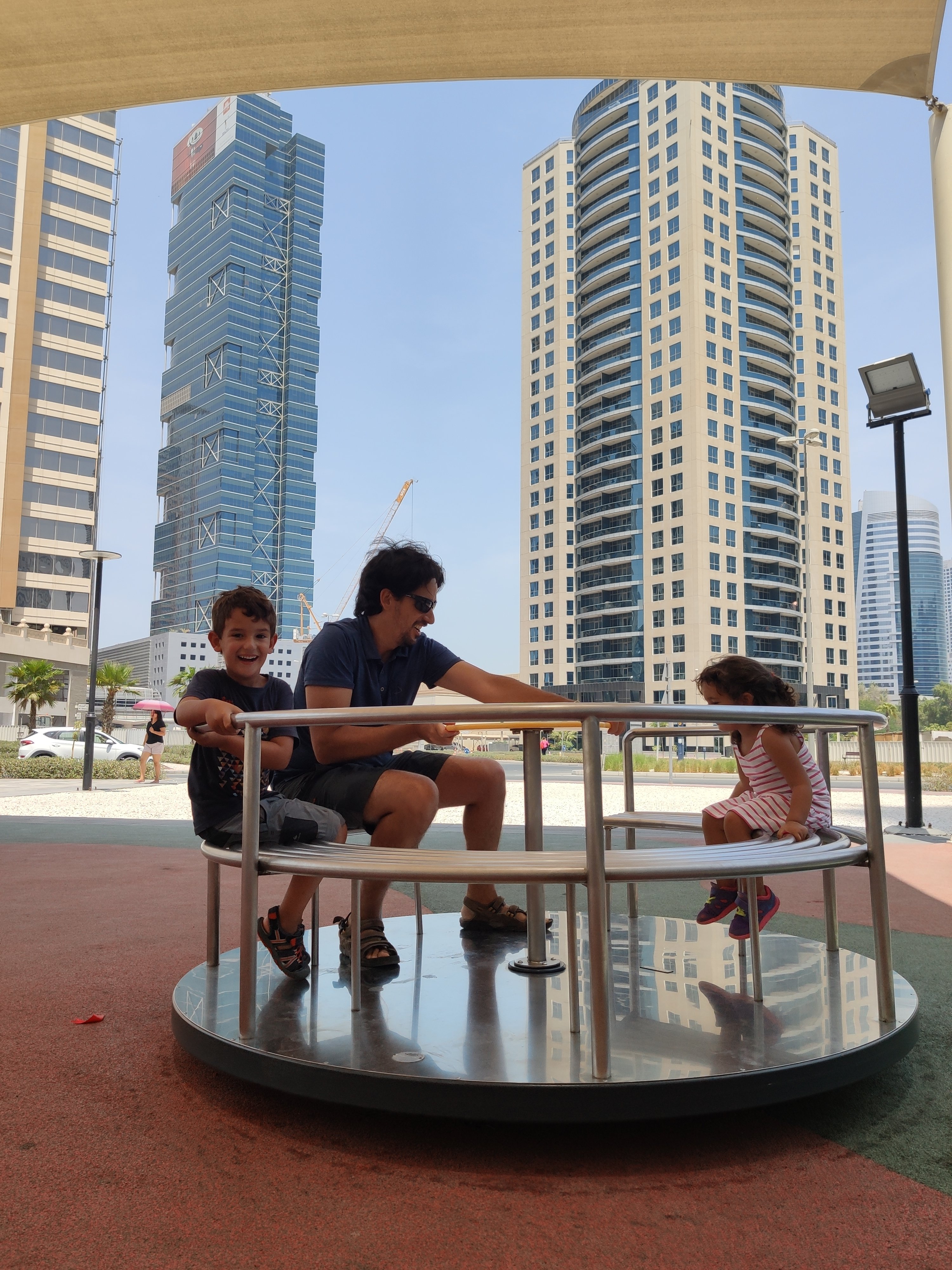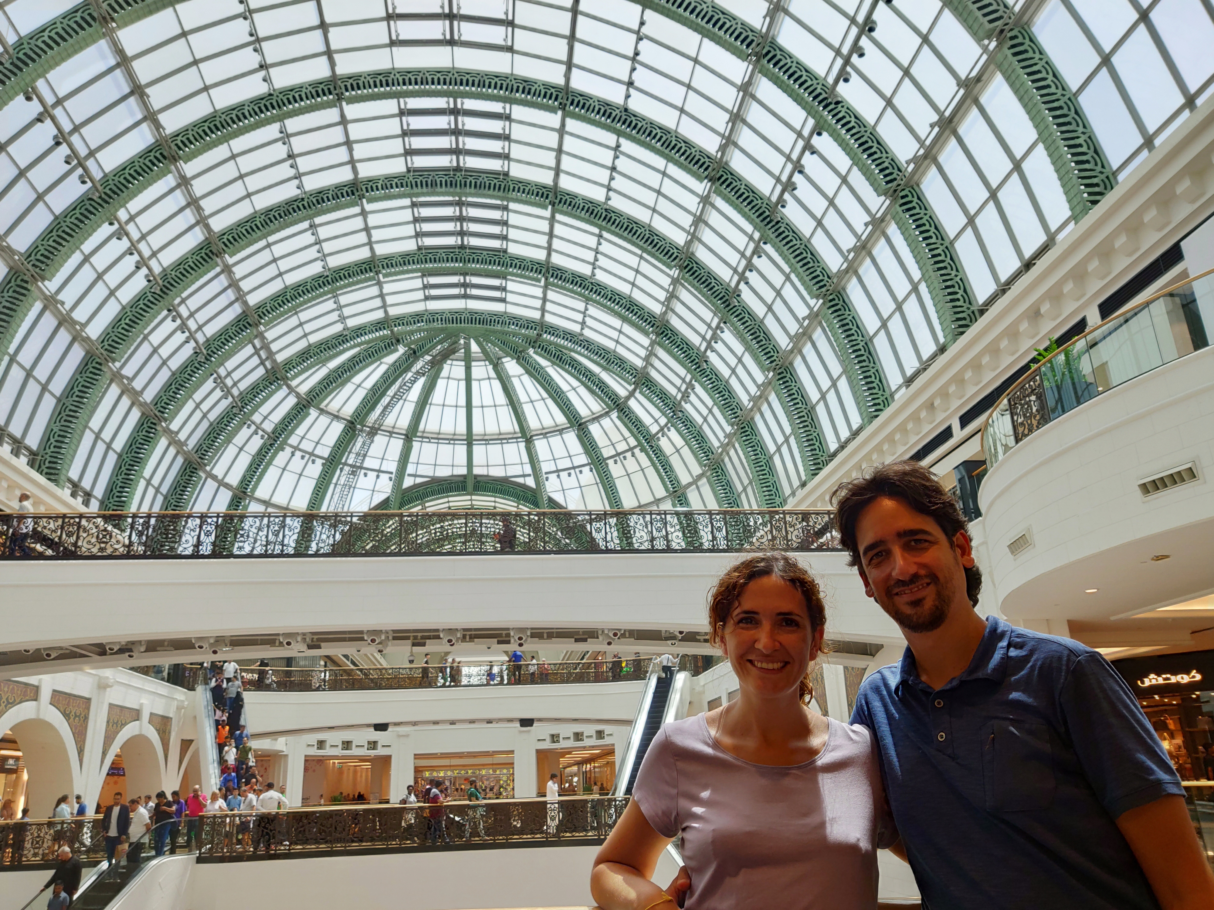 Malgrat el tema de la pista d’esquí, aquest centre comercial no és, ni de bon tros, tan espectacular com l’altre (però té aire condicionat!). Després de passejar una estona hem trobat una zona amb maquinetes, bolera i… Una parc de pilotes (com un chiquiparc, però en dubaití, és a dir, molt gran). Era car (ens ha costat 25€ entre els dos nens), però ens hi hem estat més d’una hora i mitja, que crec que ha sigut l’estona en la que han estat més feliços de tot el viatge. La Jana estava on fire i ha aguantat més que el Gerard, baixava i pujava non stop.