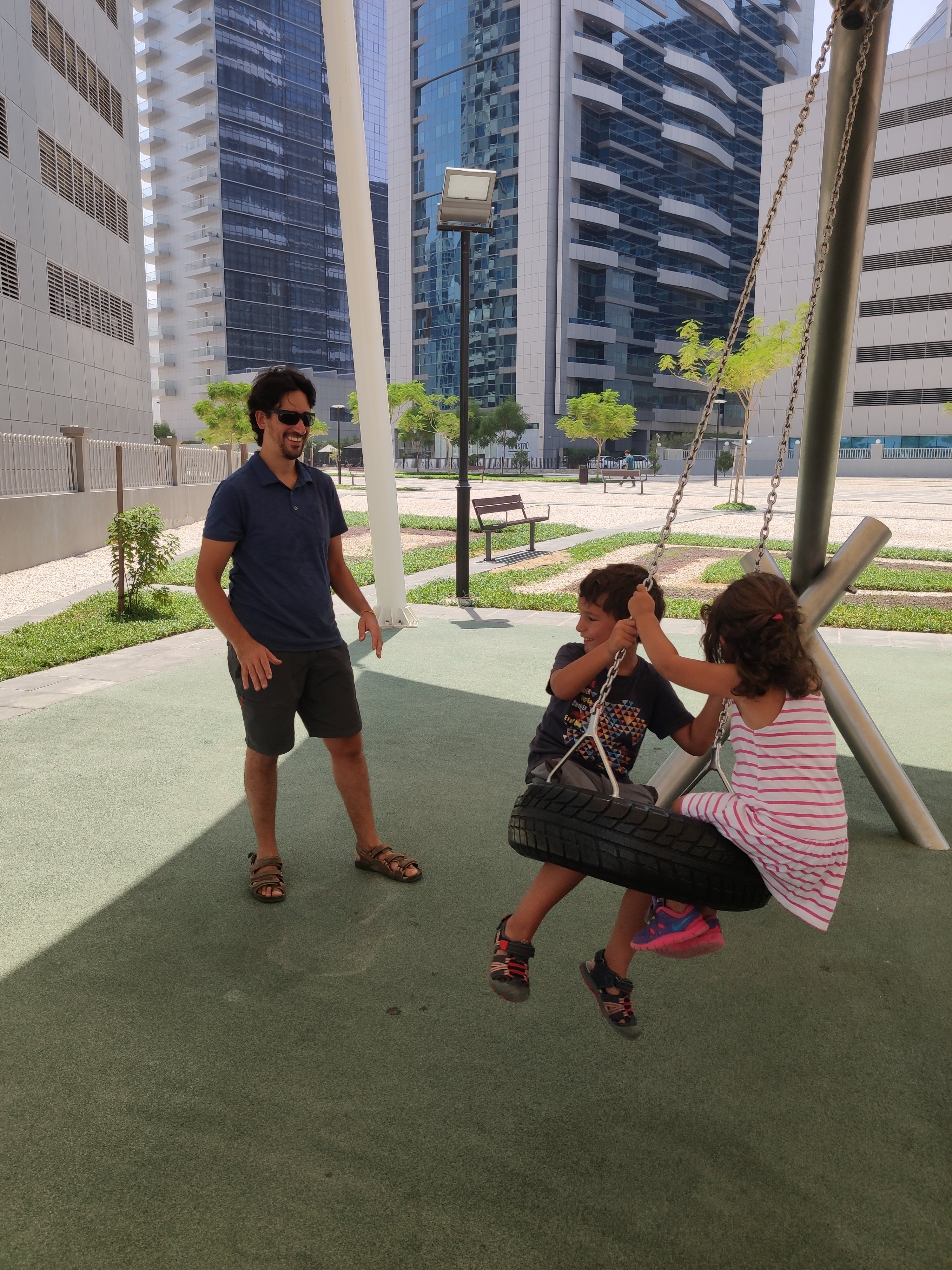 Però els nens estaven tan necessitats de parc, que els era igual. Estàvem a menys de 100 metres de l’estació del metro (que ens la suava, però té aire condicionat, aire condicionat!!!) i nosaltres allà xorrejant, asfixiats de calor, perquè els nens es gronxin. Però si demà ja tornem a Pallejà i us passareu 365 dies seguits anant a putos parcs! No cal avui, que estem a 40 graus a l’ombra! (I no és cap exageració)