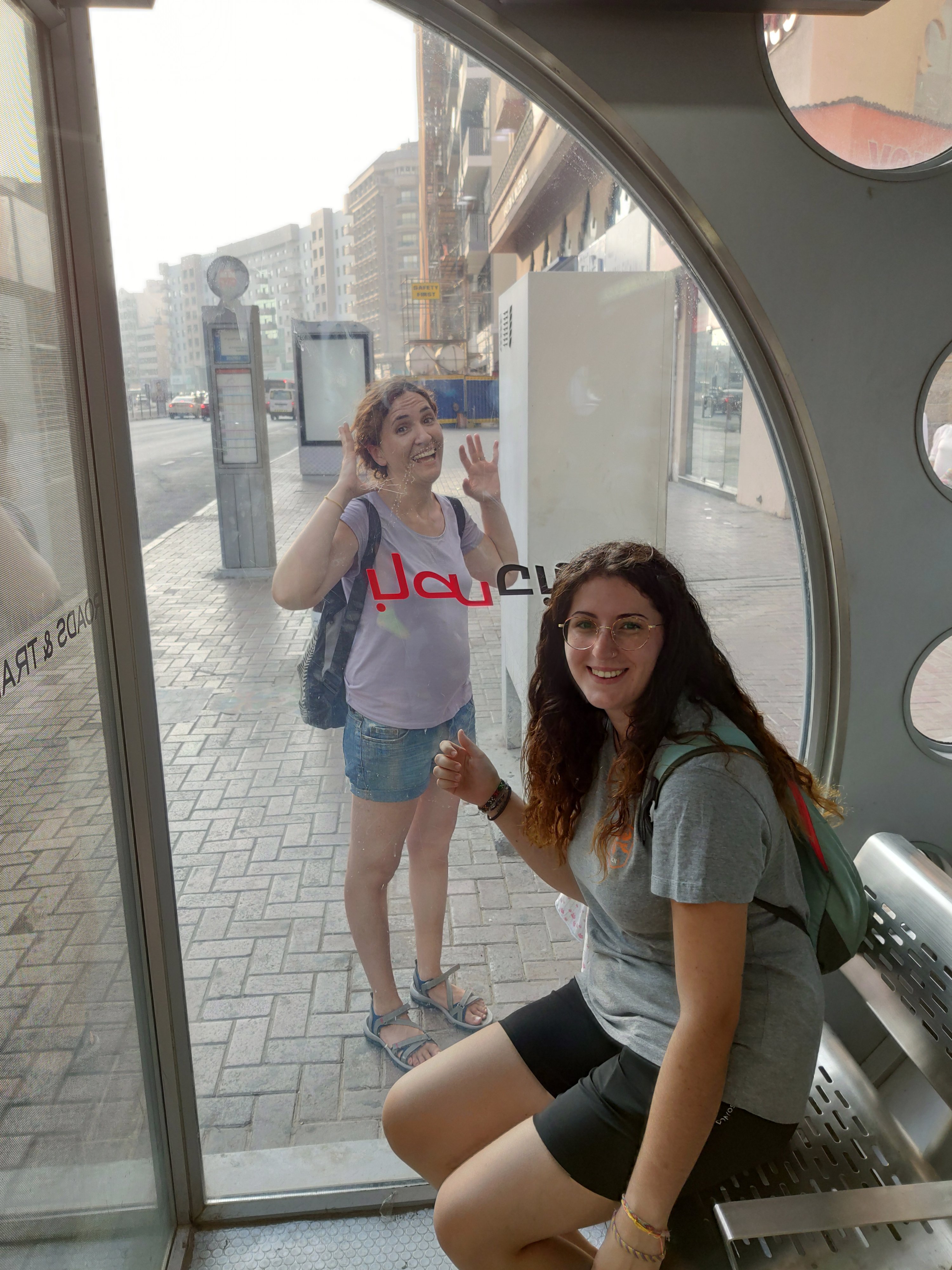 Com ahir, al carrer feia una calor inhumana, és com estar dins d’un forn. Ens hem posat en marxa cap a les 11; de camí cap al metro ens hem parat al parc que hi ha a prop de l’hotel (ahir no ens hi vam fixar, però té com una vela que el cobreix sencer i estava a l’ombra). Sol no feia, però calor, tota la que vulguis i més.