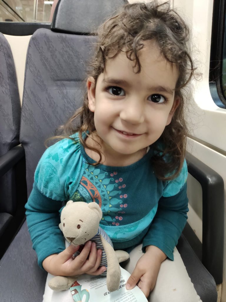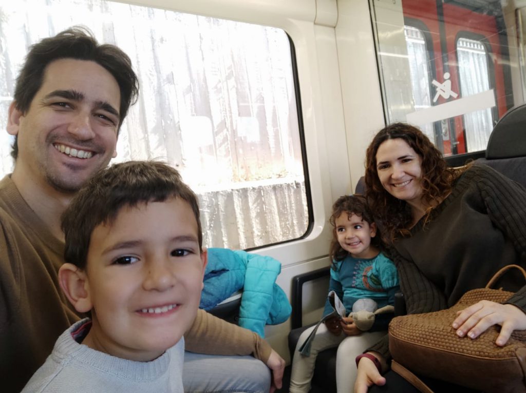 Ens adonem que es fan grans (ells, no nosaltres, eh! ?). Avui ha estat el primer cop que hem anat sense cotxet i ens hem assegut tots en un vagó normal, no el d’entrada per cotxets, ocupant un compartiment de 4, tots ben assegudets cadascú a la seva cadira tot el viatge i jugant al “veo, veo” ?