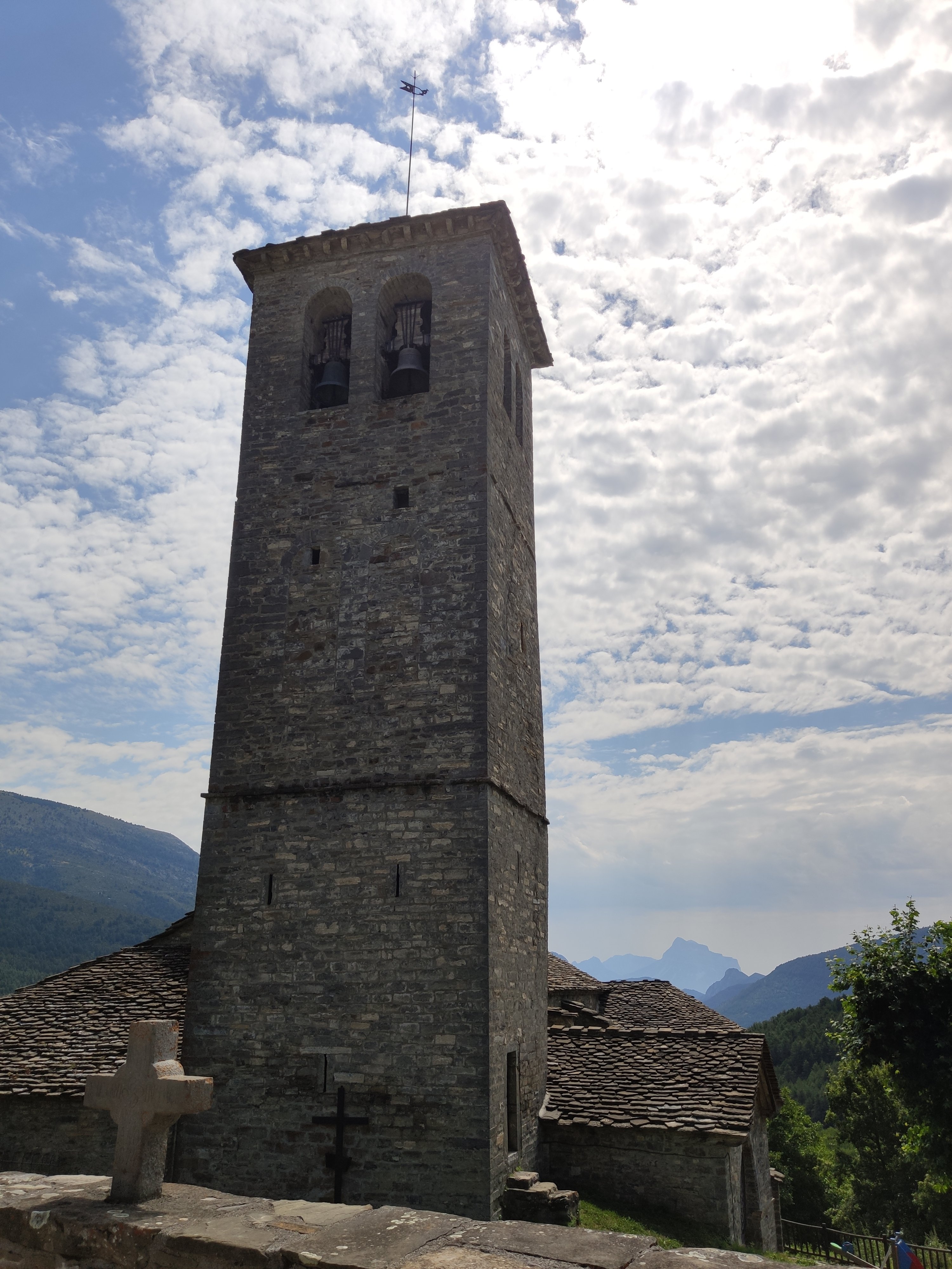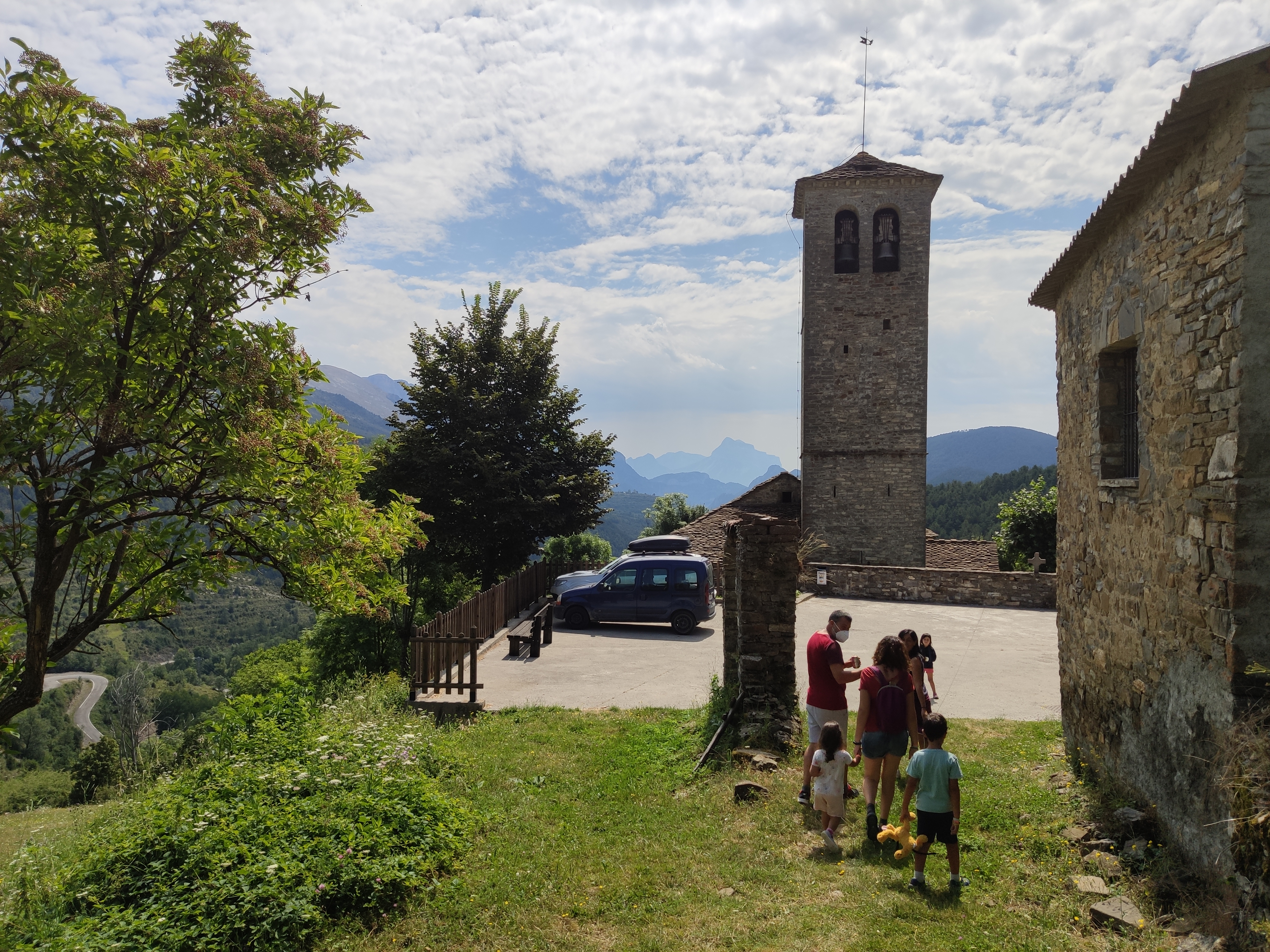 Ens vam llevar en un entorn preciós, vam esmorzar i vam fer parada a Fanlo, un petit poble rústic súper ben cuidat on vam estar-nos una estona en un petit parc de gronxadors davant de l’església.