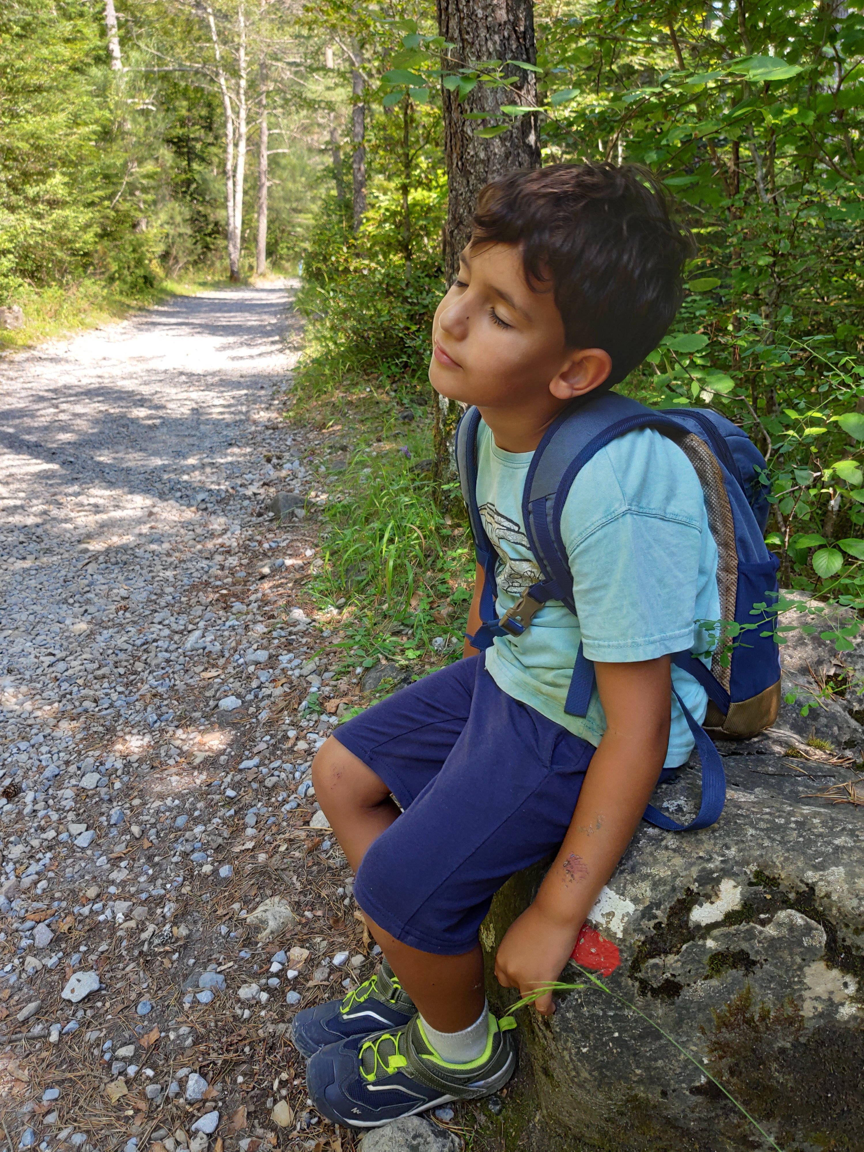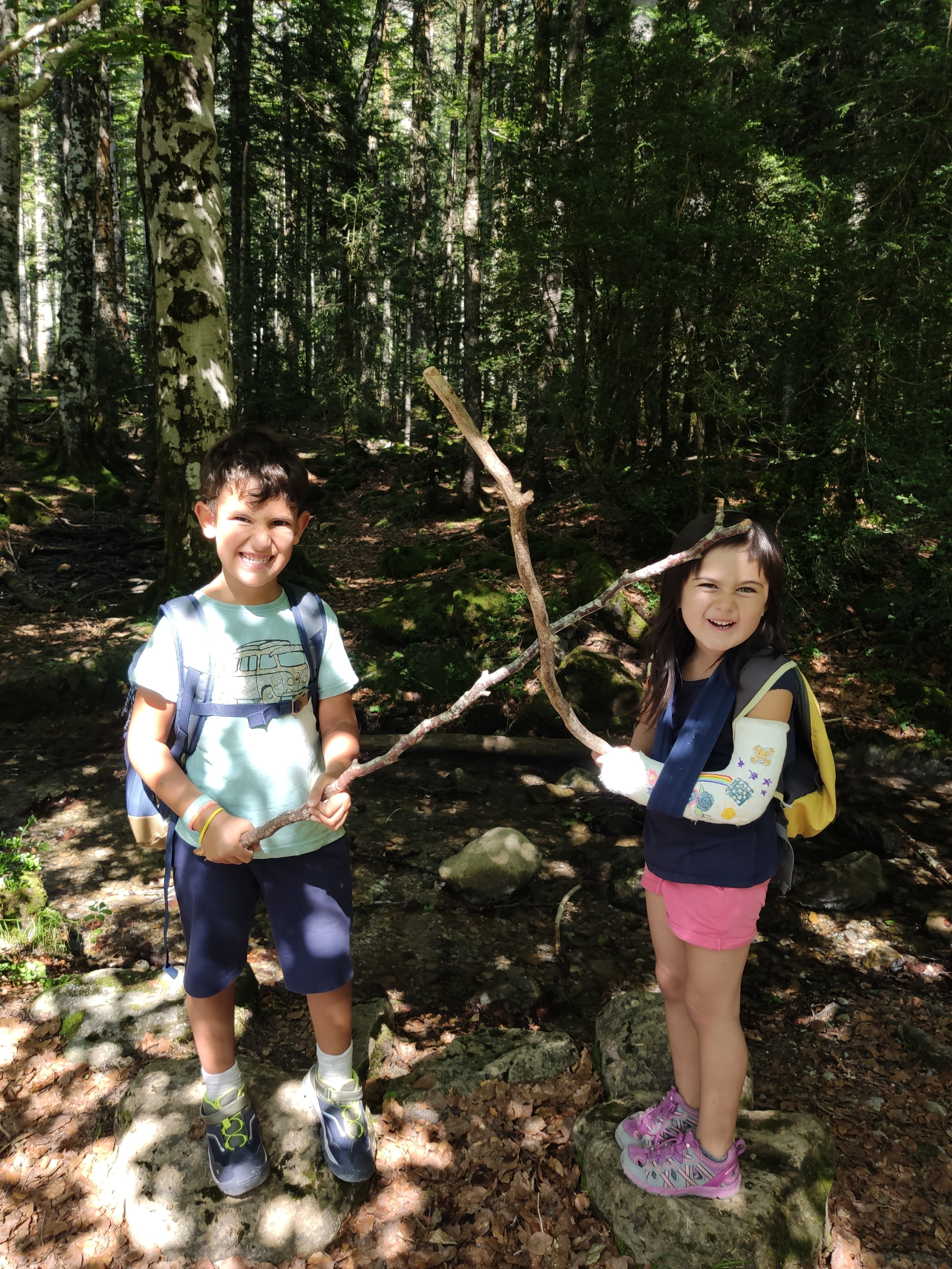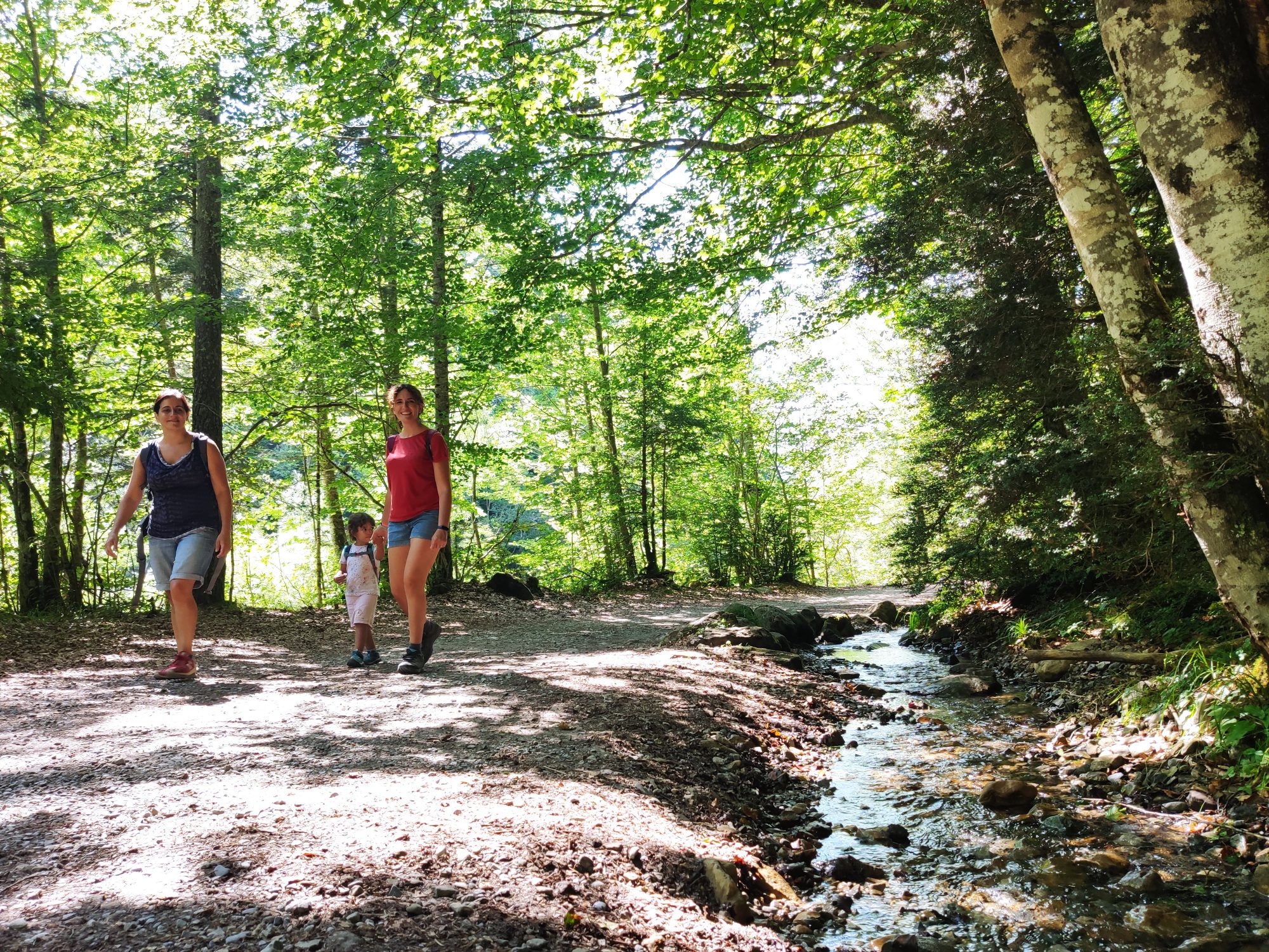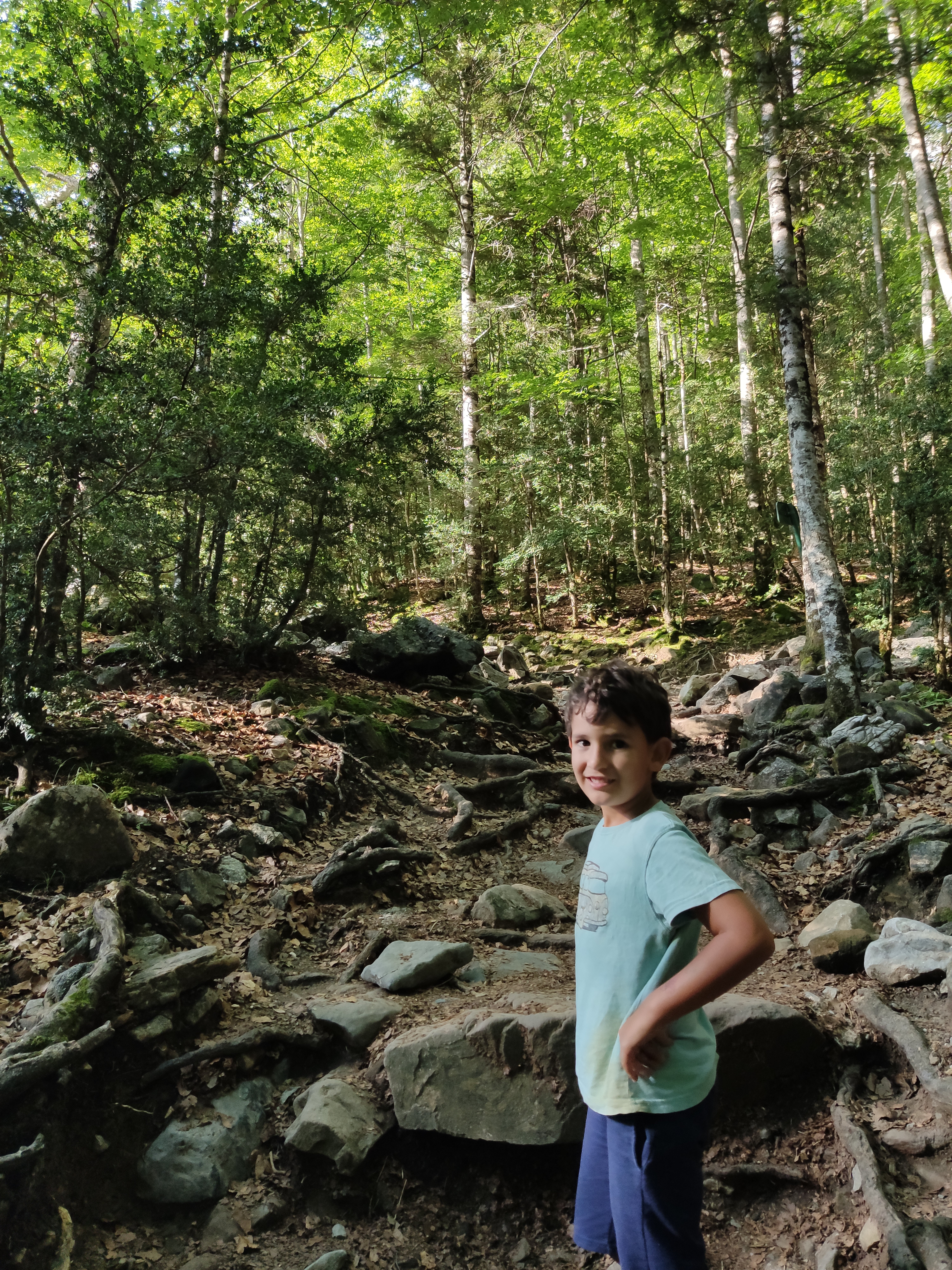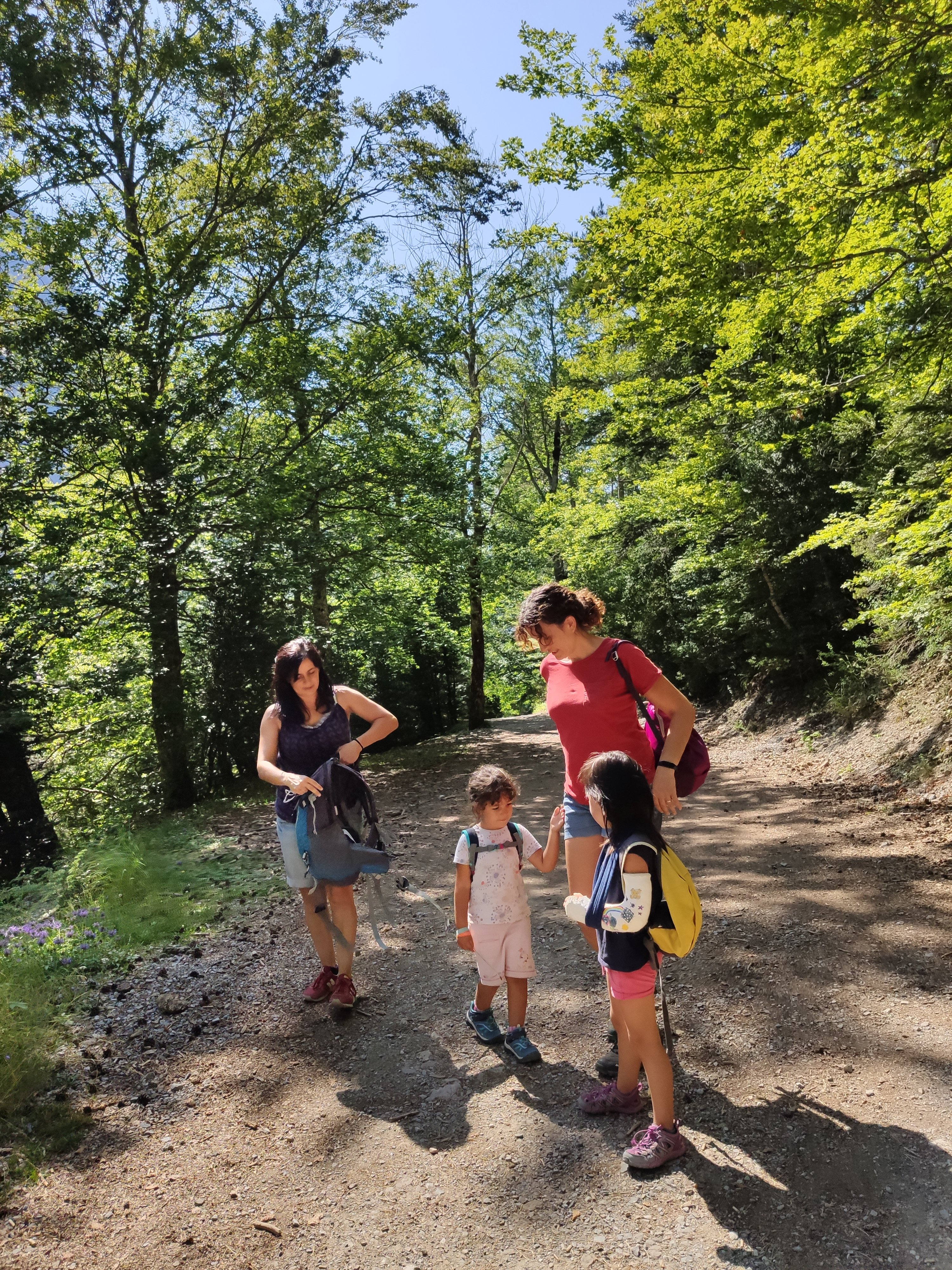 Vam continuar fins a Torla, on vam arribar cap a les 14h. Allà vam agafar un autobus, la qual cosa per als nens ja és gairebé una aventura en sí mateixa (a l’estiu la pujada fins a Ordesa en vehicle privat està prohibida). El parking és gratuït i el bus costa només 4.50€ els adults, i n’hi ha cada 15 minuts des de les 6h fins les 22h, així que està molt bé. I regulen l’entrada: si hi ha 1800 persones al Parc Nacional ja no deixen pujar ningú més, per conservació.