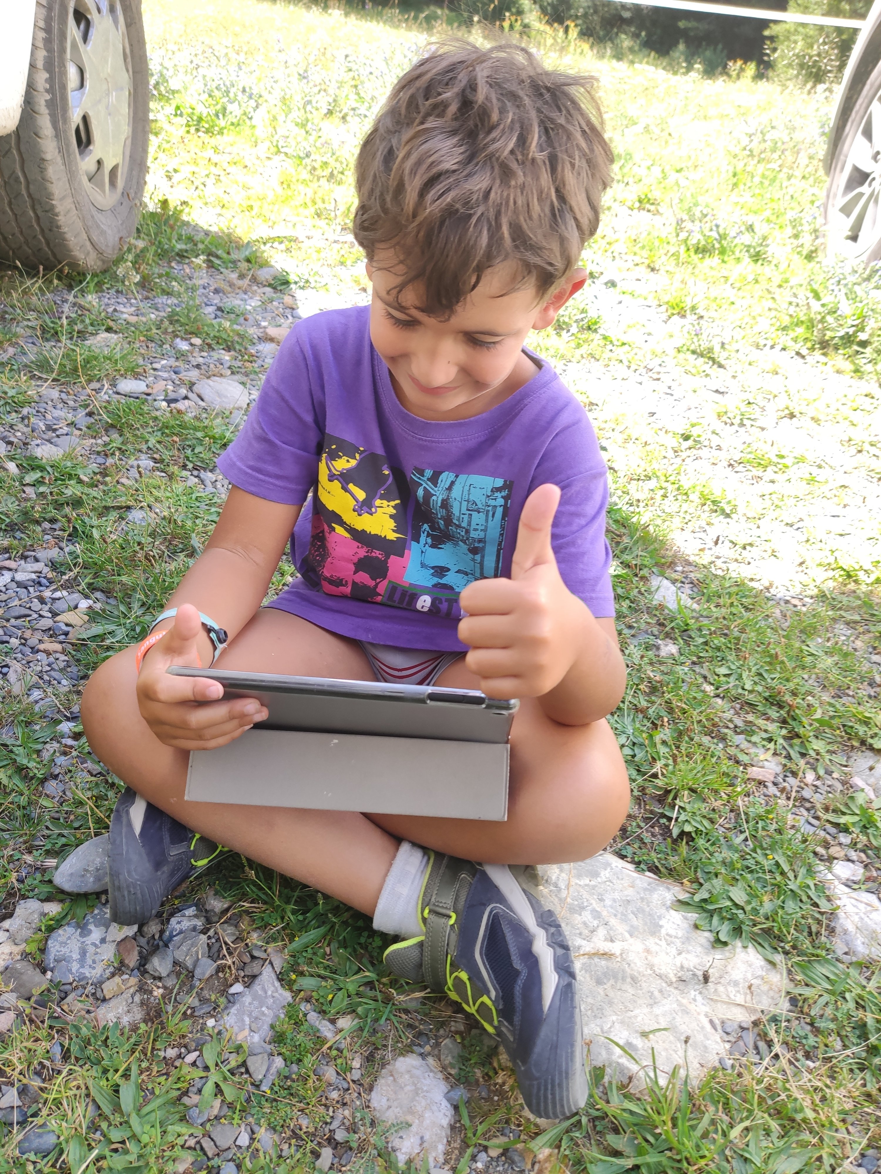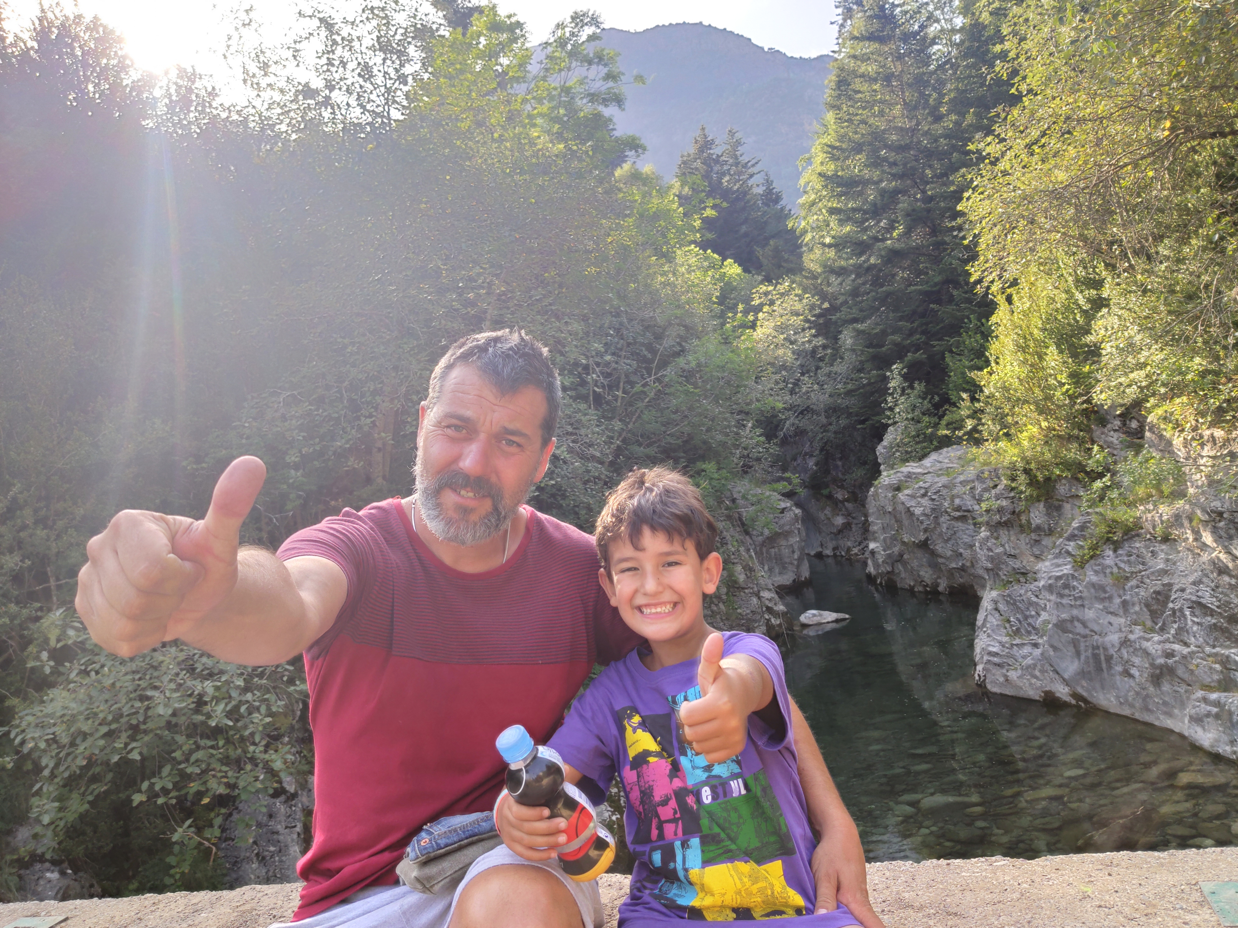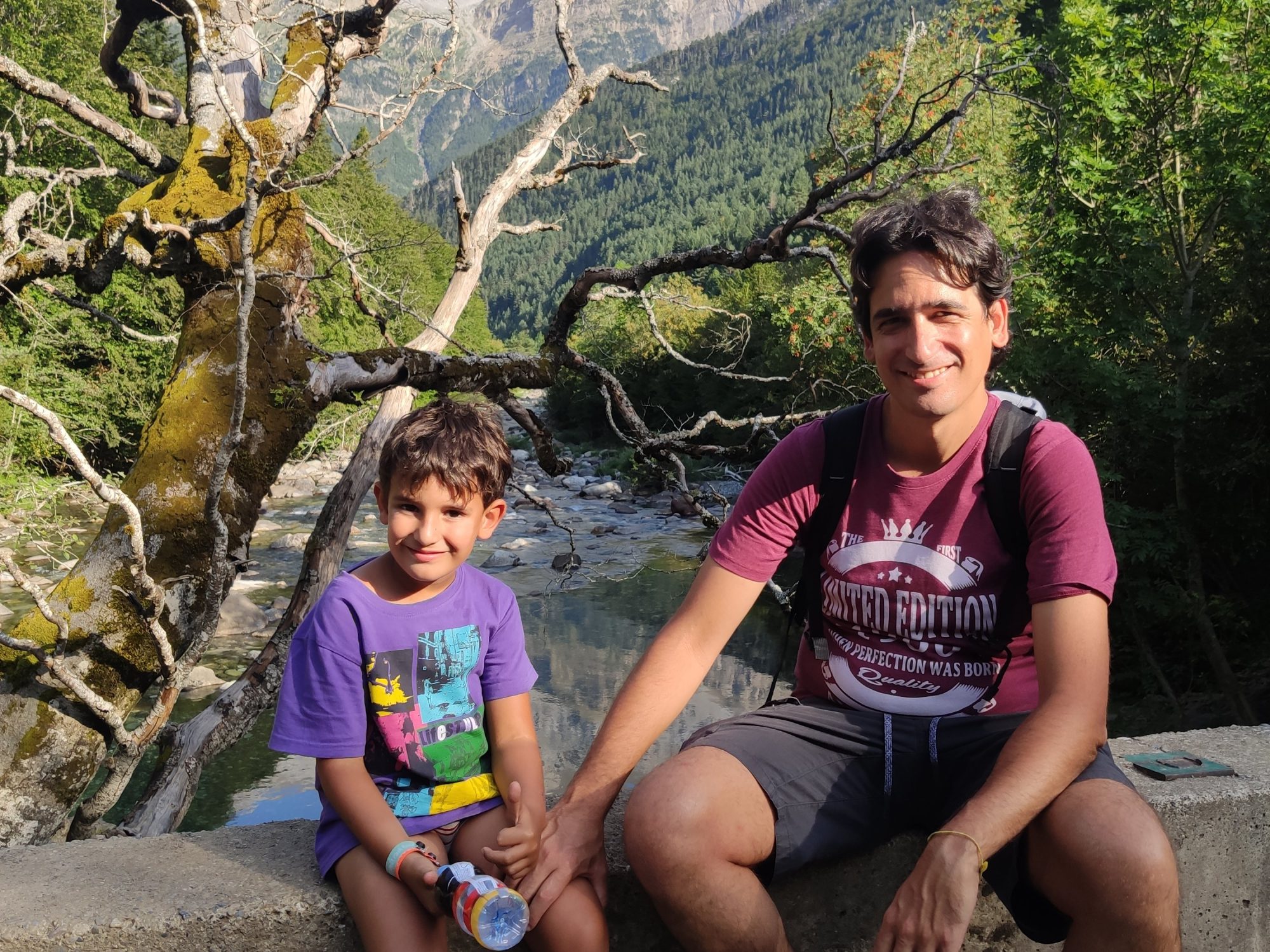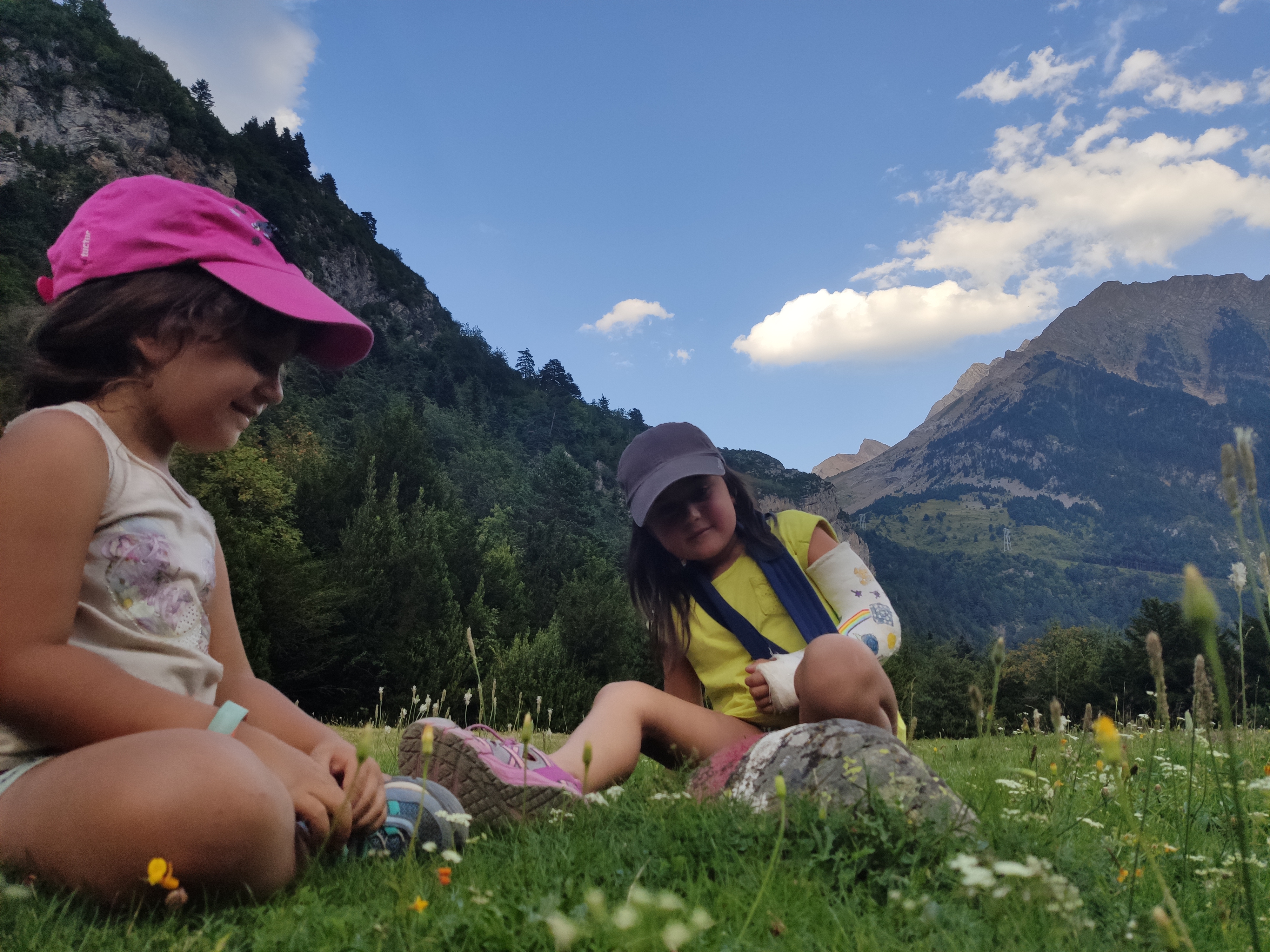 Ens vam llevar tard (com de costum, però tenint en compte que el dia abans havíem estat jugant -els adults- al Carcassonne fins les 2 de la matinada, no va ser cap sorpresa) i vam enfilar cap a la vall de Bujaruelo. A 1km del lloc on havíem passat la nit comença una pista mig asfaltada que corre al costat del riu. A uns 2km ens vam aturar al marge i vam parar taula per esmorzar (els nens van alleugerir per poder remullar els peus al riu).