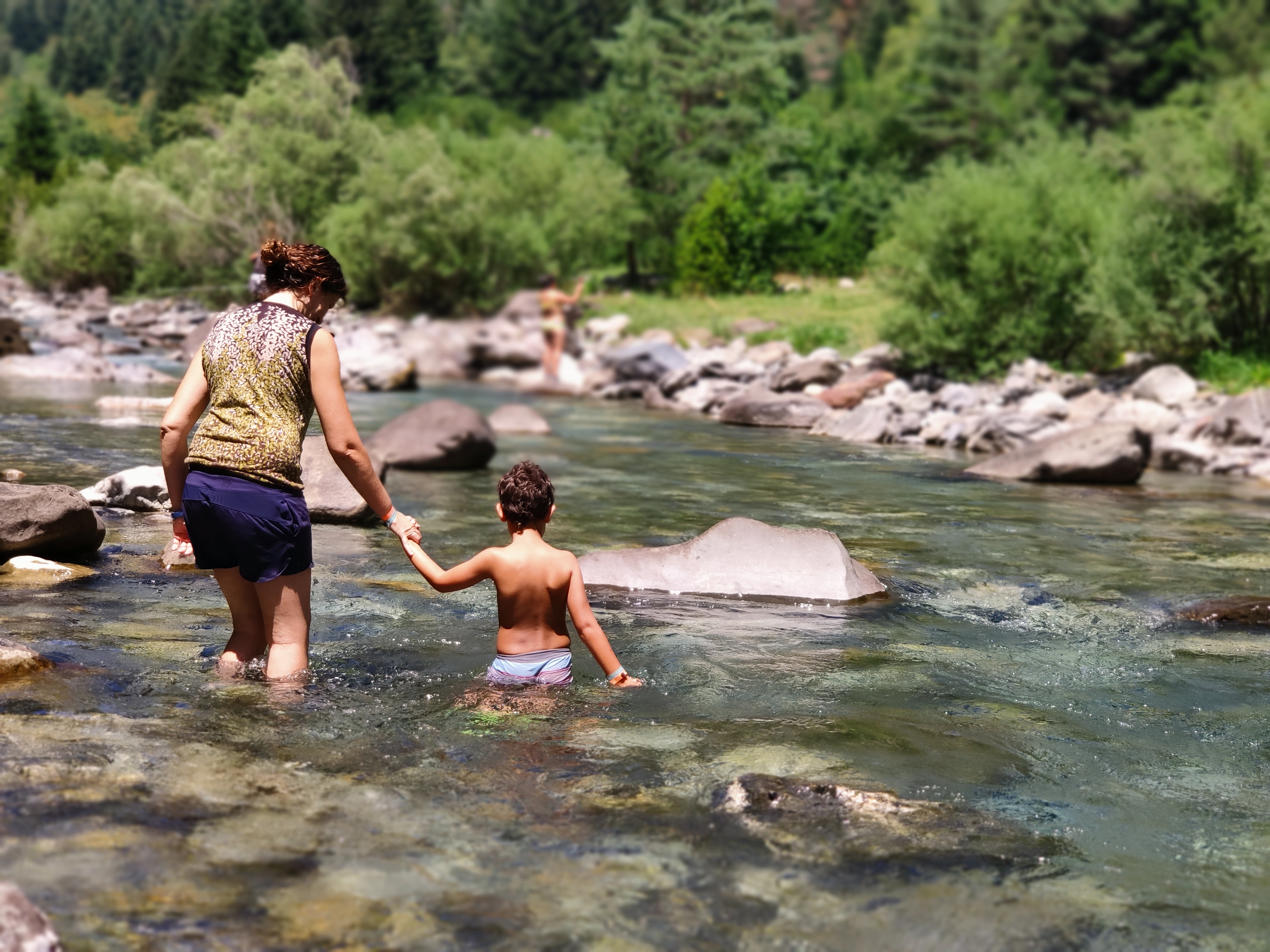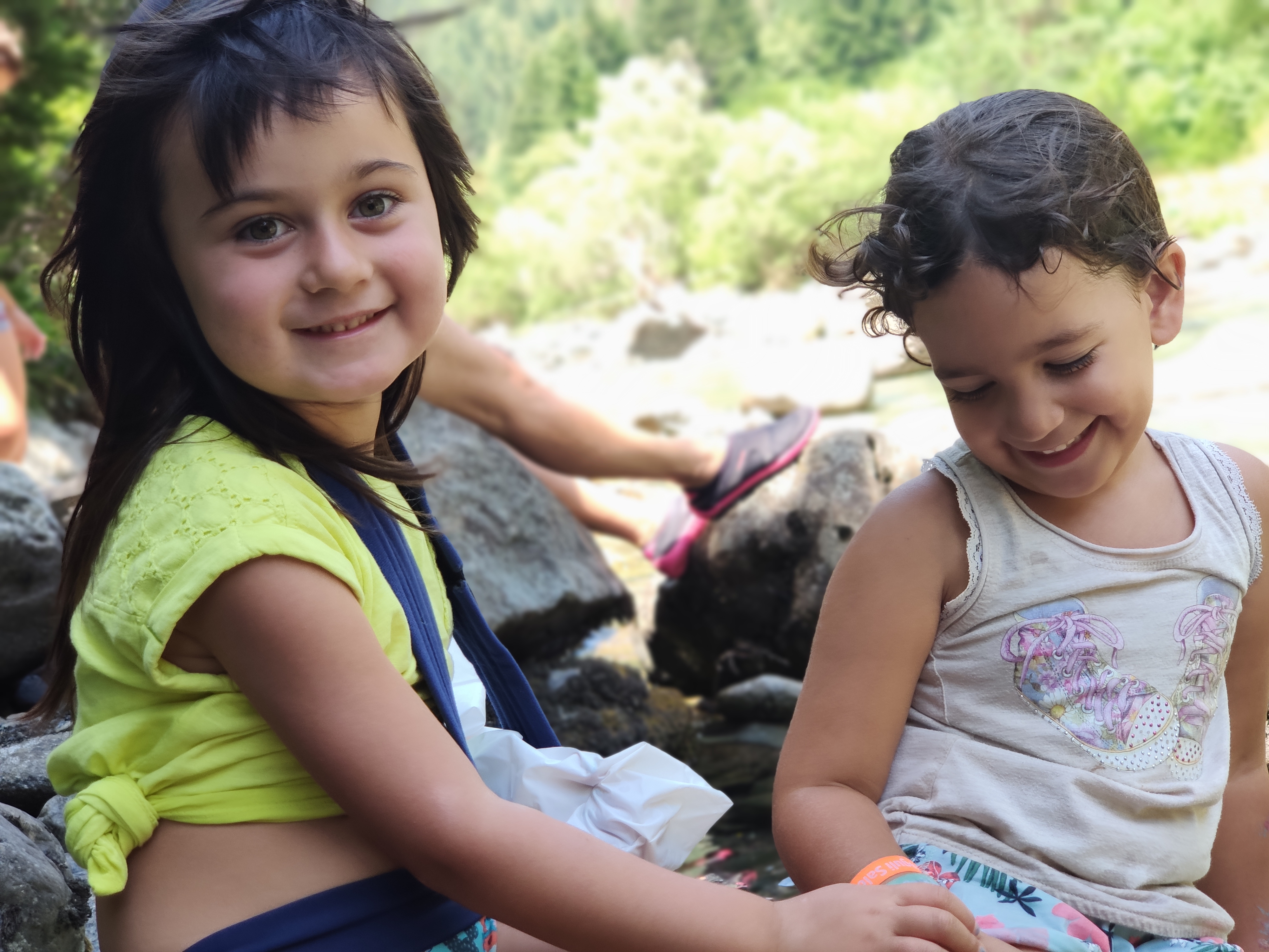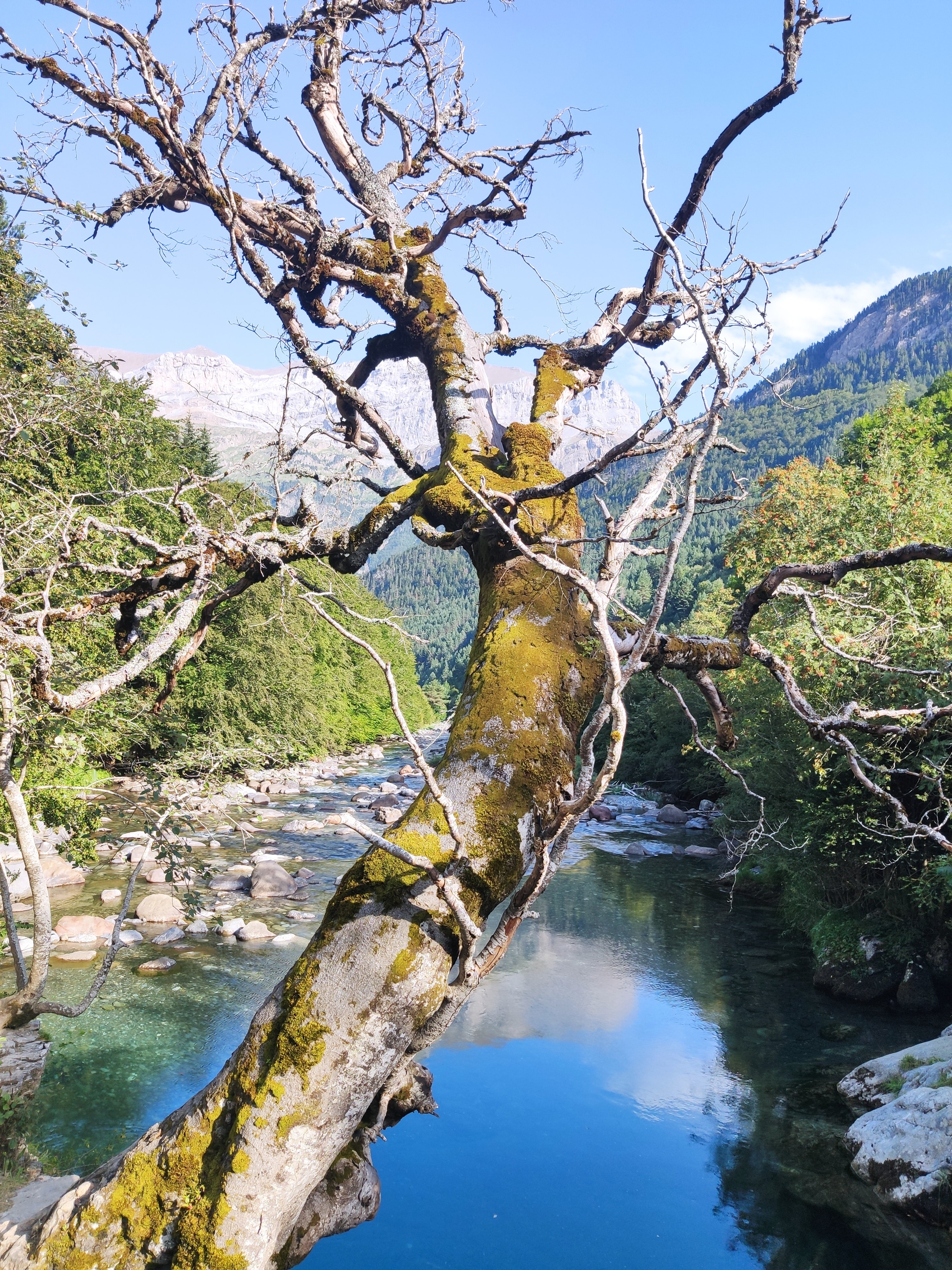 El paissatge és espectacular, amb prats d’un verd llampant envoltats de muntanyes majestuoses i el riu corrent pel mig de la vall. Abans de dinar ens vam ficar les sabates de riu per remuntar-lo (més per la gràcia de fer-ho que no pas per necessitat, ja que el camí va ben bé pel costat).