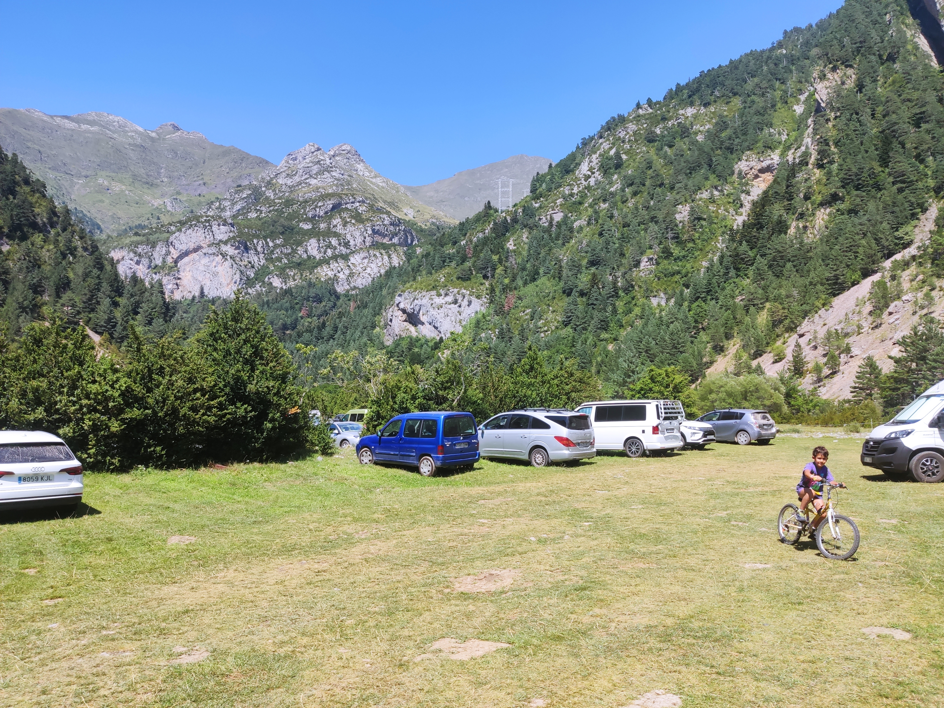 La pista continua uns 5km més fins al refugi de San Nicolás de Bujaruelo, on hi ha un gran parking i un càmping que és més aviat un tros de parking vallat.