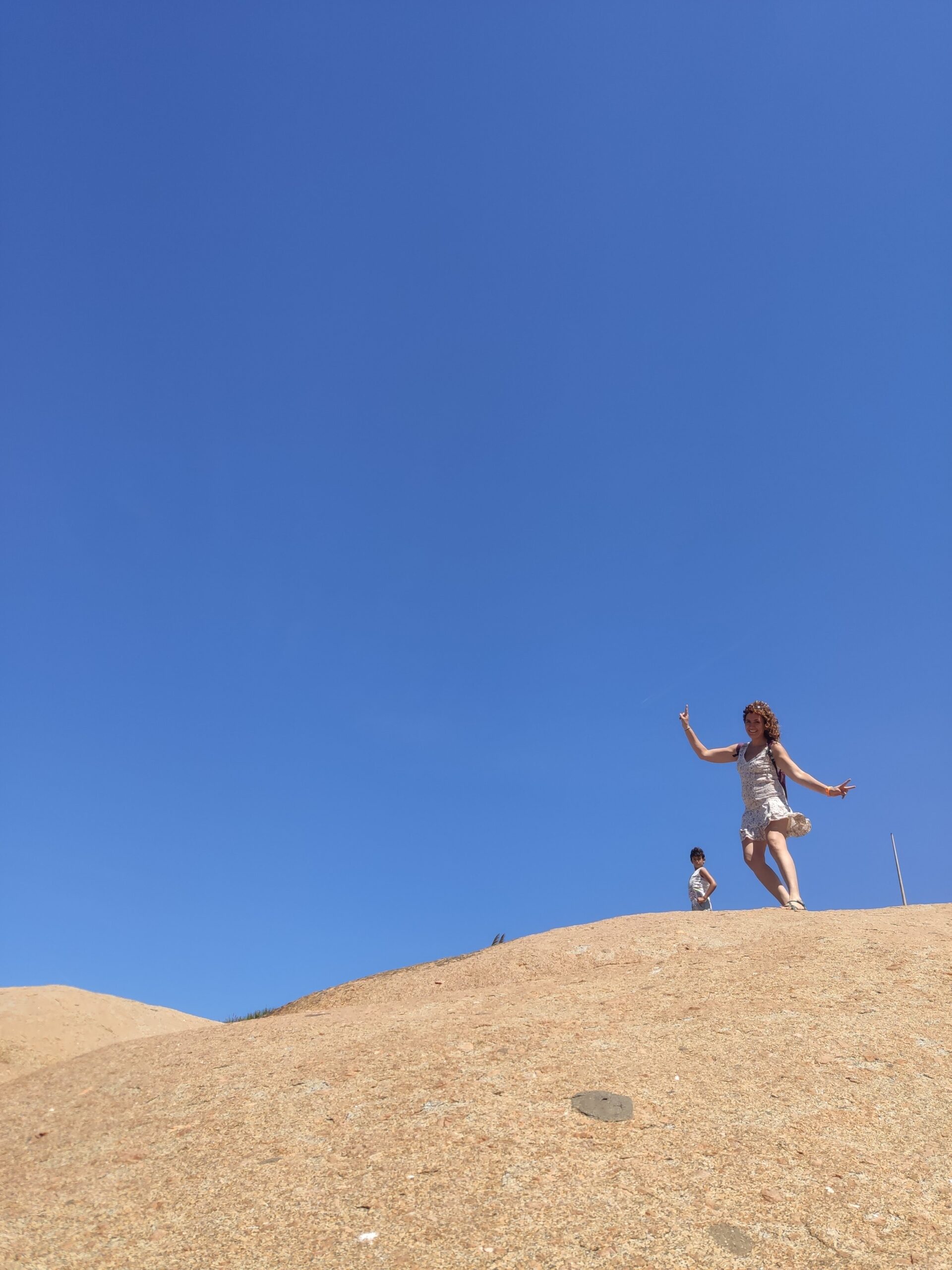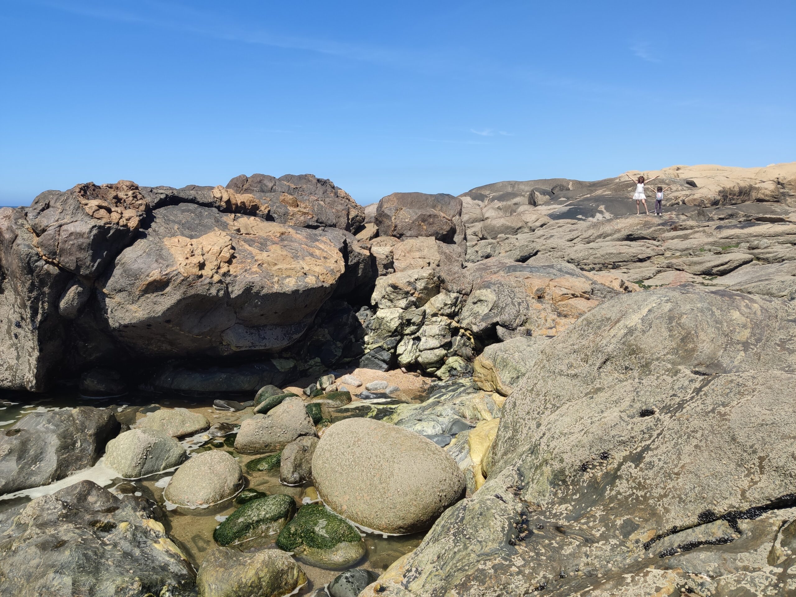 La zona de platja no convida gaire al bany (per la fresca i, sobretot, per les onades) però la costa és majoritàriament rocallosa, i ens ho hem passat molt bé caminant per les roques.