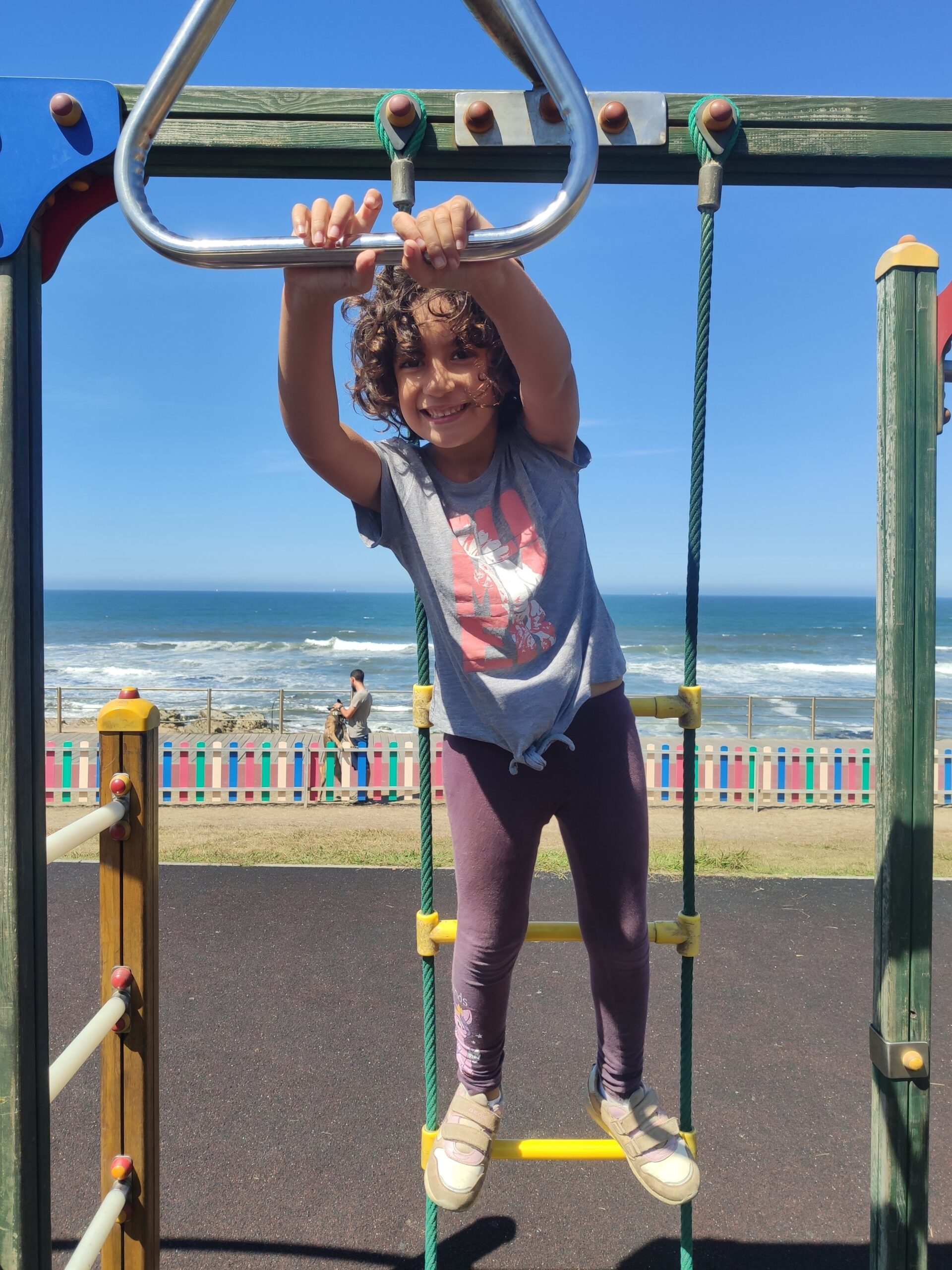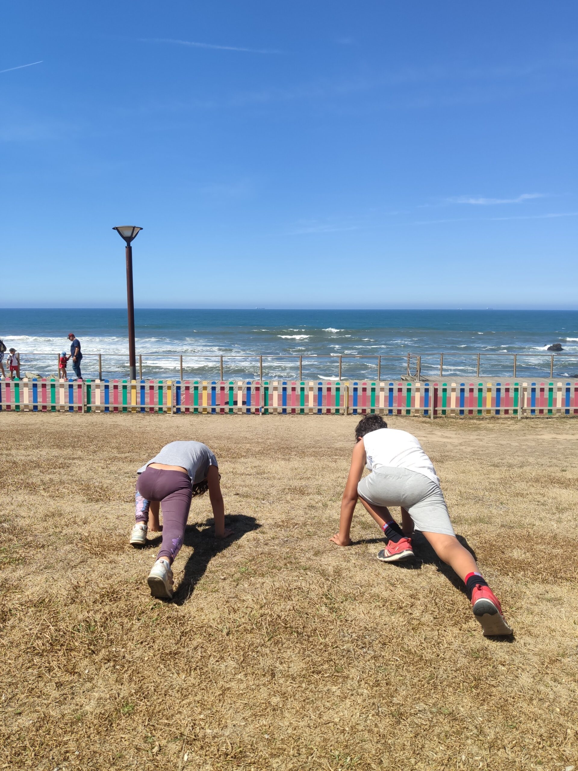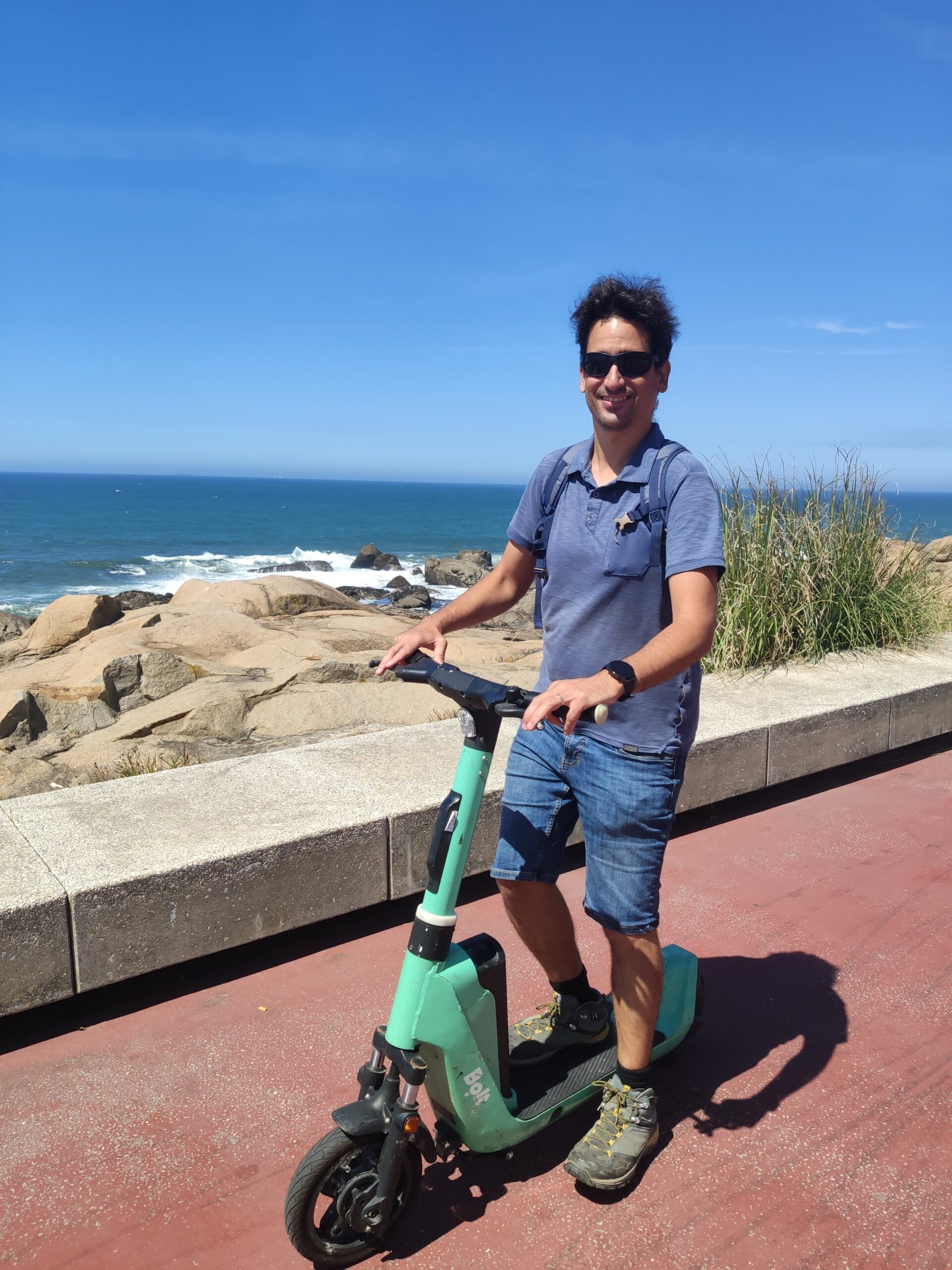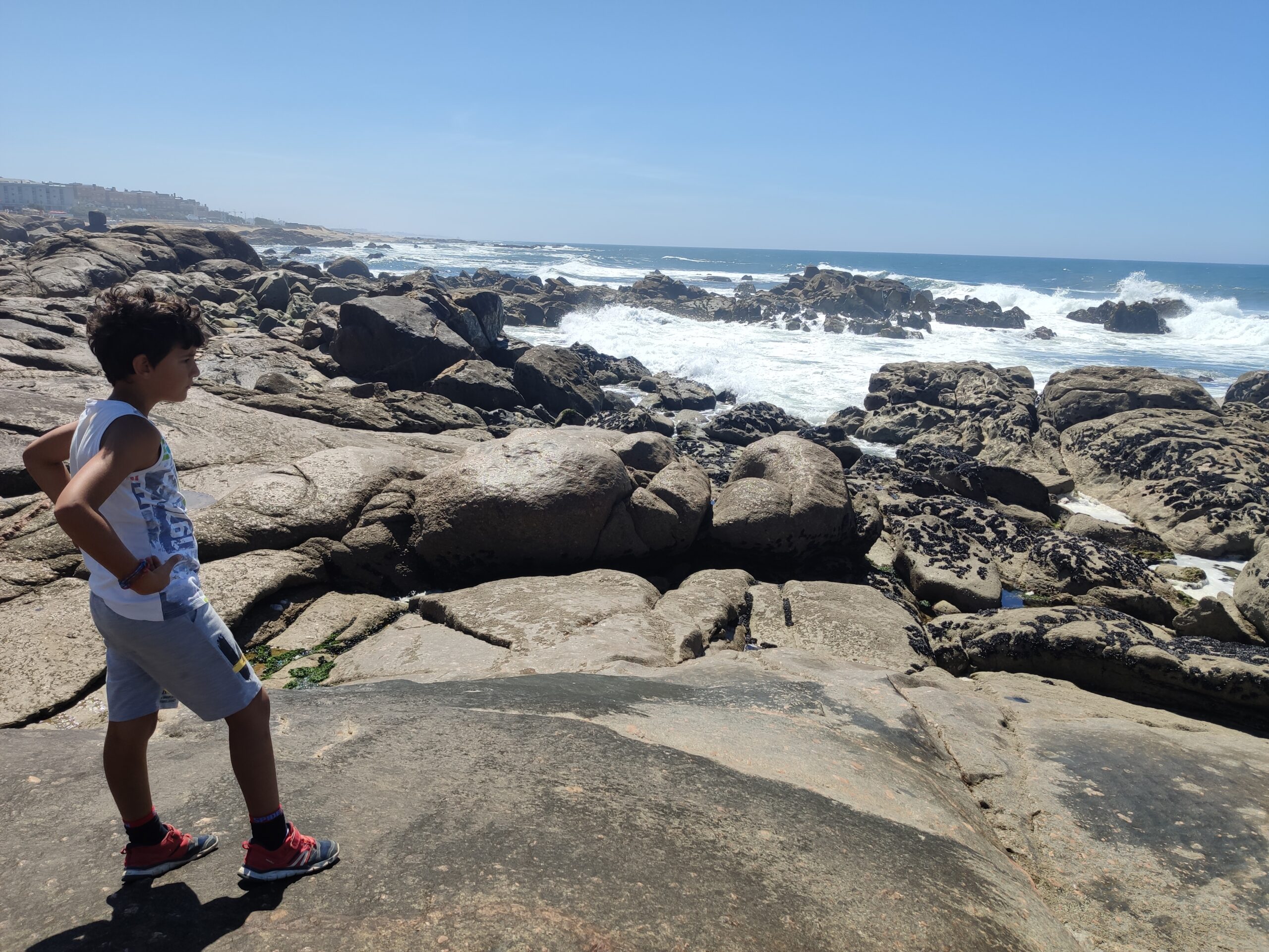 El dia era fresc però assoleiat. Hem agafat els patinets (3, perquè la Beth no en té) i hem anat a passejar pel passeig marítim. Allà he descobert que Bolt (l’APP tipus Uber que estem utilitzant per moure’ns per Porto i que és súper barata i pràctica) té una funcionalitat bomba: lloguer de patinets elèctrics per minuts. Hi ha un parking cada 300 metres (literalment) i és súper fàcil i còmode afafar-ne un. Total, que la Beth i els nens han anat amb patinet en mode pobre, i jo com un rei sense cansar-me!