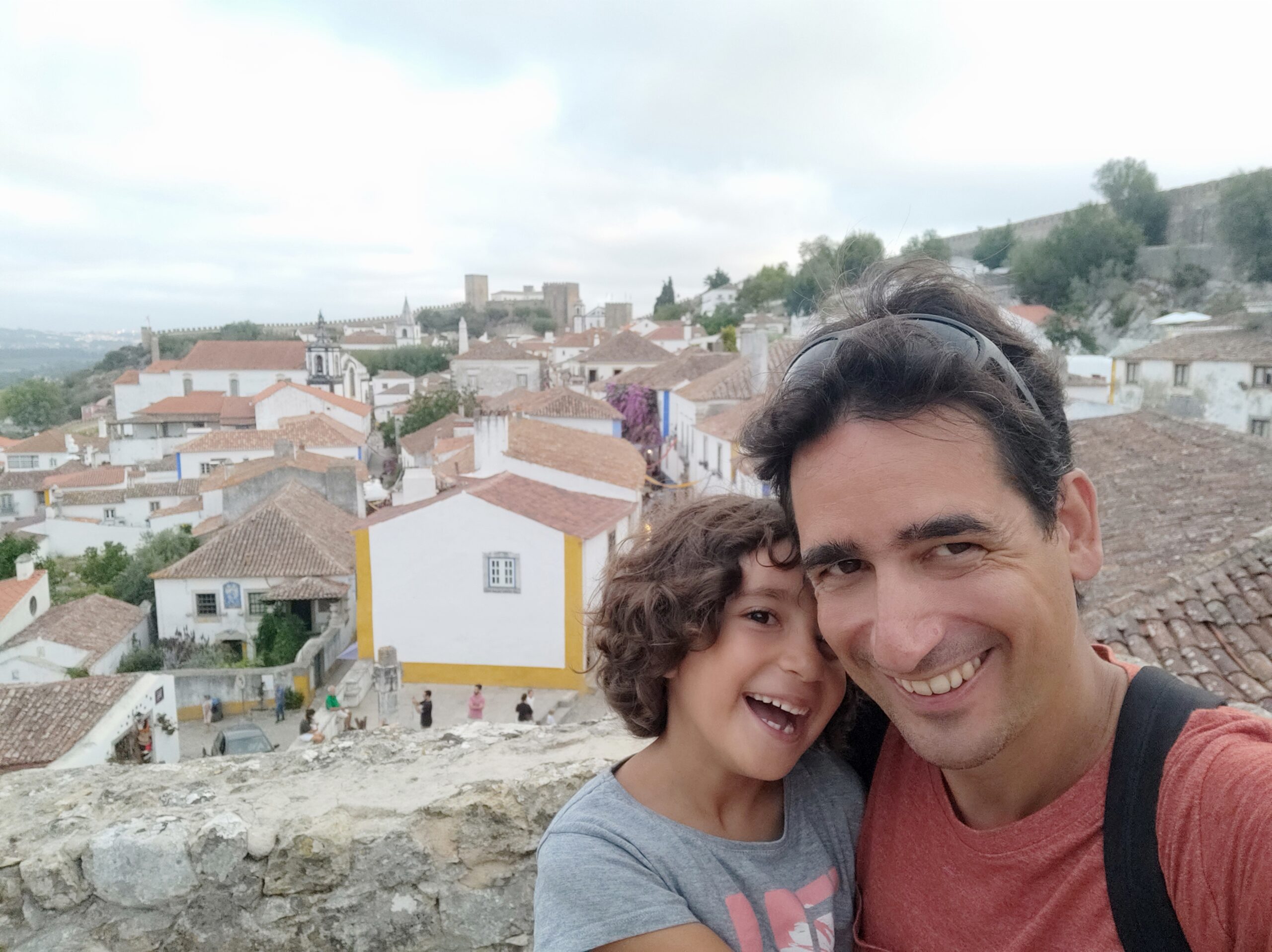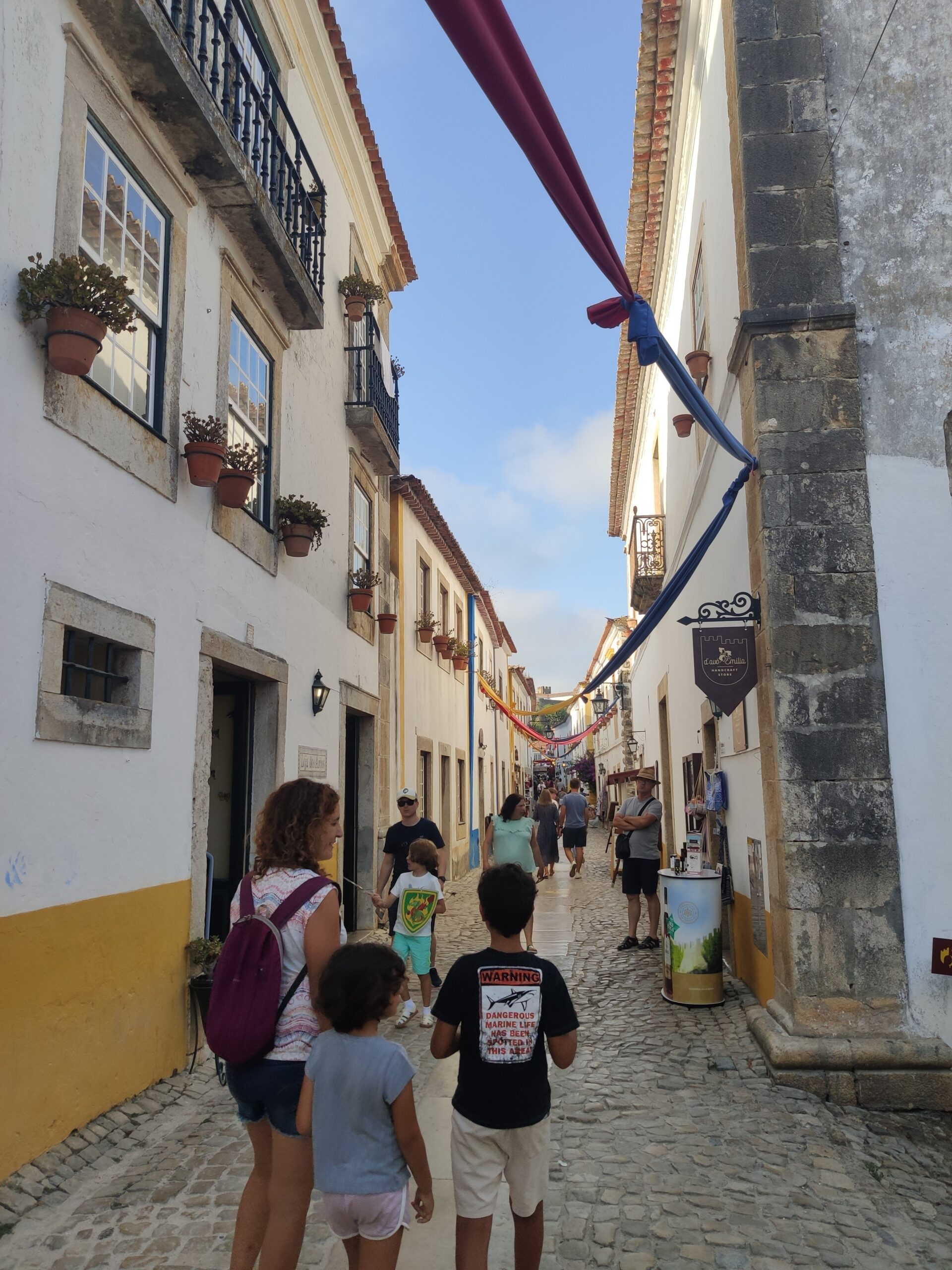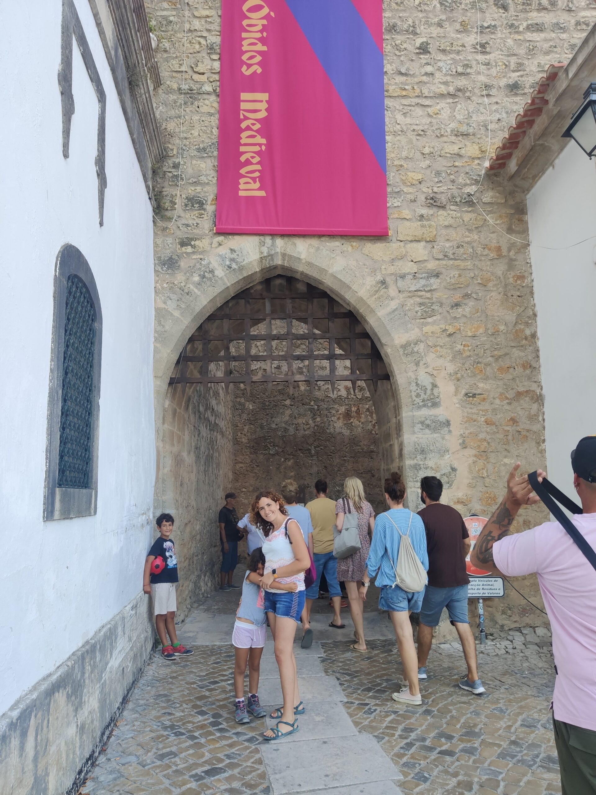 Després de dinar hem agafat la furgo per fer 15 minutets fins al poble d’Obidos. Es tracta d’un preciós poble medieval amb una gran muralla, que es pot recórrer sempre i quan no tinguis por a les alçades, ja que no té barana i el cert és que feia bastant de iuiu en alguns trams. De fet, la Beth i el Gerard han patit bastant, la Jana en canvi anava caminant per allà com si res, en això no és filla de sa mare!