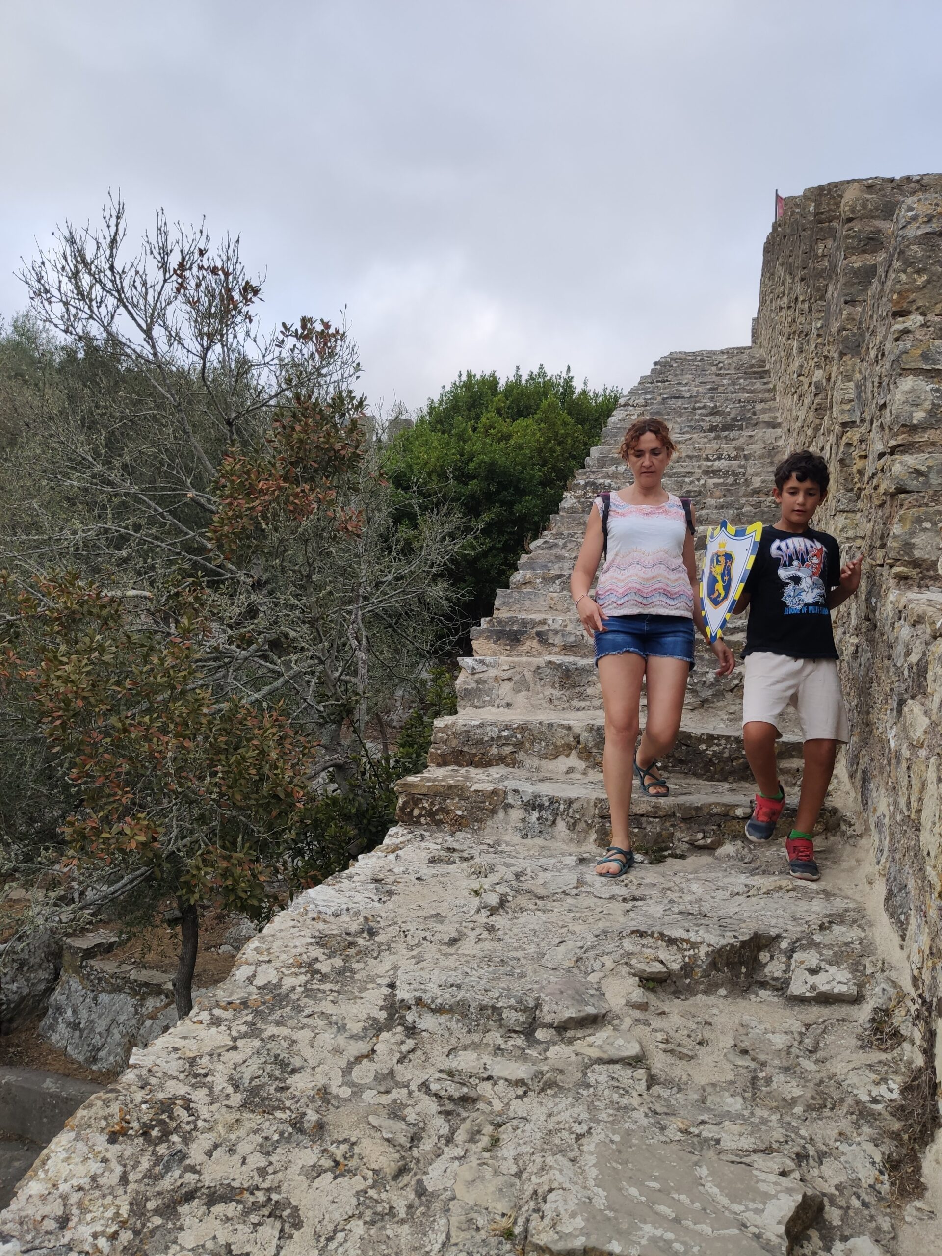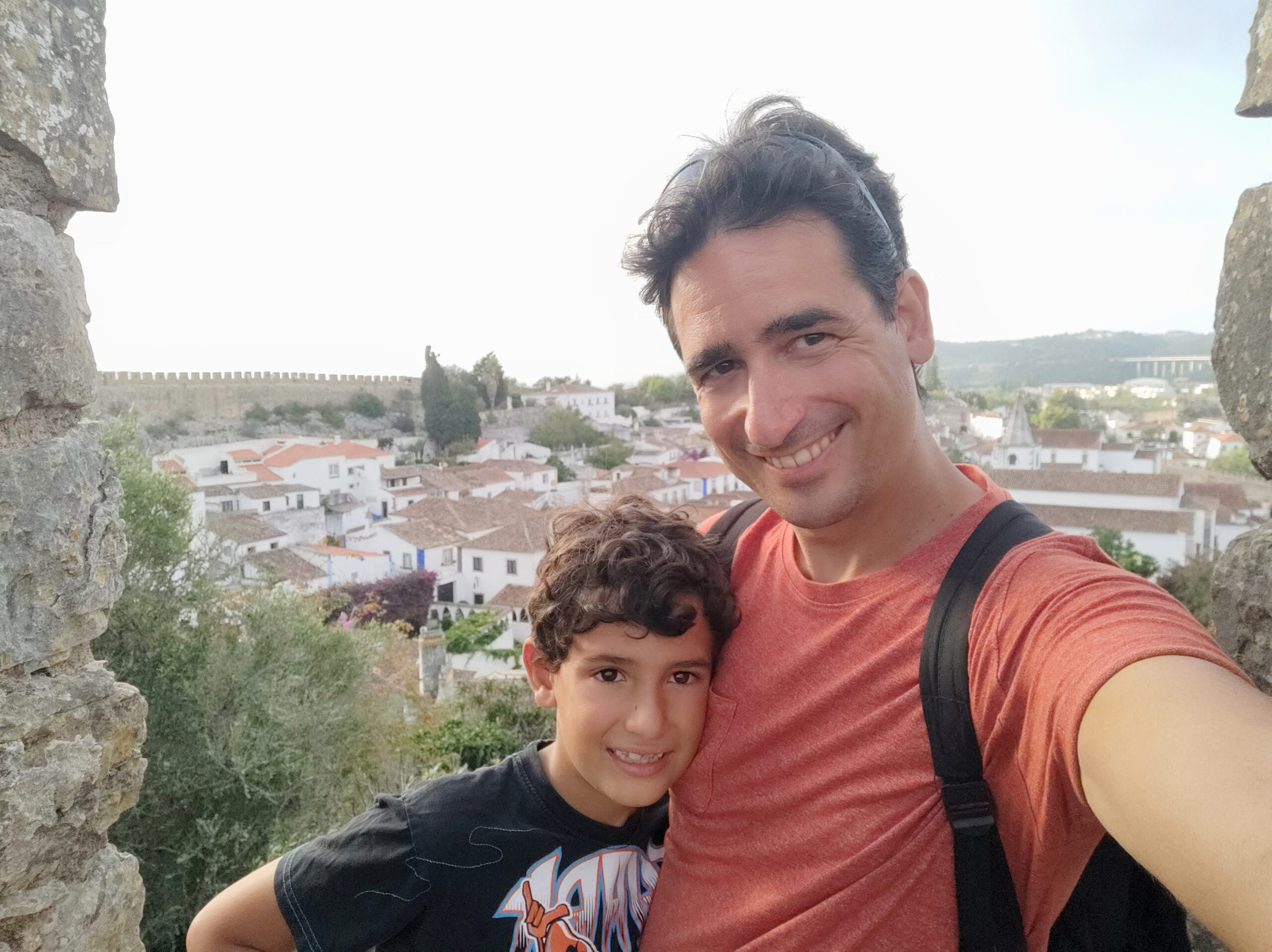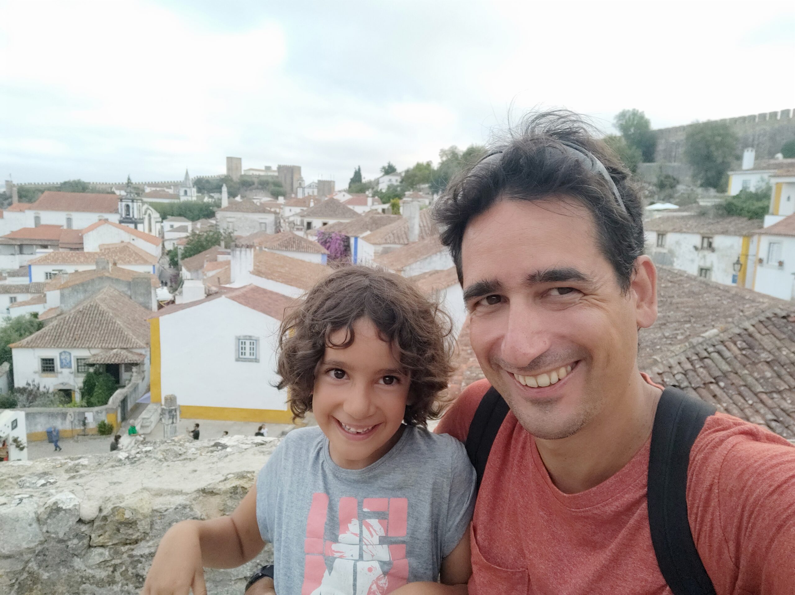 Després de dinar hem agafat la furgo per fer 15 minutets fins al poble d’Obidos. Es tracta d’un preciós poble medieval amb una gran muralla, que es pot recórrer sempre i quan no tinguis por a les alçades, ja que no té barana i el cert és que feia bastant de iuiu en alguns trams. De fet, la Beth i el Gerard han patit bastant, la Jana en canvi anava caminant per allà com si res, en això no és filla de sa mare!