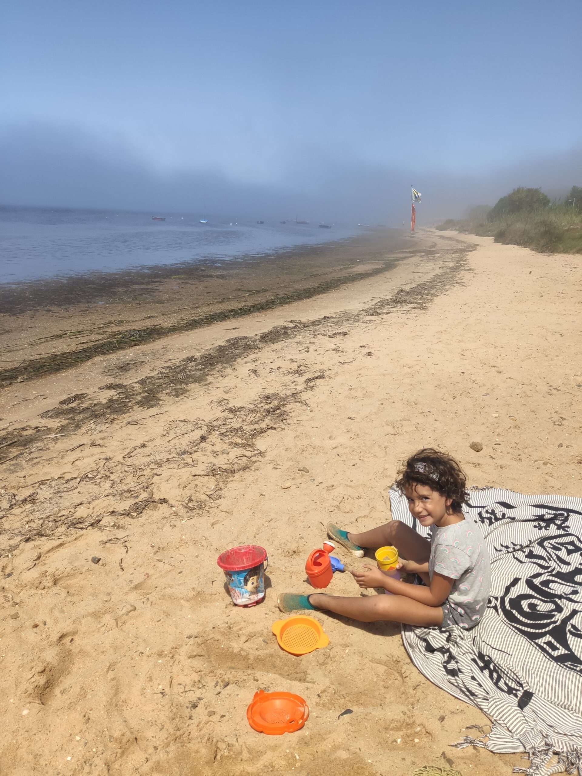 El Gerard ha fet tot el possible per subornar-la (fins i tot li ha promès fer-li deu petons i deu abraçades!), però no hi havia manera. Al final hem agafat 3 taules (una l’he compartit jo amb la Jana), però ella ha durat 20 minuts i tota l’estona queixant-se que volia tornar. La llacuna és molt poc profunda, i no hi havia onades, però el fons estava ple d’algues i la Jana encara té de tant en tant aquelles manies de quan era petita.