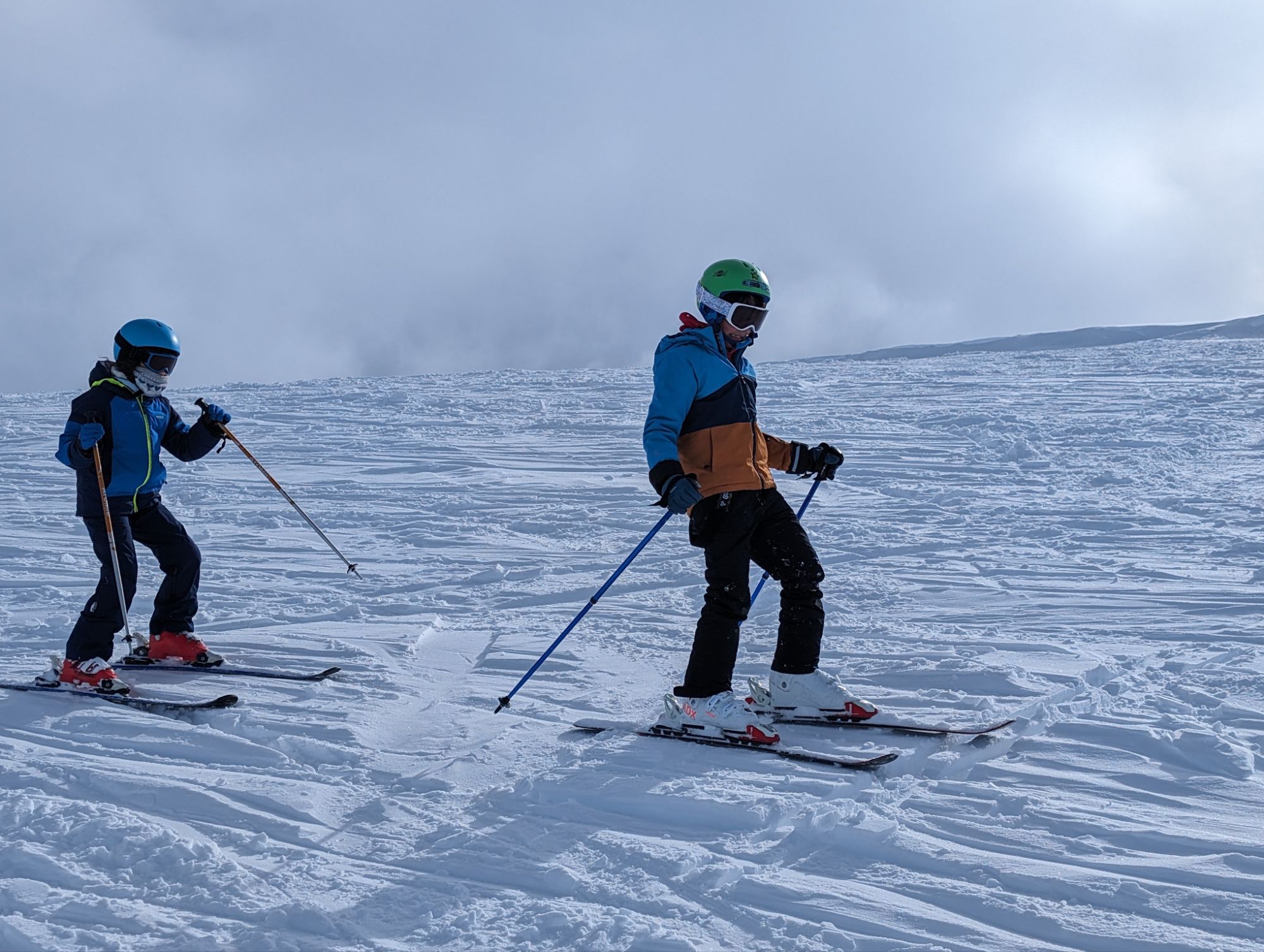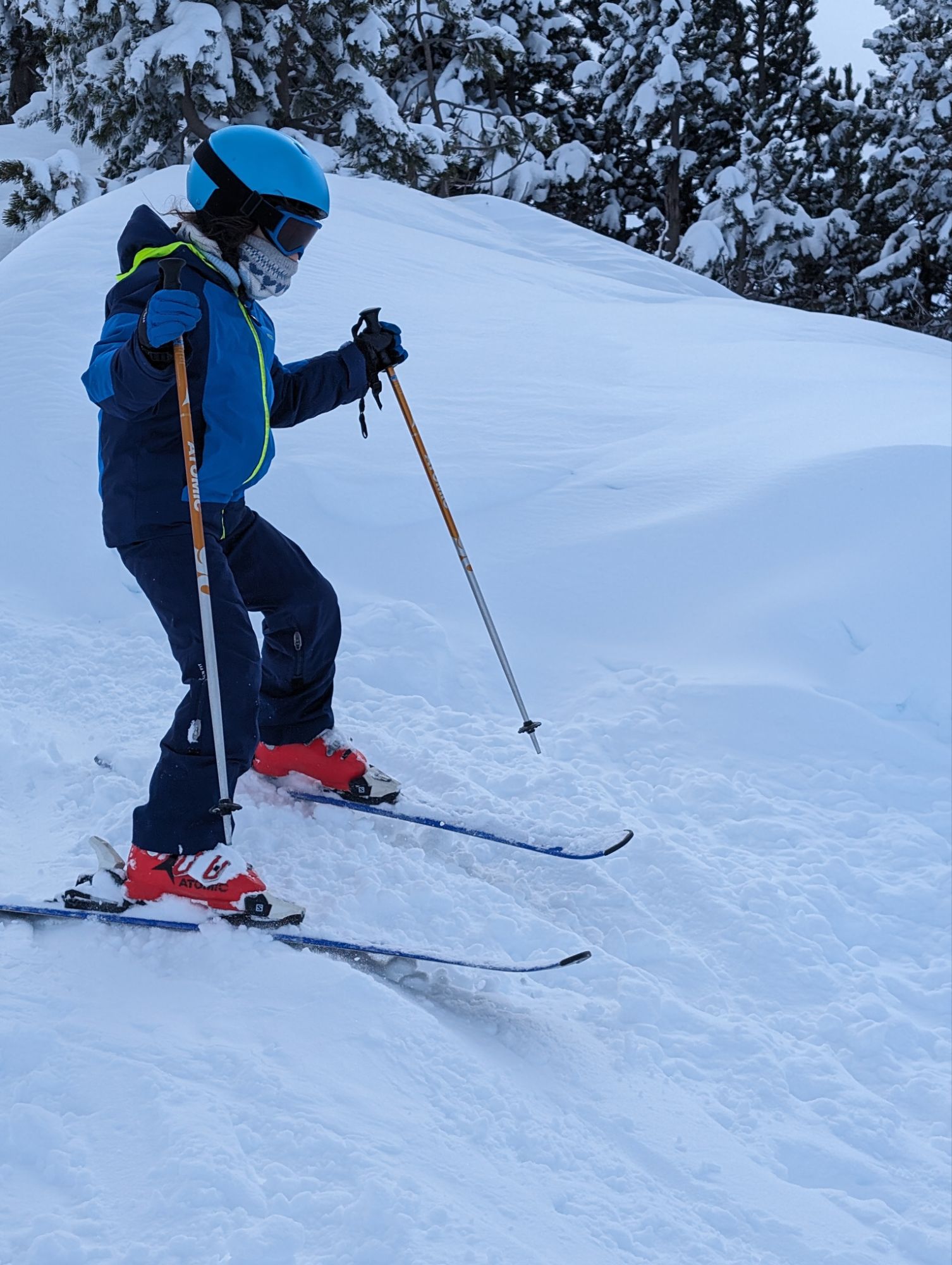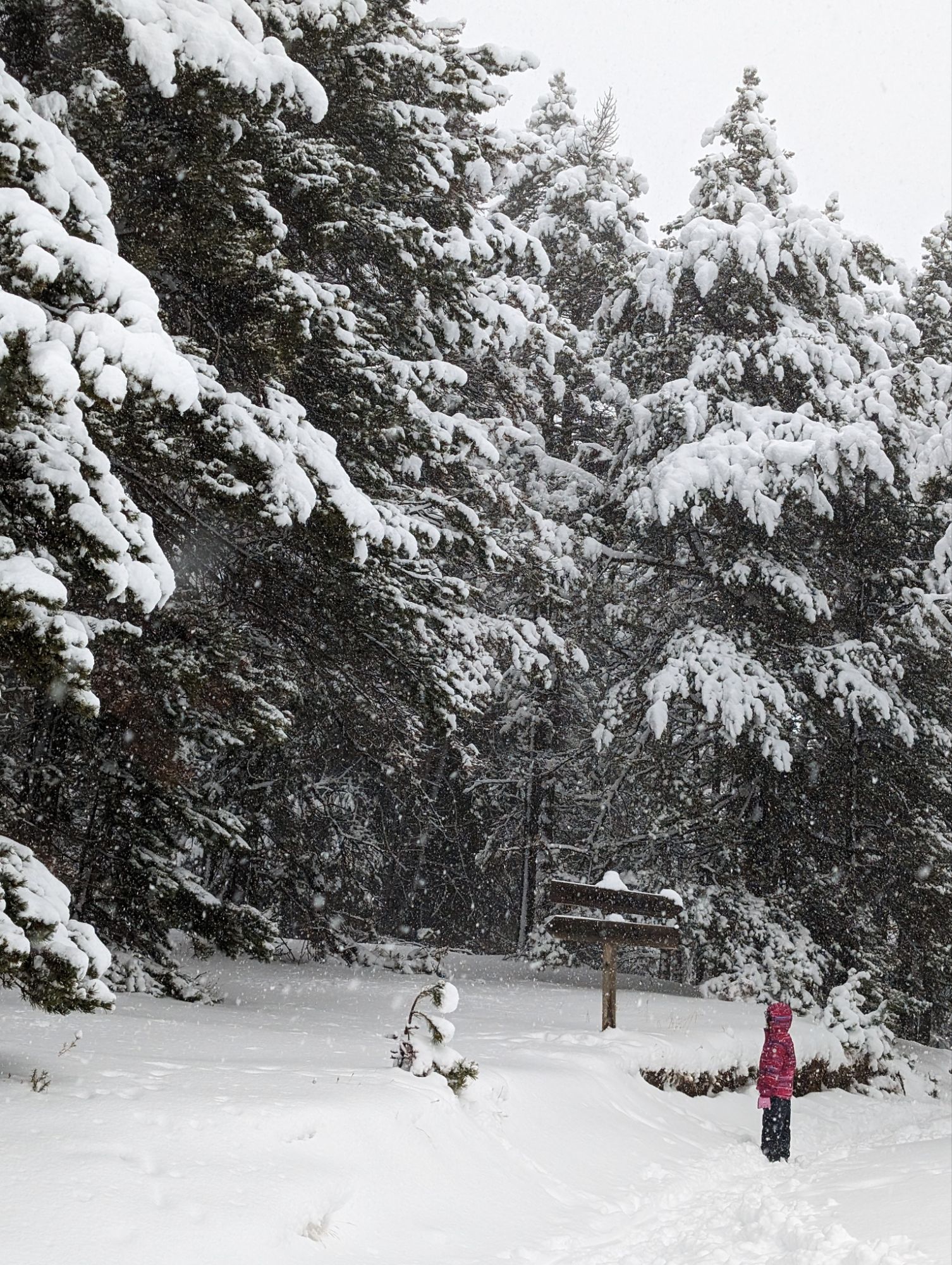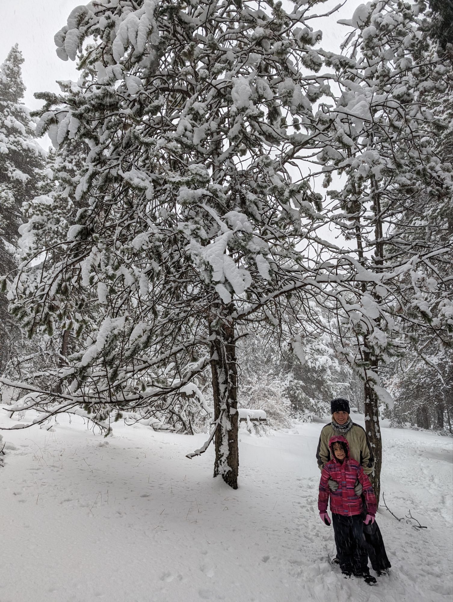 Doncs dissabte al matí, al llevar-nos, el parking era una pista d’esquí, amb 15cm de neu. No va parar de nevar fins al vespre, deixant un paisatge bucòlic de ple hivern (i nosaltres amb la calefacció a la furgo ben calentets!). Bé, el Gerard i jo sí que vam esquiar, una estona, i a la tarda tots 4 vam estar jugant amb el trineu i fent una excursió per la muntanya ben nevada.