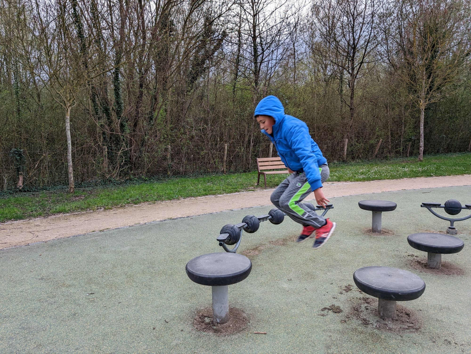El càmping està situat a una illa del riu Marne, a pocs quilòmetres de París. Després de fer el check-in, dinar i, sobretot, dutxar-nos, el Gerard i jo hem decidit d’anar a descobrir un parc que està a un parell de quilòmetres. Xulíssim! Allà el Gerard s’ha passat més d’una hora saltant i fent parkour, “descansant” a tope, vaja!