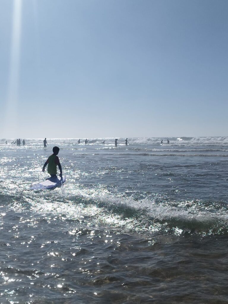Hem dinat en un restaurant (baratet com a mi m’agrada) i després hem anat el Gerard i jo a fer una classe de surf. Això també ha estat una mica decepcionant, ja que hi havia molta corrent (i fortes onades) i ens ha costat molt més que l’any passat a Costa de Caparica (després hem descobert que precisament on vam estar l’any passat és un dels millors llocs per aprendre a surfejar). El Gerard ha acabat una mica frustrat i jo… una mica cansat.