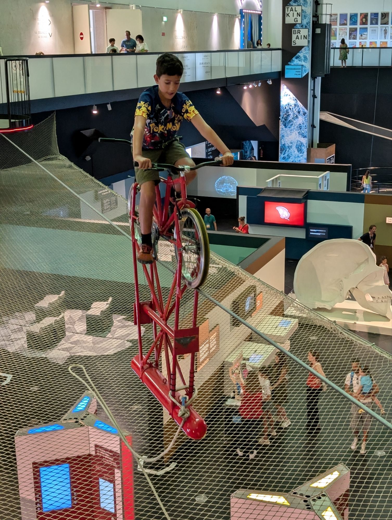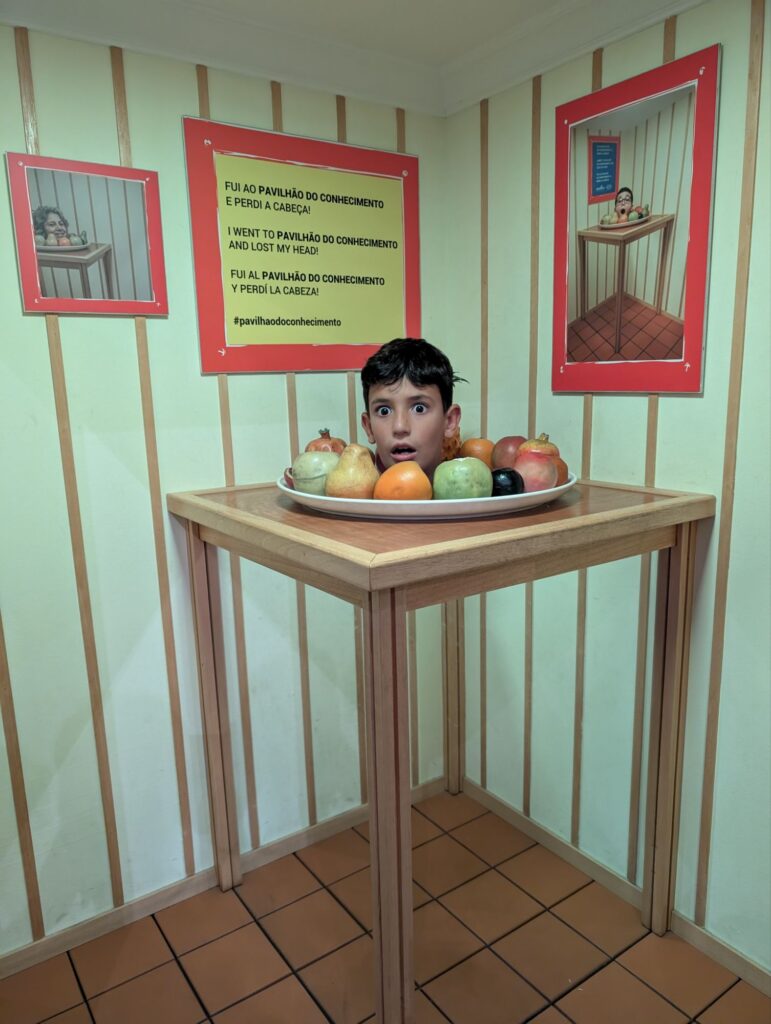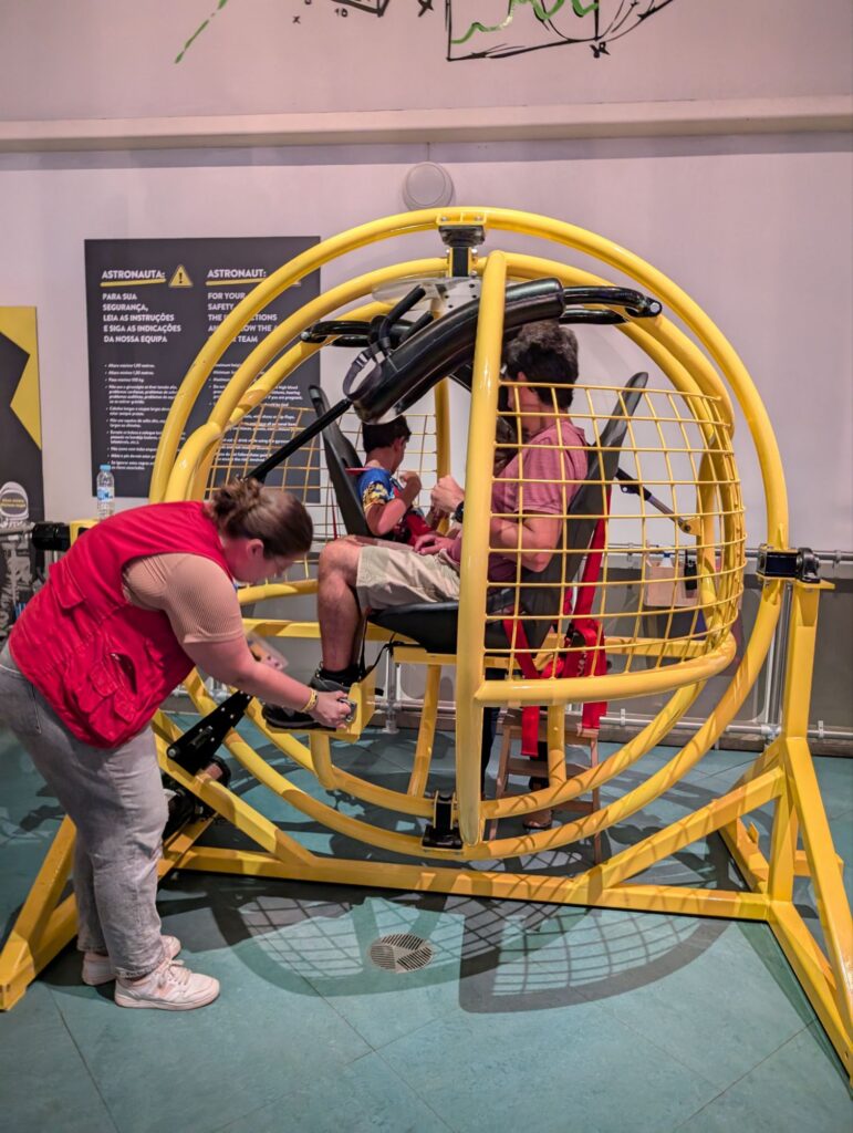 En fi, després d’això hem anat al Pavilhão do conocimiento, una espècie de museu de la ciència que està just al costat i que ens ha meravellat. És menys divulgatiu i molt més lúdic que el de Barcelona, tenia activitats absolutament fantàstiques i divertides (la bicicleta sobre la corda fluixa i el simulador d’astronautes són impressionants) i ens hi hem estat tota la tarda súper entretinguts (a més, el preu -30€ tots 4- ens ha semblat boníssim per tot el que ofereixen). En definitiva, hem estat tot el dia a Lisboa, però realment no ens hem mogut gaire. Un dia genial!