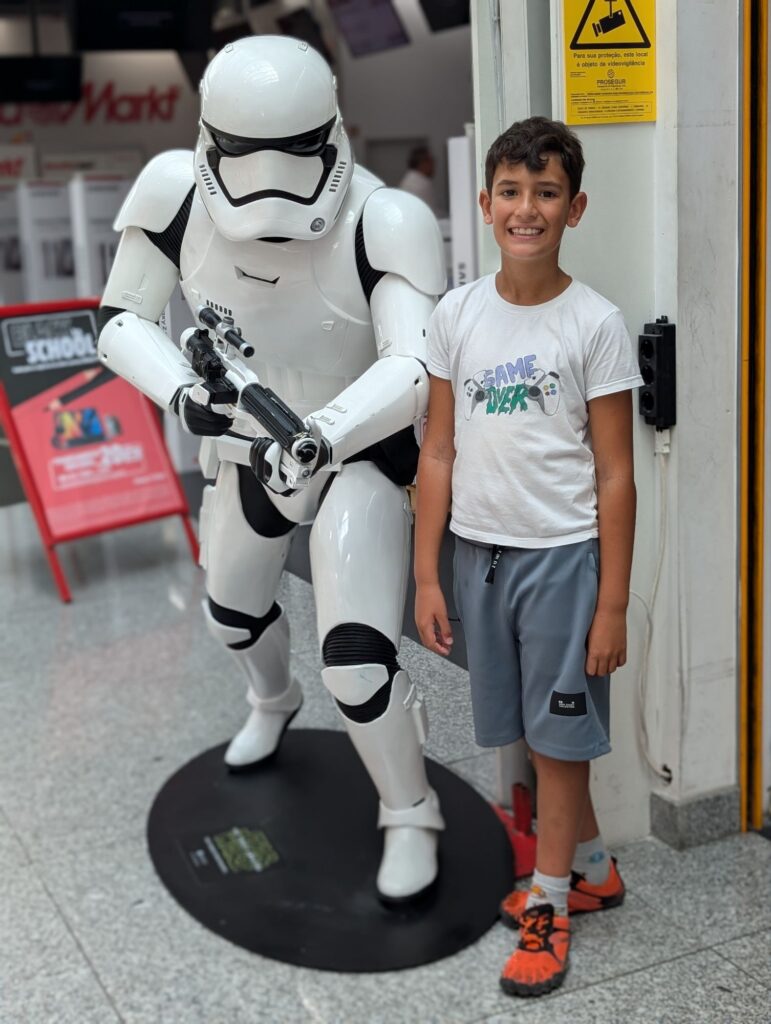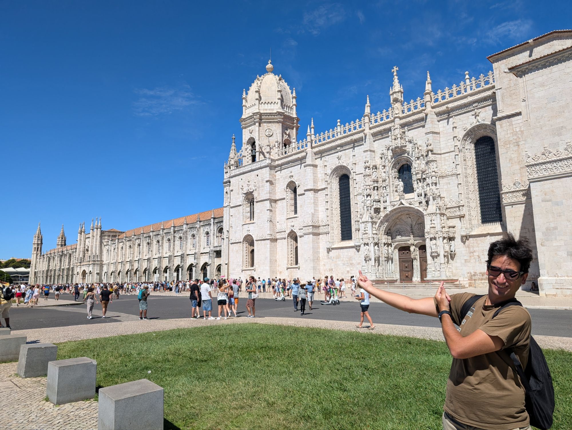 El cert és que feia molta calor, i els nens no estaven precisament entusiasmats amb la idea d’anar a passejar sense un rumb definit i on l’alicient era visitar el Moasterio dos Jerónimos i la Torre de Belem. Al final, hem vist els dos monuments des de fora, perquè la cua per entrar era inhumana (dues hores!). En qualsevol cas, tant l’un com l’altre són força impressionants, i el passeig també és bonic, amb uns parcs molt xulos. També hem passat pel davant del museu militar (des de fora s’entreveien un helicòpter i una avioneta), i hem coincidit amb el canvi de guàrdia dels dos soldats que custodien l’entrada. El Gerard hi volia entrar, però a la resta no ens cridava gaire l’atenció així que hem passat.